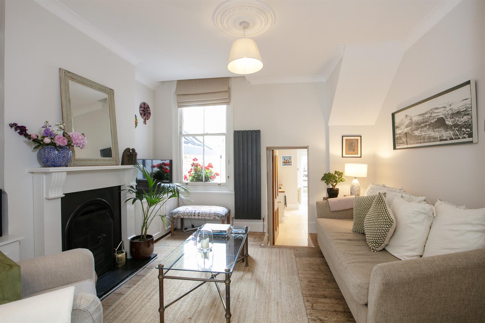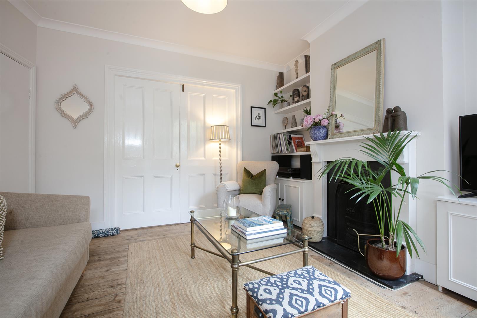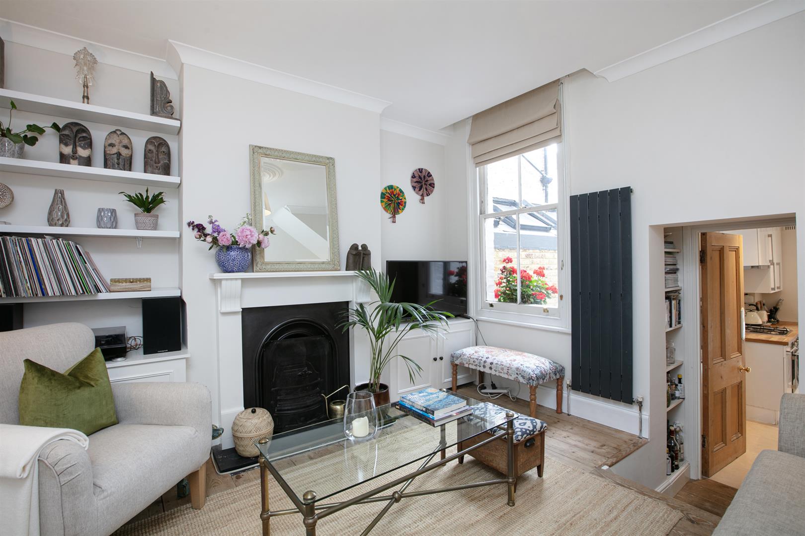 A shared front garden and communal hallway offers access inward where you enter directly into your bright and pleasant living space. It faces rear through a large original sash window. The period feature fireplace is flanked on either side by low level storage units. There's original stripped timbers underfoot and simple cornicing overhead. The double bedroom is accessed through original double doors and supplies a neat front bay window with plantation shutters. There's another period feature fireplace and more tasteful timbers. The decor throughout is freshly presented and tastefully neutral.