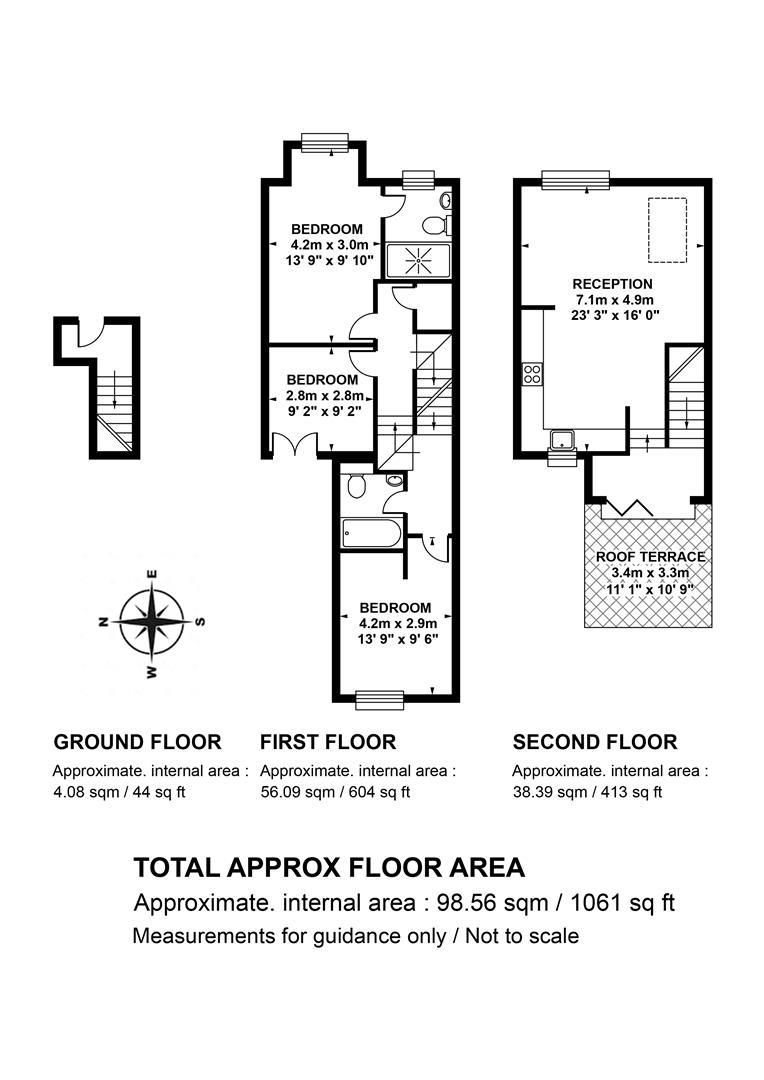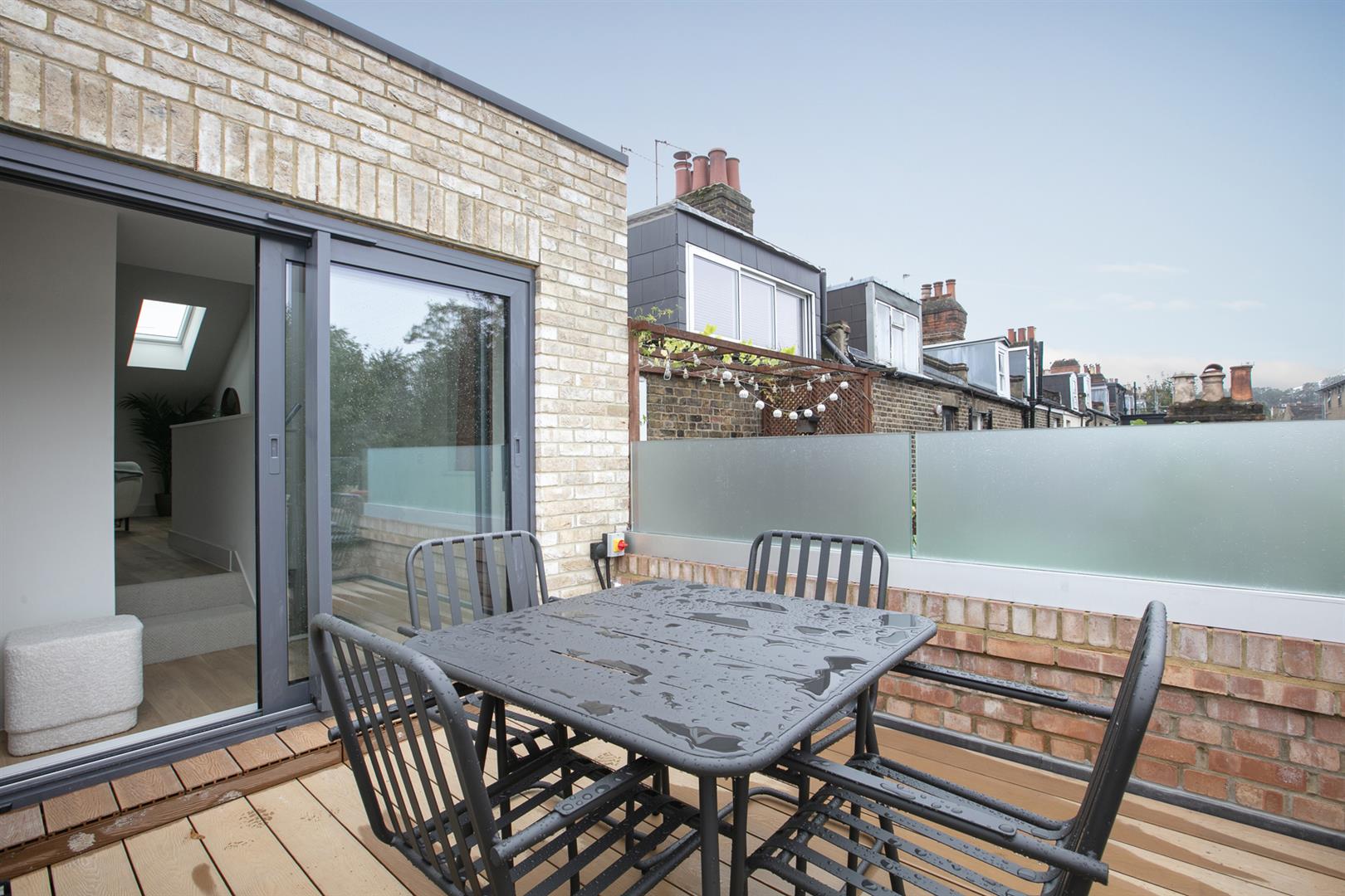 Your private entrance is accessed from the ground floor where you're lead upward via wide carpeted stairs. The rear return affords your first delightful double bedroom. This sits next to the main bathroom. Upward to the first floor you find your master bedroom fronting the street with an adjoining en suite shower room. Bedroom three completes this level with a peaceful rear aspect. The second return supplies access to that fantastic private terrace on which you'll while away the milder months. The top floor lavishly sprawls to an impressively proportioned open-plan living area. This includes comfortable lounging and dining areas and a super modern kitchen. A front aspect picture window supplies tonnes of light.