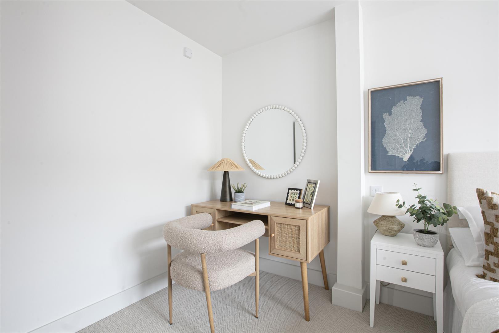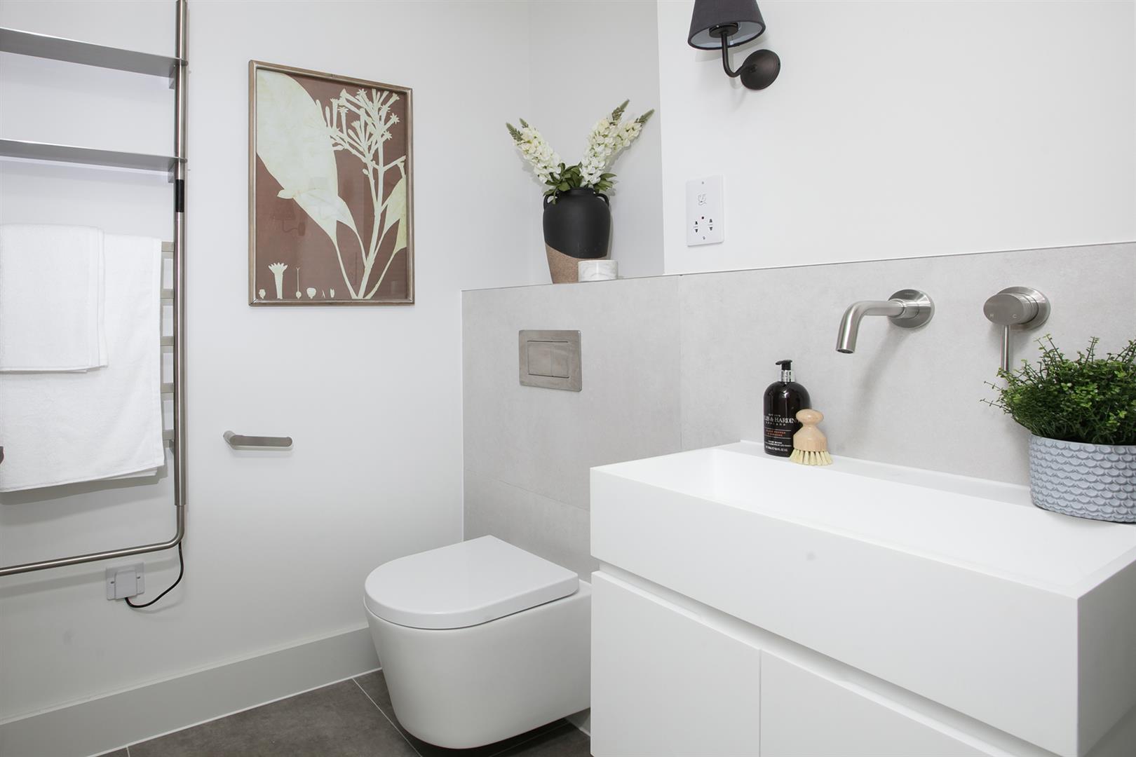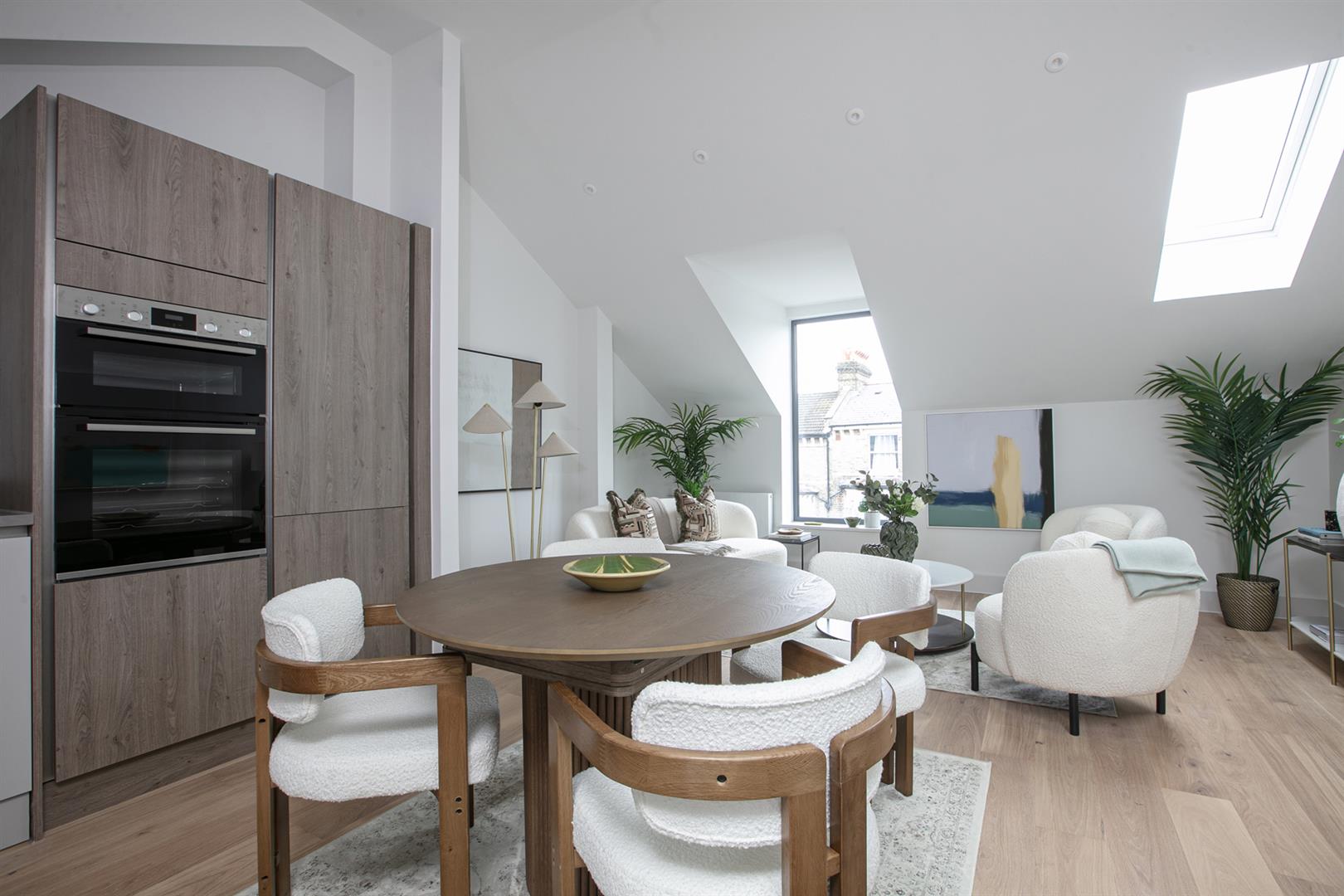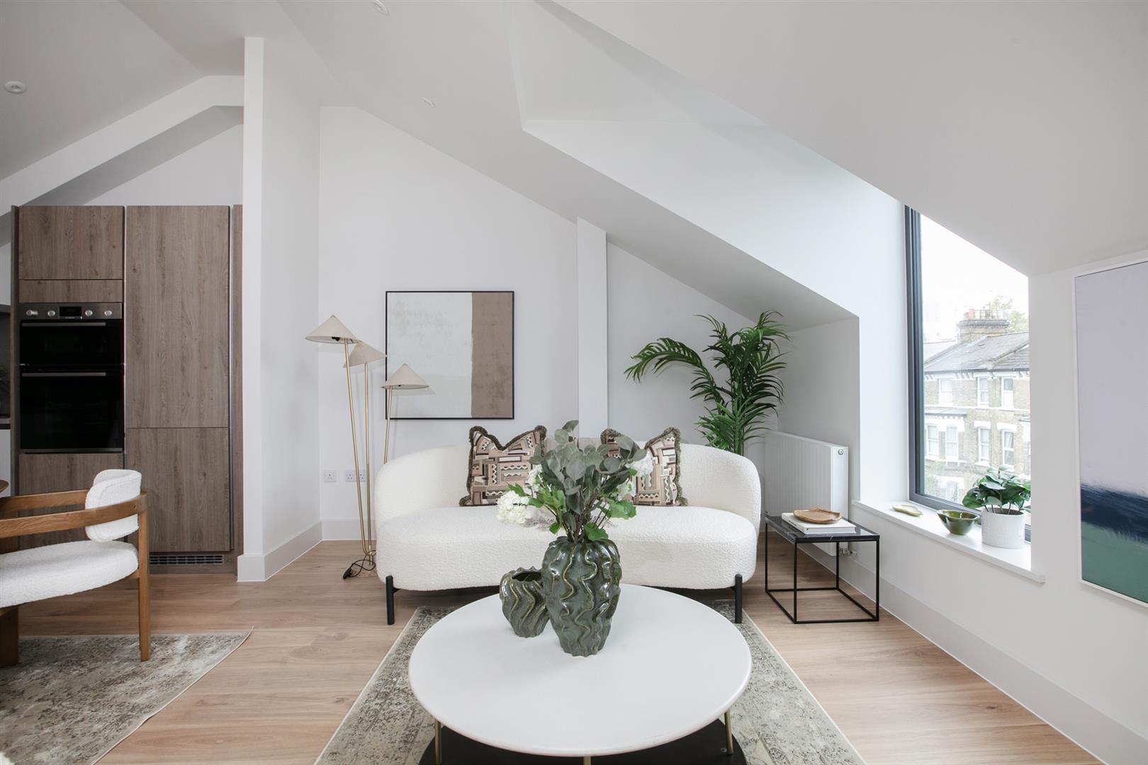 This magnificent architect designed split level three bedder promises a fantastic array of contemporary attractions. Split generously over the two upper floors of a perfectly placed and handsome modern building, the property supplies tasteful decor, bright, spacious accommodation, high ceilings and top notch fixtures and fittings. The sanitary ware is Lusso Stone and tiles are from 'Artisans of Devizes'. You'll also enjoy Havwoods engineered flooring, quality carpeting, Bosch appliances and fab stone counters. Accommodation comprises a fabulous open plan living area with adjoining kitchen and access to a sizeable private terrace, three wonderful double bedrooms (master ensuite) and bathroom. A 10-year new-build warranty and ecologically sensitive air source heat system both add to the charm.