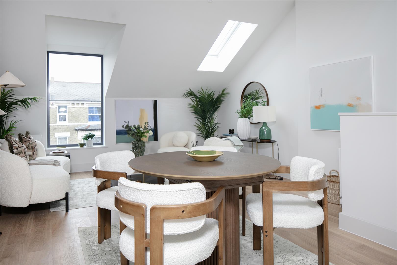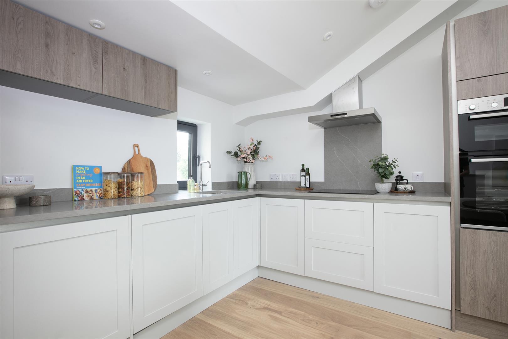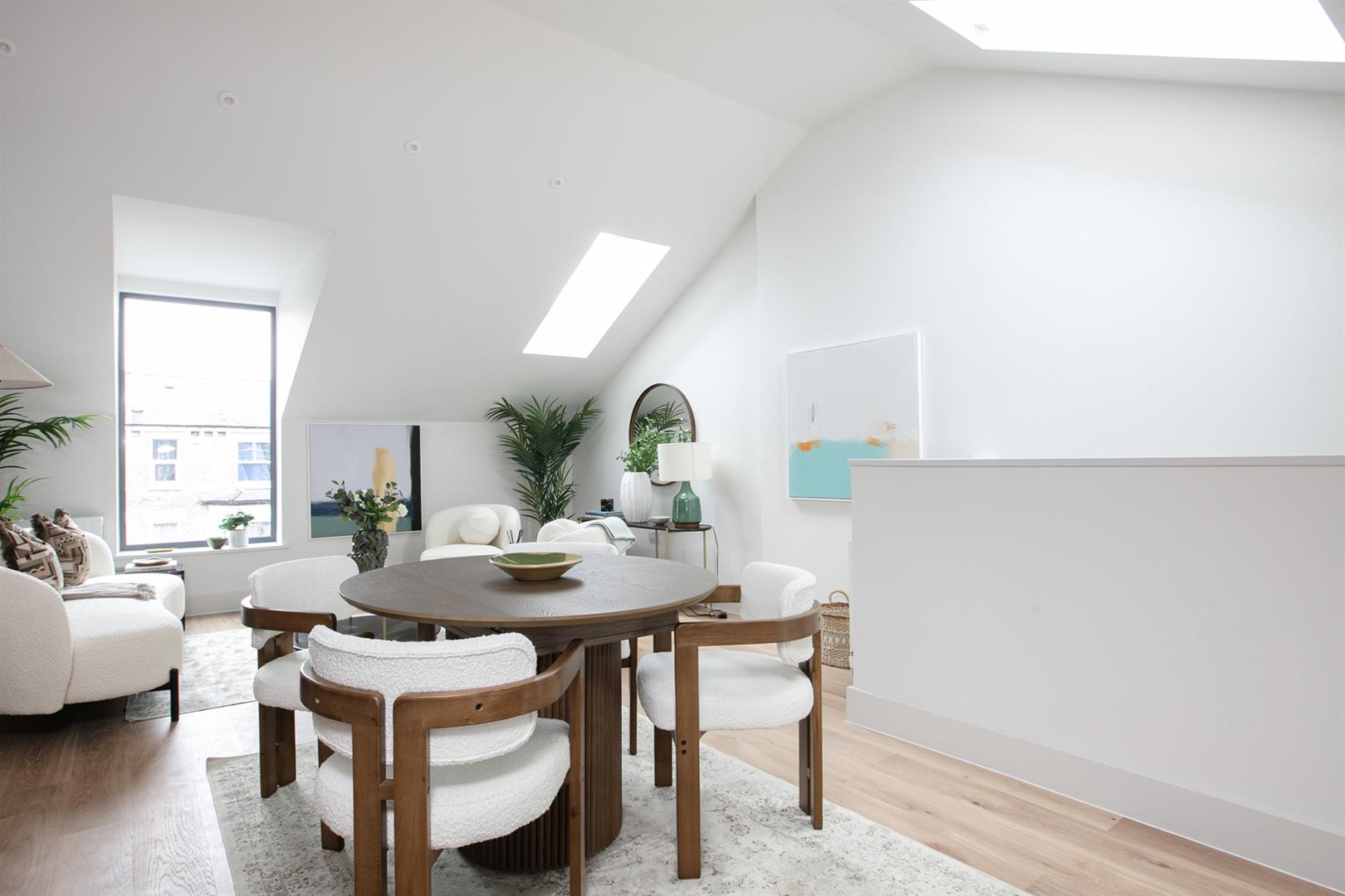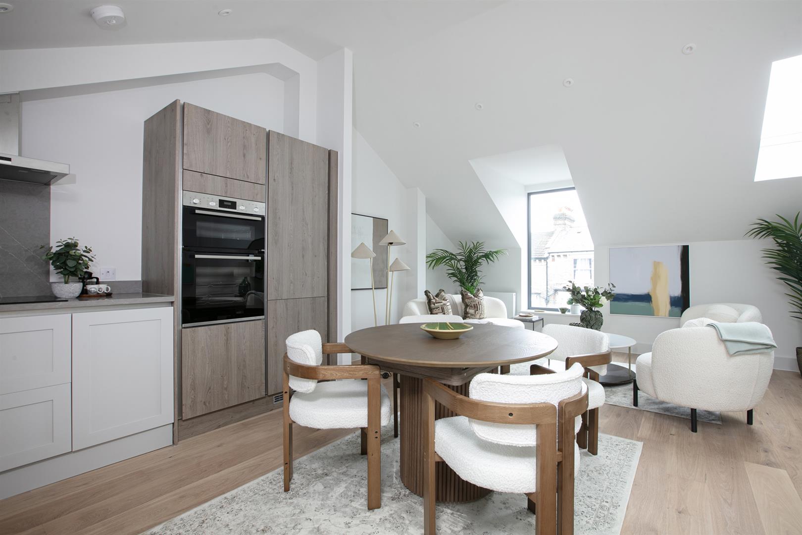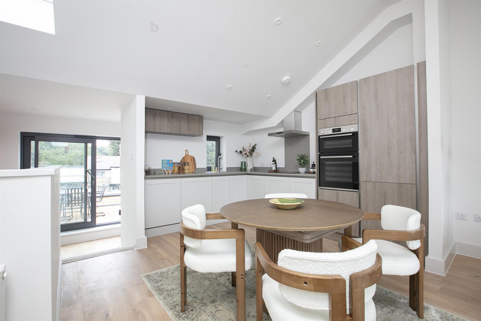 This magnificent architect designed split level three bedder promises a fantastic array of contemporary attractions. Split generously over the two upper floors of a perfectly placed and handsome modern building, the property supplies tasteful decor, bright, spacious accommodation, high ceilings and top notch fixtures and fittings. The sanitary ware is Lusso Stone and tiles are from 'Artisans of Devizes'. You'll also enjoy Havwoods engineered flooring, quality carpeting, Bosch appliances and fab stone counters. Accommodation comprises a fabulous open plan living area with adjoining kitchen and access to a sizeable private terrace, three wonderful double bedrooms (master ensuite) and bathroom. A 10-year new-build warranty and ecologically sensitive air source heat system both add to the charm.