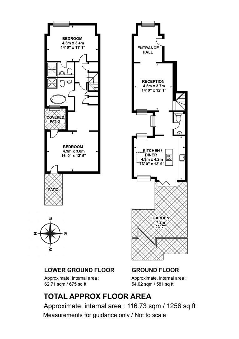 A private ground floor entrance leads inward to a bright entrance lobby and onward to your living area. A sizeable and tasteful modern kitchen/diner adjoins to the rear leading through glass doors to your large private garden. Heading downward from the living area you find your master bedroom enjoying access to two pretty courtyard spaces. There's a dressing area and plenty of space for storage. The second double bedroom faces front with access to an ensuite shower room. A slick modern bathroom completes the tour.