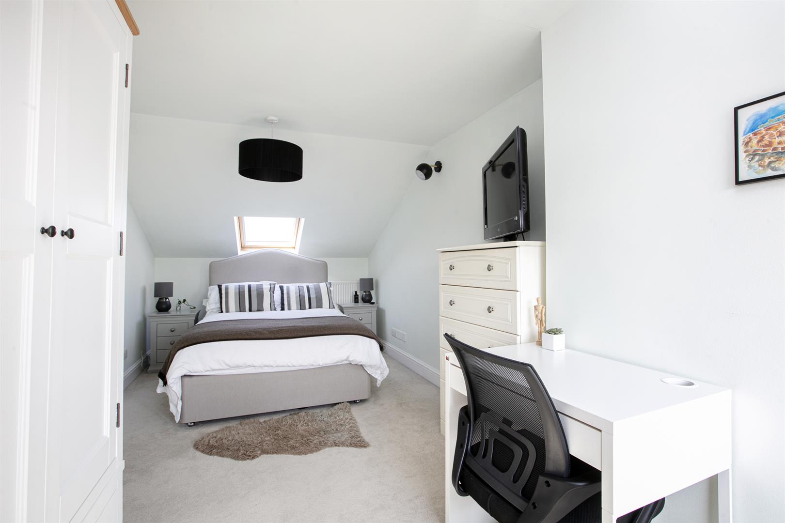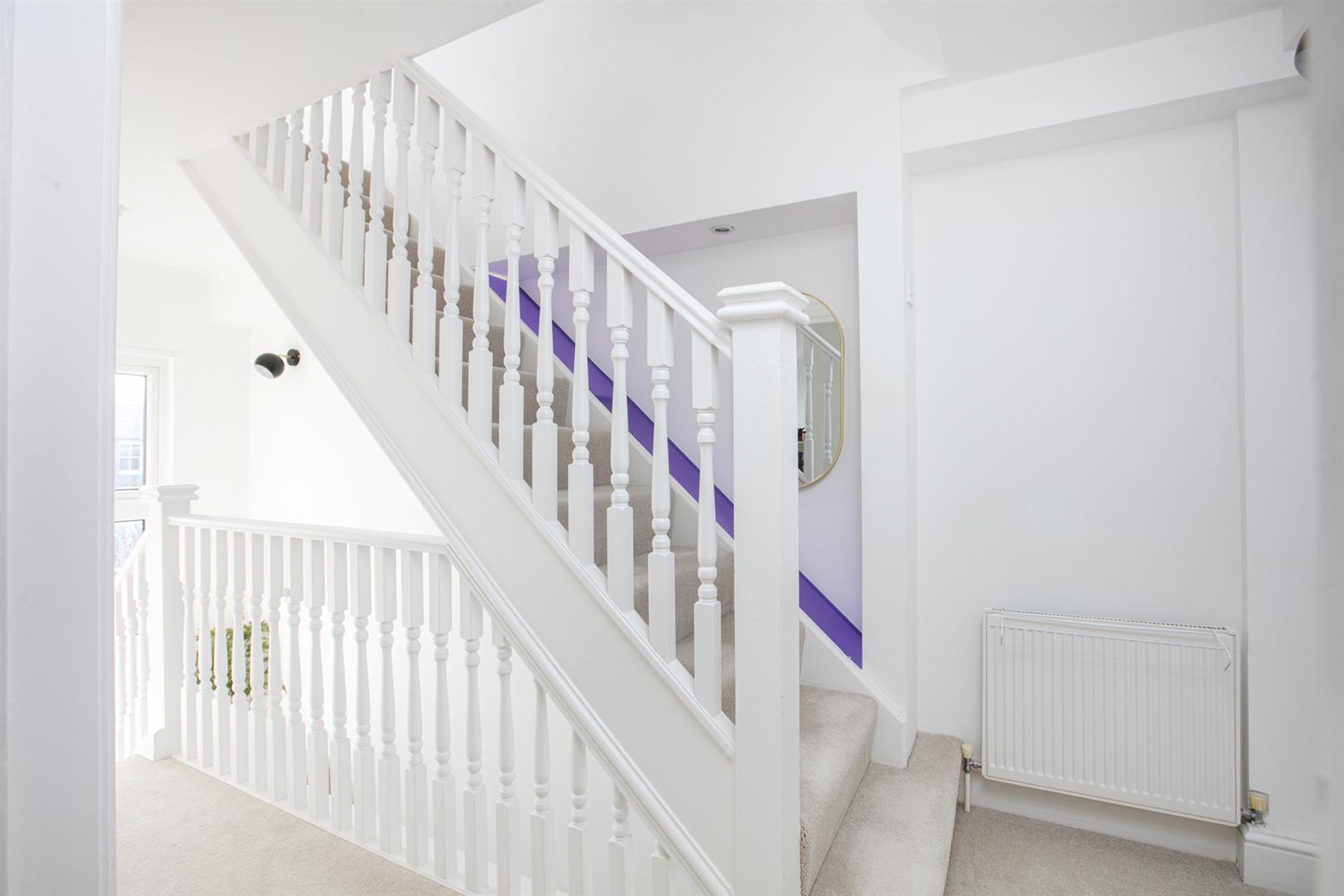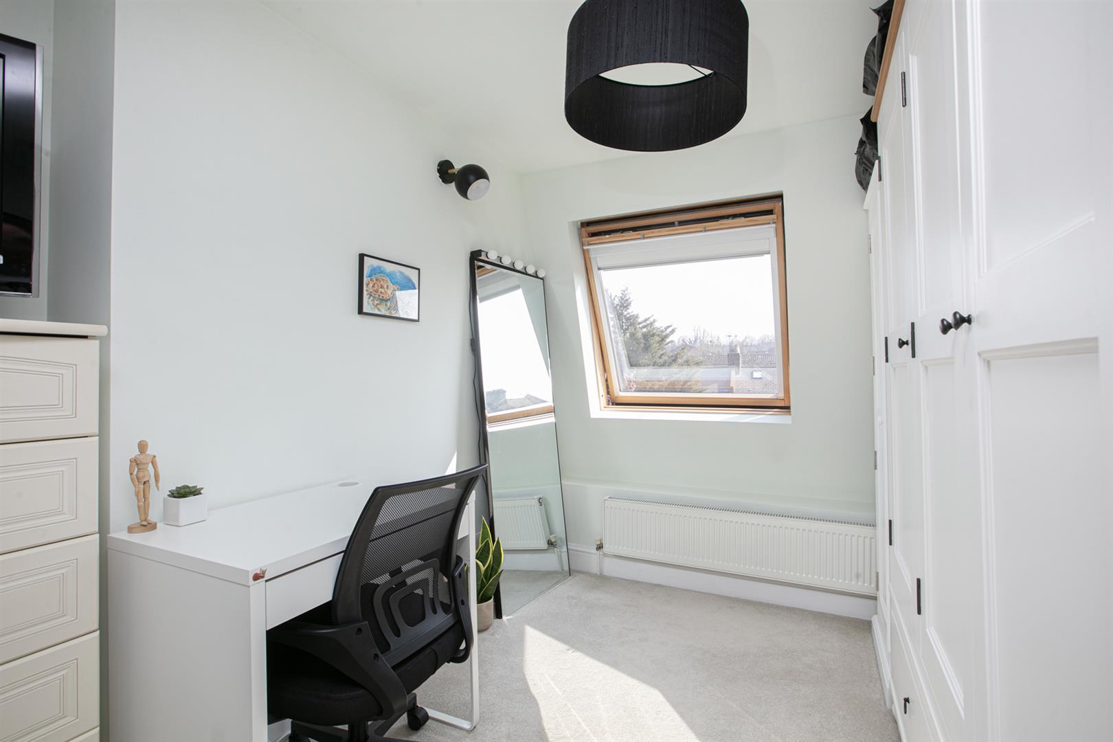 The first of your double bedrooms completes this floor with a lofty and leafy rear aspect. Heading upward you'll enjoy a contemporary inset with spot lights running upward along the staircase. The landing is wonderfully bright thanks to a vertical Velux. High ceilings make it feel super spacious. The master bedroom is a particularly large size and has a light aspect to front and rear. Next to this sits the bathroom which has both shower and bath, modern tiling, heated towel rail and a front aspect Velux.