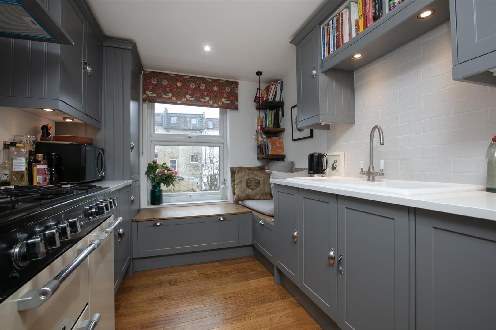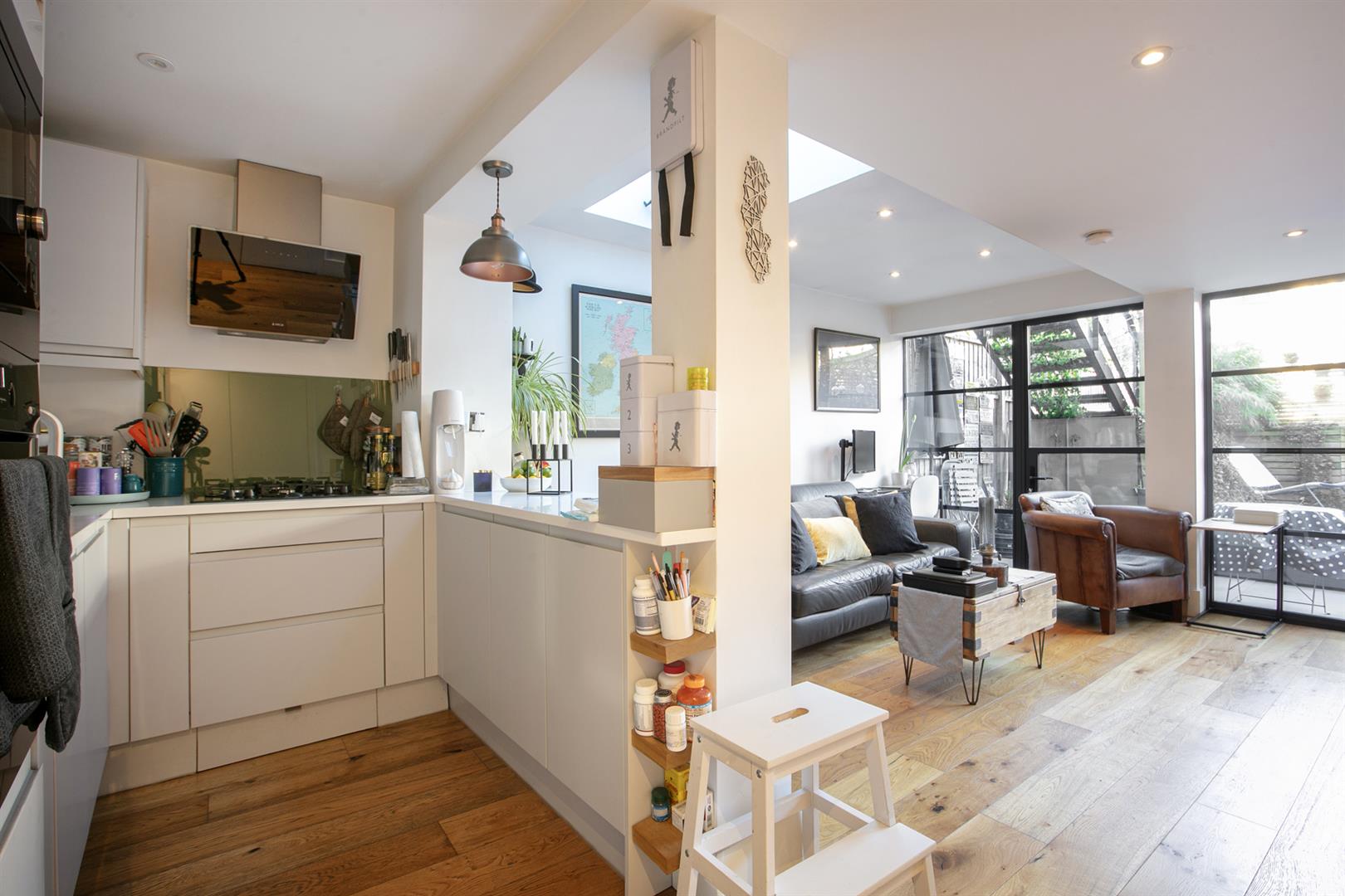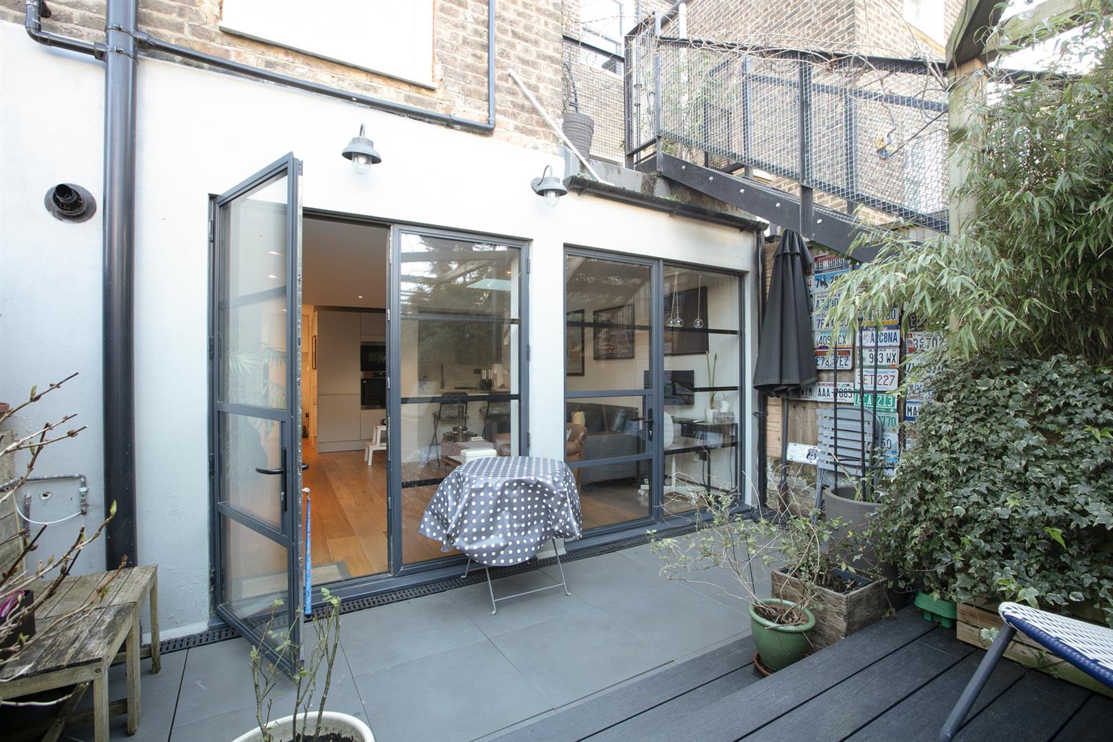The lower ground floor flat can be accessed from either the main entrance hall or indeed through its own private entrance to the front of the property. It comprises and lovely front aspect double bedrooms, modern tiled shower room and a wonderful full-width open plan living area with modern kitchenette. Wide glass doors open rear to the patio garden which is walled off from the rest of the garden with trellessing. It's a fine spot for the guest to spill onto during the summer gathering!