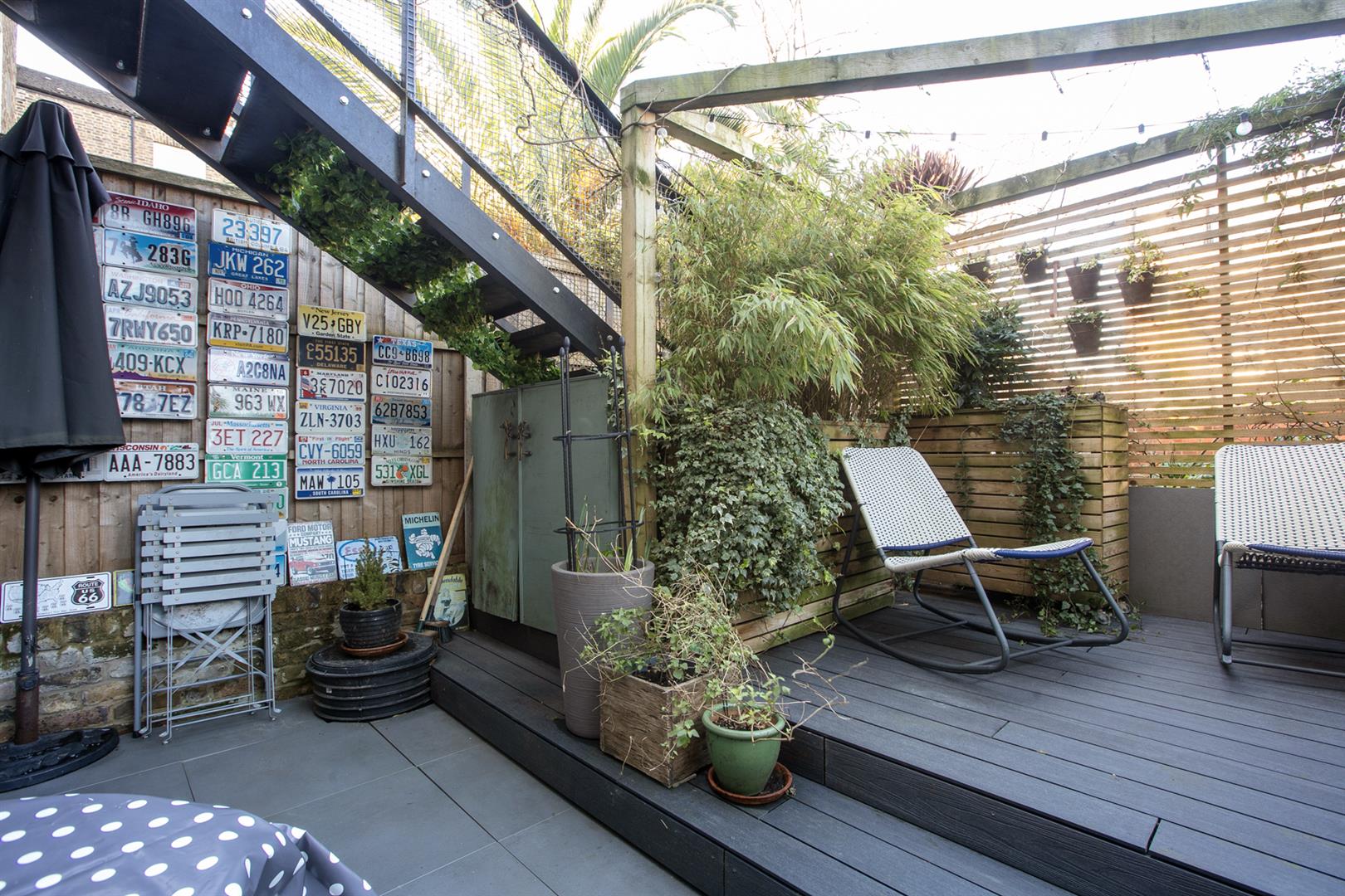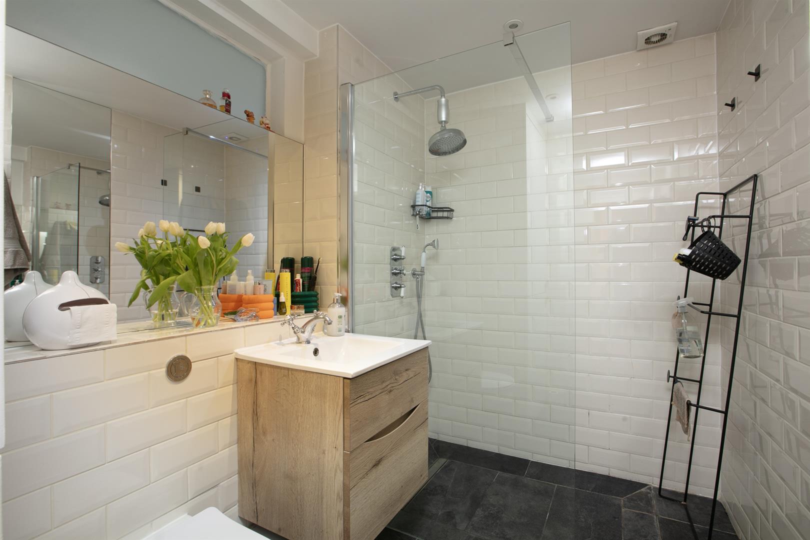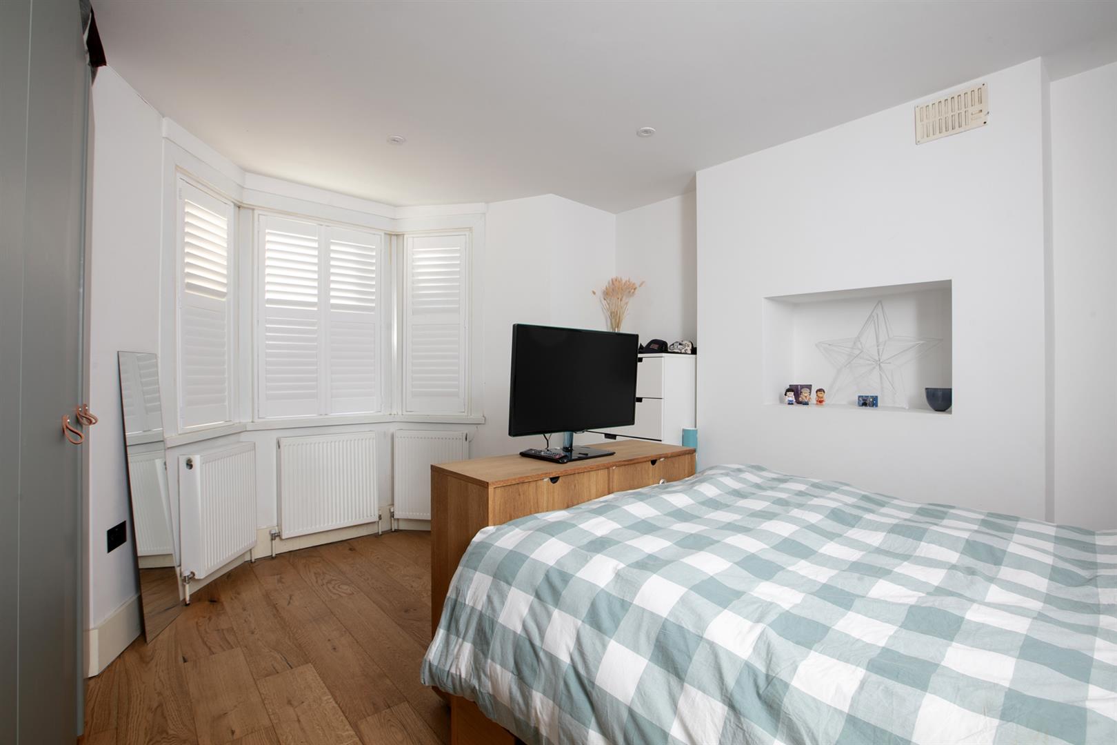 The lower ground floor flat can be accessed from either the main entrance hall or indeed through its own private entrance to the front of the property. It comprises and lovely front aspect double bedrooms, modern tiled shower room and a wonderful full-width open plan living area with modern kitchenette. Wide glass doors open rear to the patio garden which is walled off from the rest of the garden with trellessing. It's a fine spot for the guest to spill onto during the summer gathering!