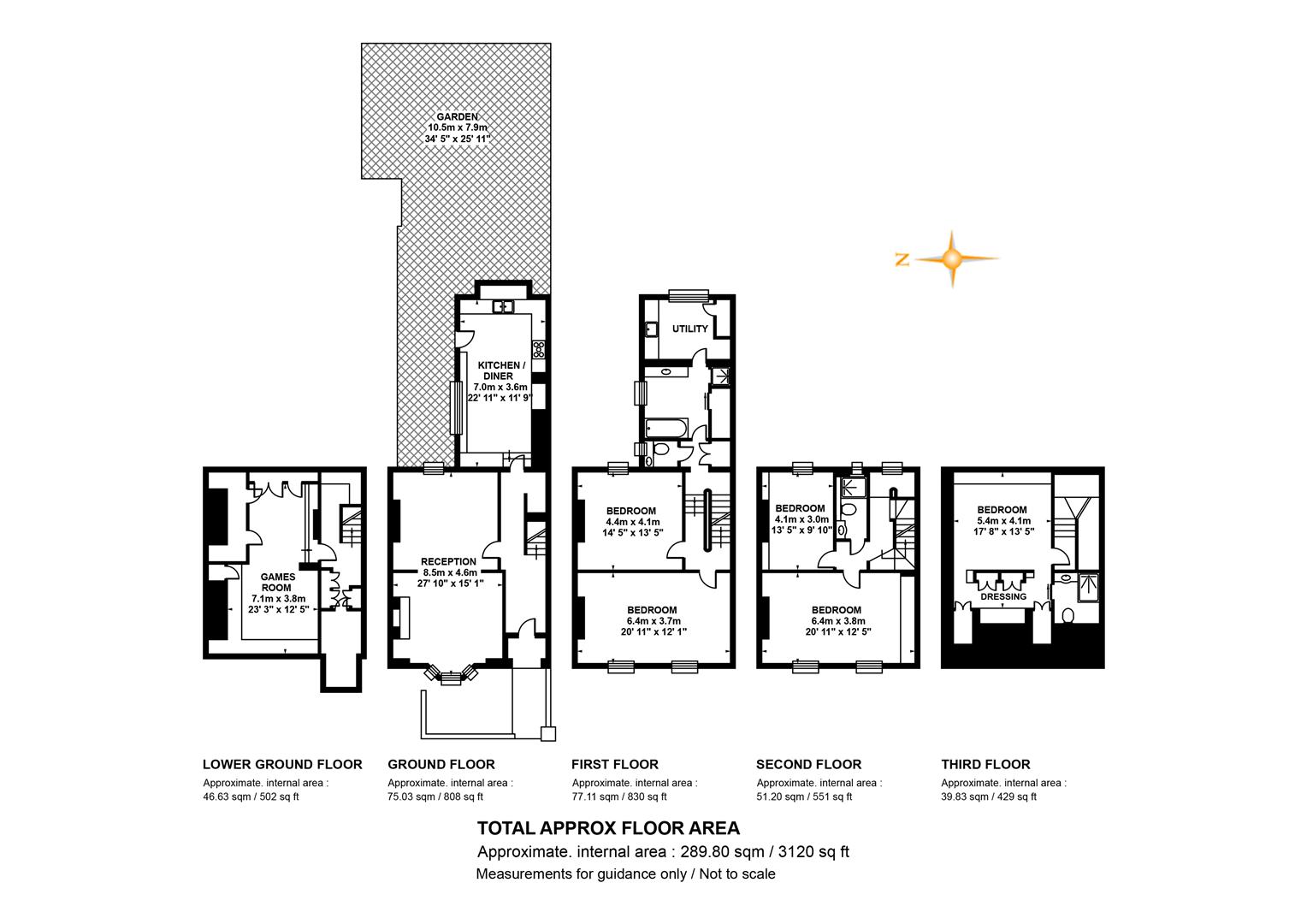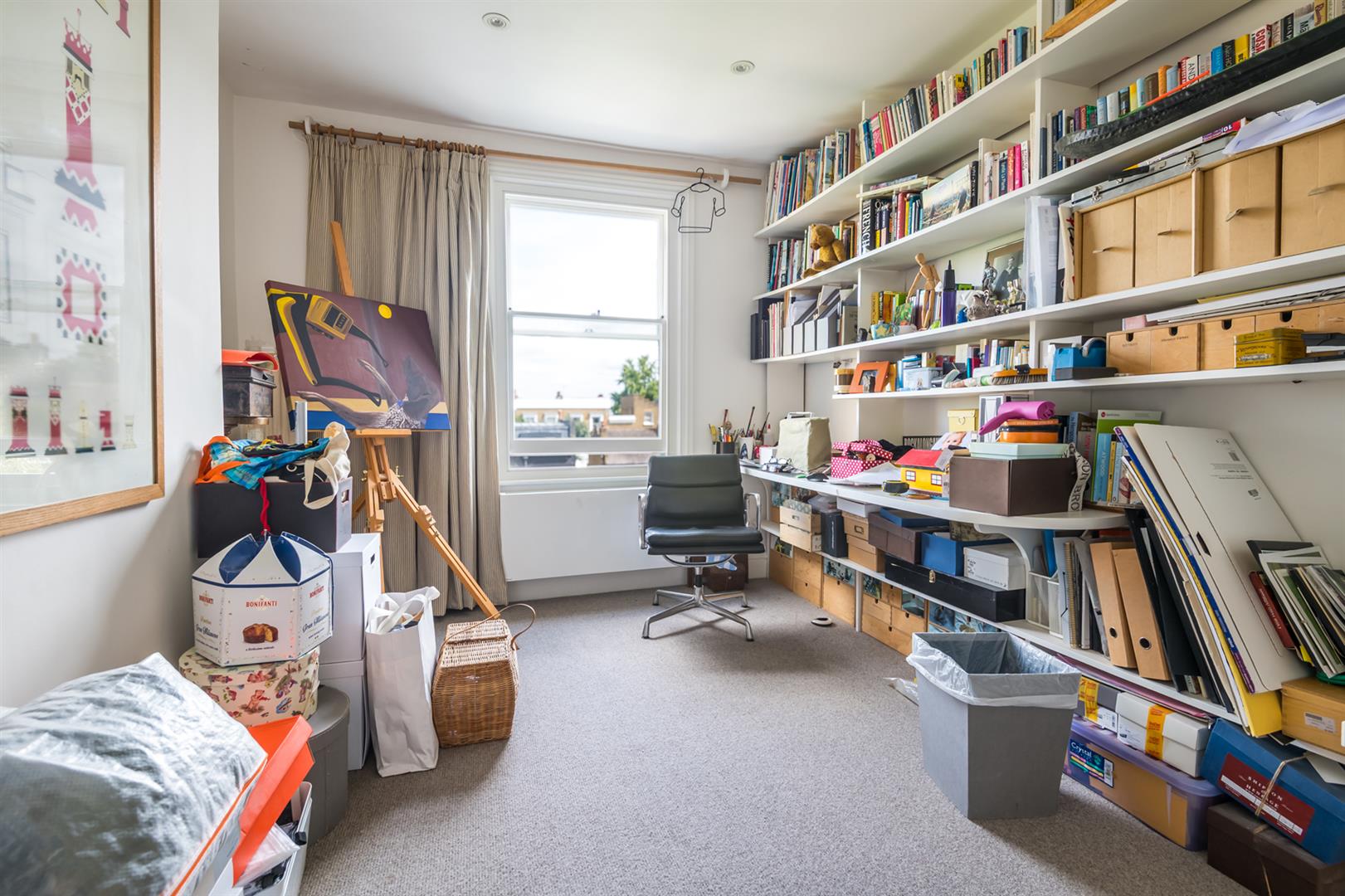 Heading up from the hall is the original staircase with curling hardwood handrail and ornate balustrades. The first return supplies a guest WC opposite a handy laundry cupboard. Next comes an insanely bright family bathroom with rectagular skylight running the full length of a gently vaulted ceiling. There's ample fitted storage, bath and a separate walk-in shower. Beyond this is a large, utility /laundry room with storage, sink and large picture window affording you a splendid panorama of the gardens whilst you iron. The first floor supplies a grand double bedroom over 6 metres in width. Currently arranged as a lounge/music room, it has original cornicing and two large front aspect sash windows. Bedroom two, another large double, boasts fitted bespoke designed wardrobes and views of the garden and trees. Upward to the second floor you find yet another super double bedroom covering the full width of the house and with masses of storage with a full wall of fitted sliding wardrobes and bespoke fitted wardrobes either side of the bed. Bedroom four is a pleasant rear-facing double with integrated desk, shelving and lofty garden views - a lovely craft/study 'pretend to work-from-home' space. A handsome shower room with beautiful seamless marble floor and counter and original stained-glass door completes this floor.