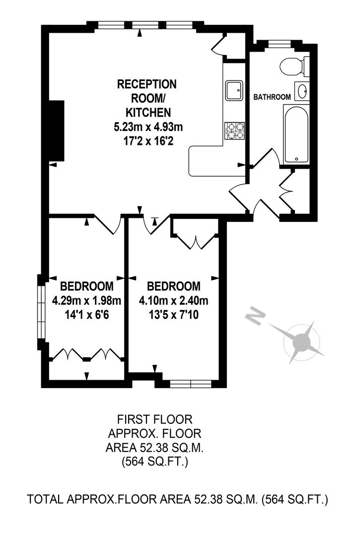 There are two bedrooms leading off the living area, both are good sized bright doubles with painted wooden floors and cast iron radiators. Both bedroom enjoy fitted storage - perfect for keeping things trim. The bathroom is back towards the entrance of the flat and comprises a smart white suite with white tiling. There is a heated towel rail and a rain-effect shower over the tub. Head outside to your large communal garden for entertaining or exercising those green fingers.