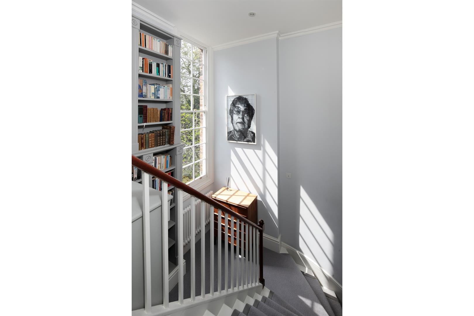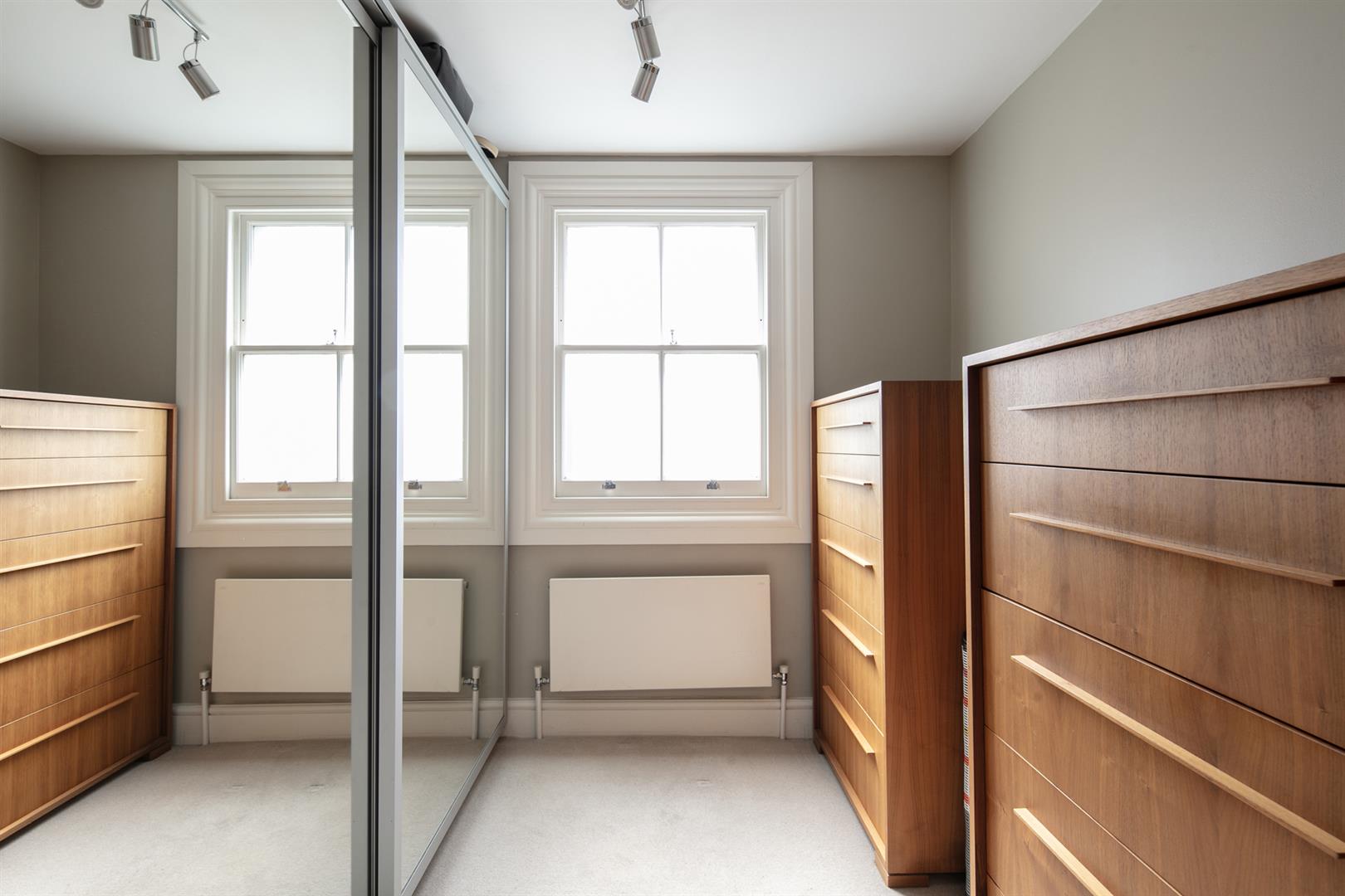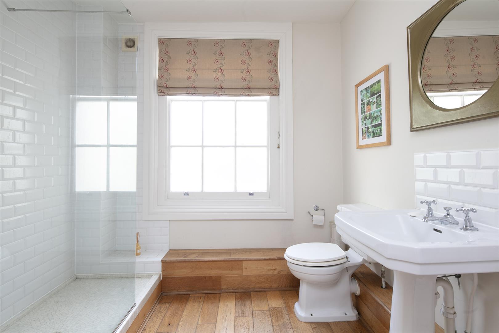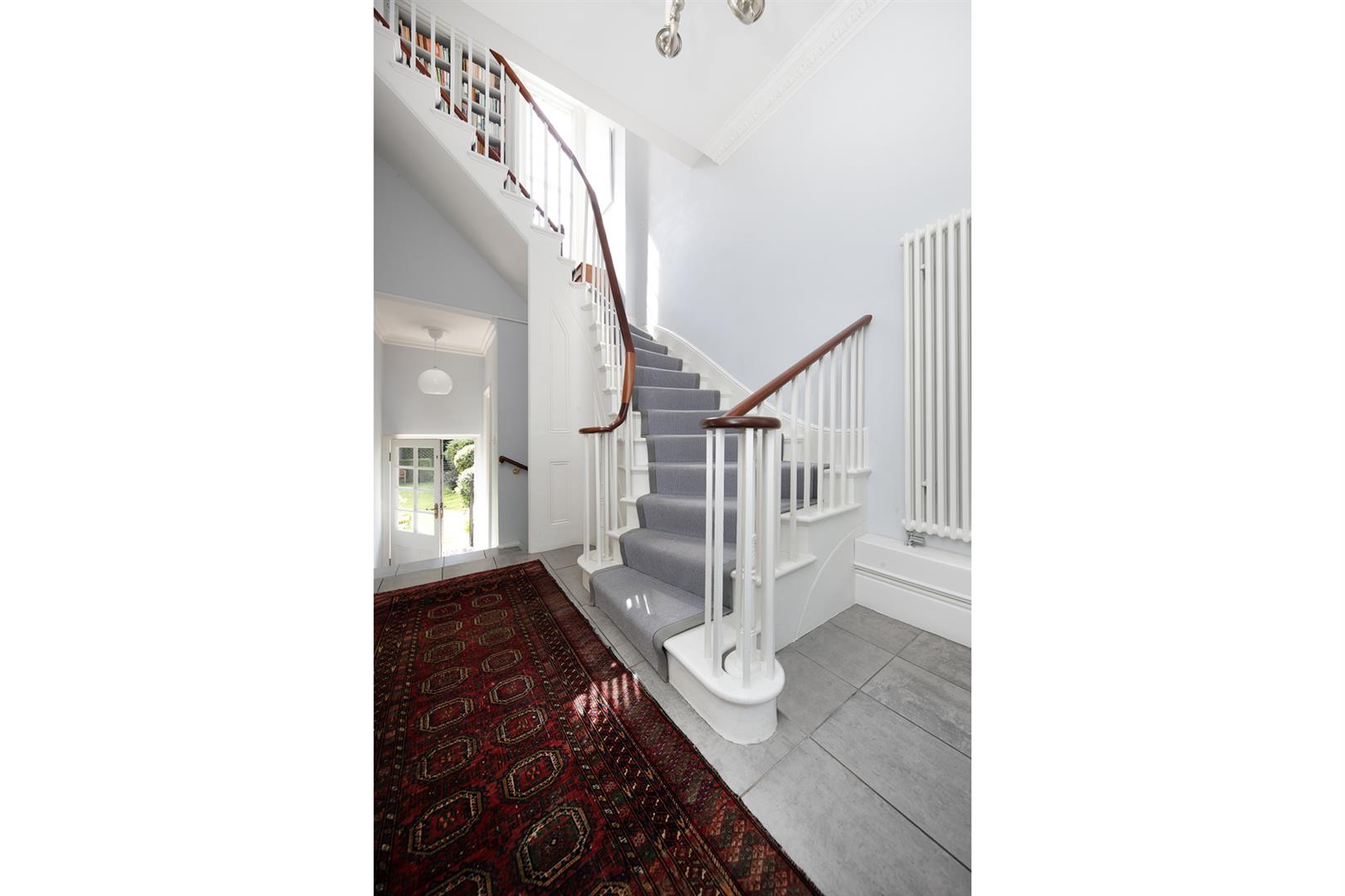 Taking the staircase up to the first floor you reach a gloriously airy and spacious half-landing with plentiful custom built shelving. A great sized bathroom with separate shower cubicle is first left. The drawing room gracefully fronts the street with more sublime views over the Grove through tall French doors. Shelving and cupboard space adorns the chimney recesses. Out of here and left is the first of five double bedrooms. Upward to the second floor you find a sensationally proportioned master suite with sunken en-suite bathroom and adjoining dressing room. A third double bedroom completes this floor nicely. Opposite the top landing is a good sized bathroom, to your left is a cupboard followed by a door leading out onto a fab terrace with superb views. The last two double bedrooms bear right and both have double sets of fitted wardrobes. The top floor terrace is accessed off the landing and supplies the perfect spot for watching the fireworks on New Year's Eve.