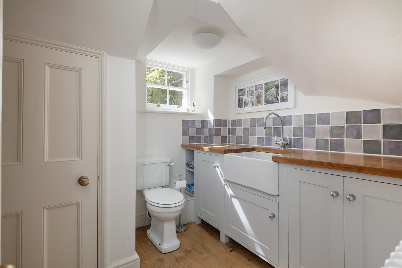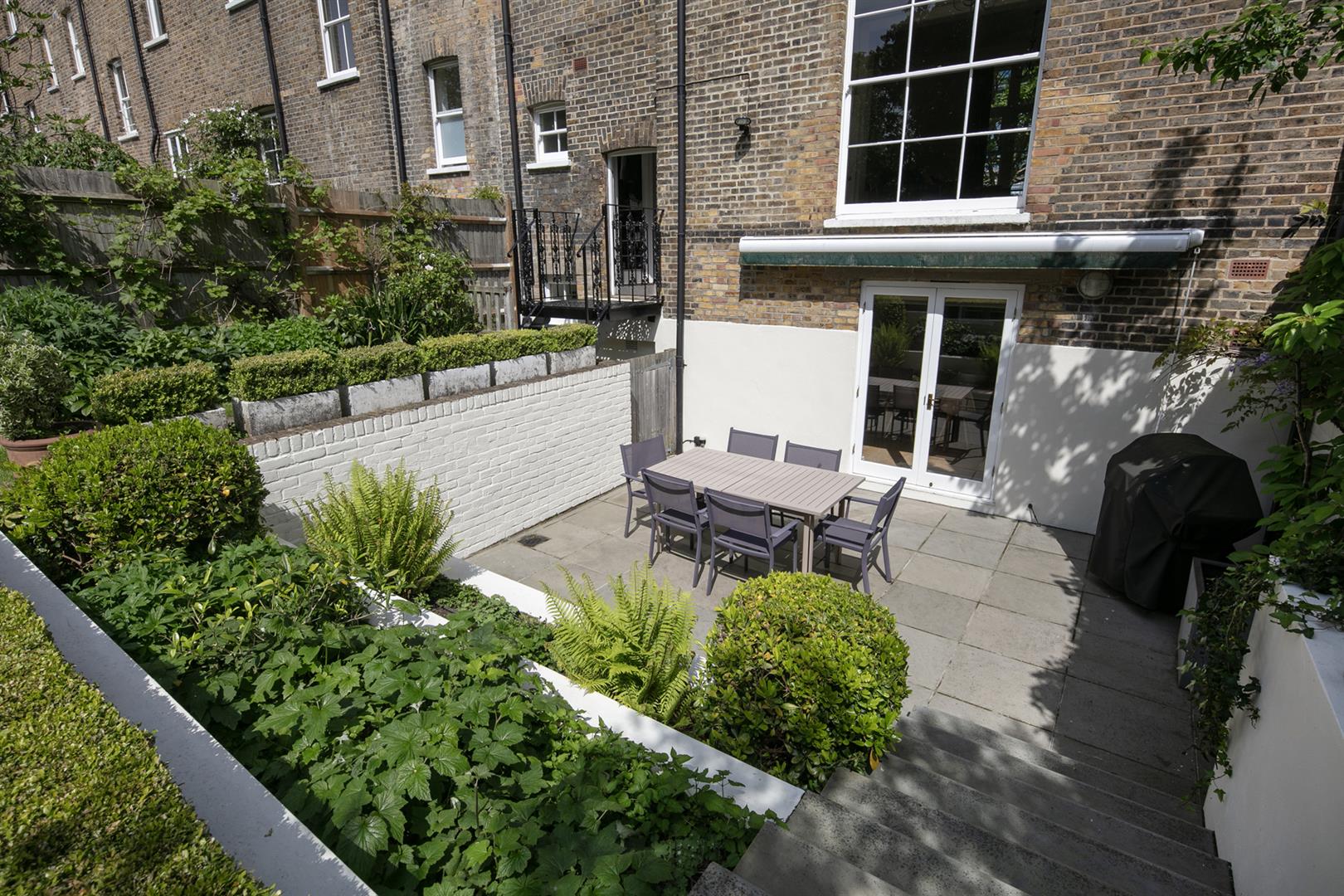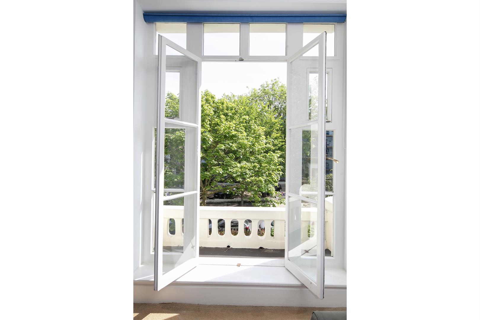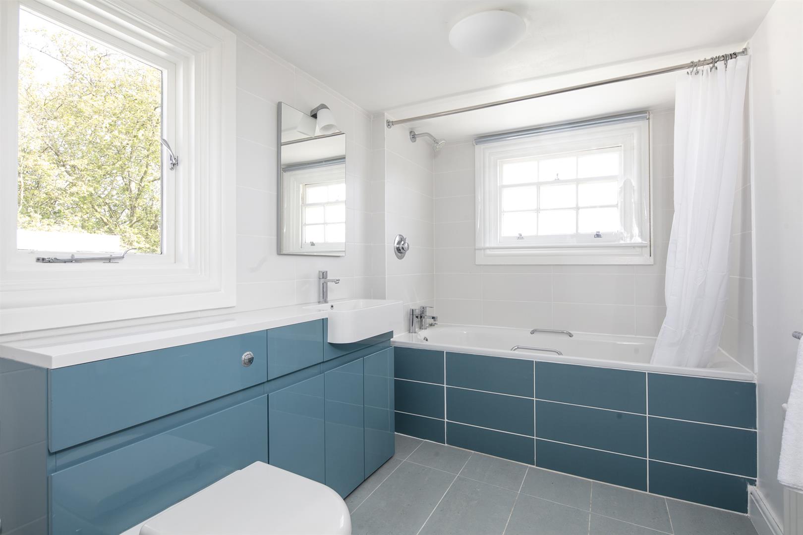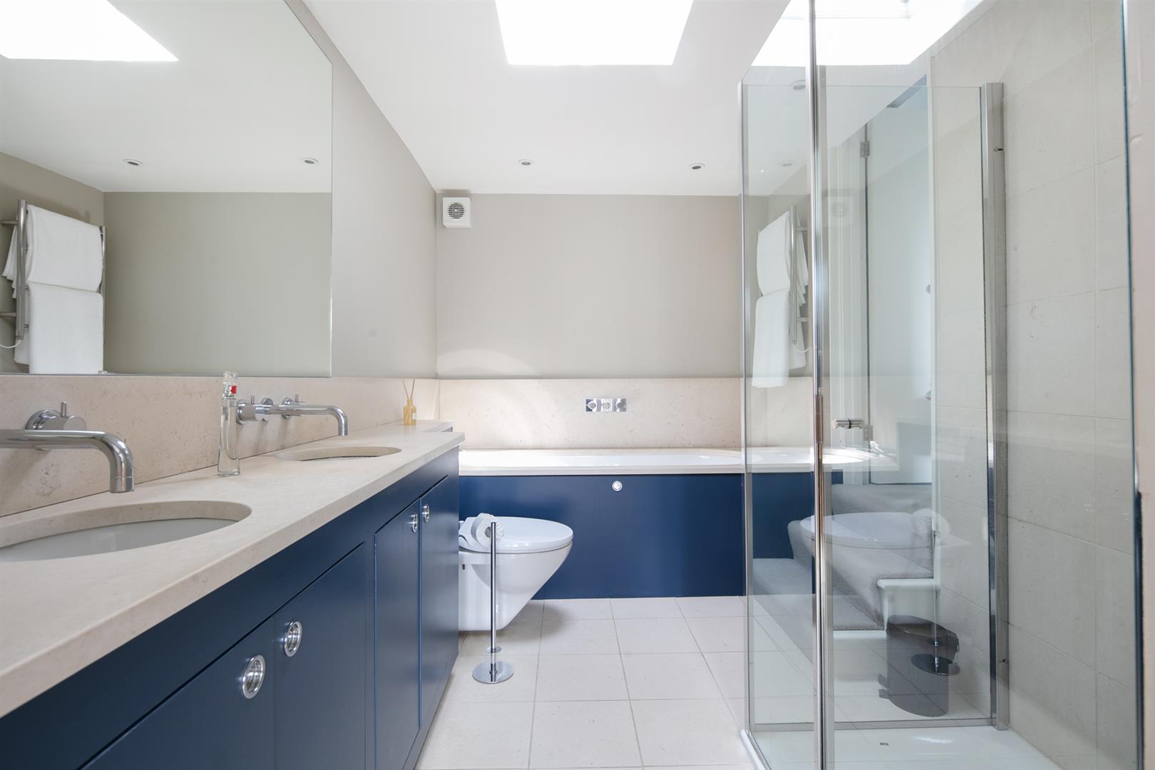 Taking the staircase up to the first floor you reach a gloriously airy and spacious half-landing with plentiful custom built shelving. A great sized bathroom with separate shower cubicle is first left. The drawing room gracefully fronts the street with more sublime views over the Grove through tall French doors. Shelving and cupboard space adorns the chimney recesses. Out of here and left is the first of five double bedrooms. Upward to the second floor you find a sensationally proportioned master suite with sunken en-suite bathroom and adjoining dressing room. A third double bedroom completes this floor nicely. Opposite the top landing is a good sized bathroom, to your left is a cupboard followed by a door leading out onto a fab terrace with superb views. The last two double bedrooms bear right and both have double sets of fitted wardrobes. The top floor terrace is accessed off the landing and supplies the perfect spot for watching the fireworks on New Year's Eve.