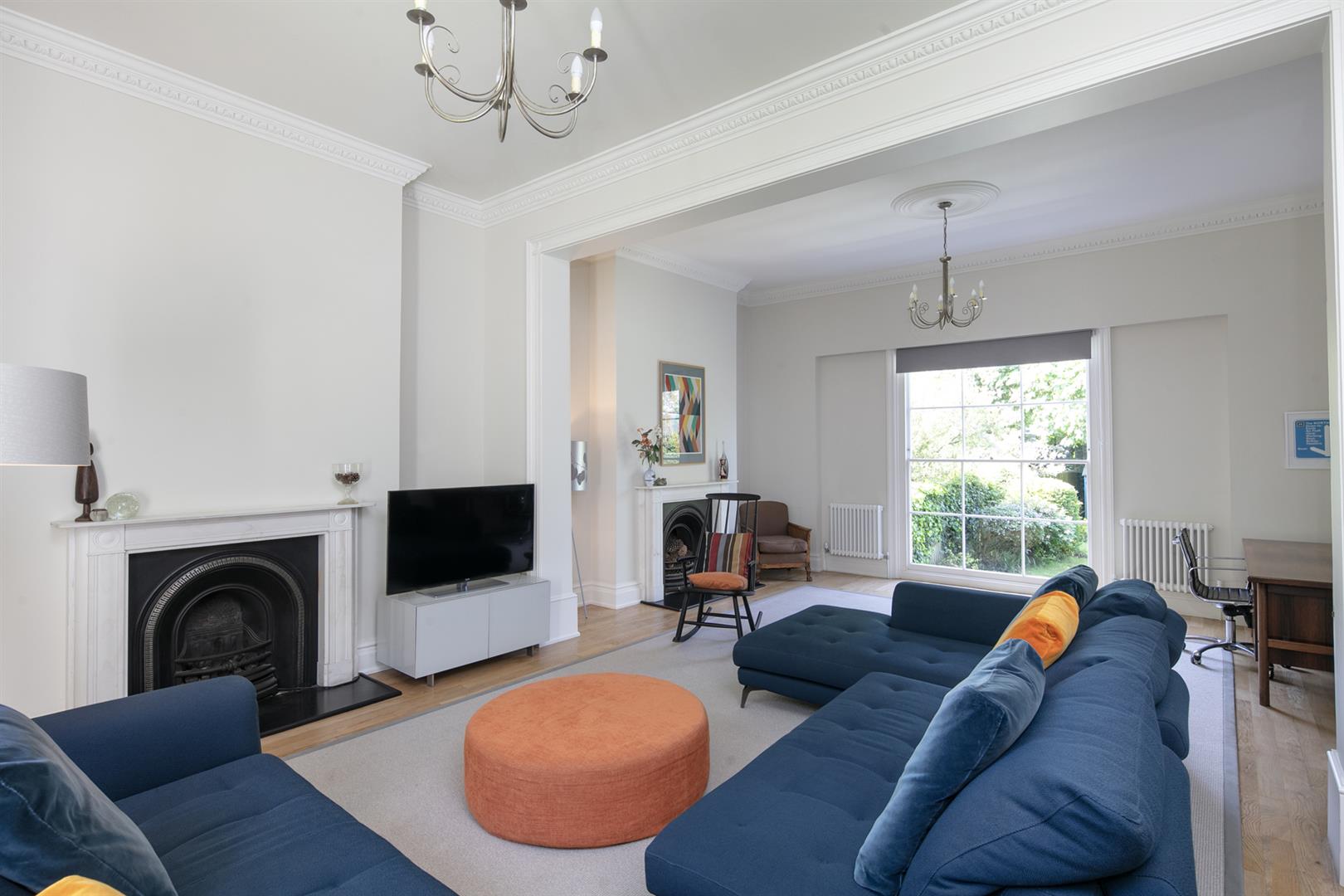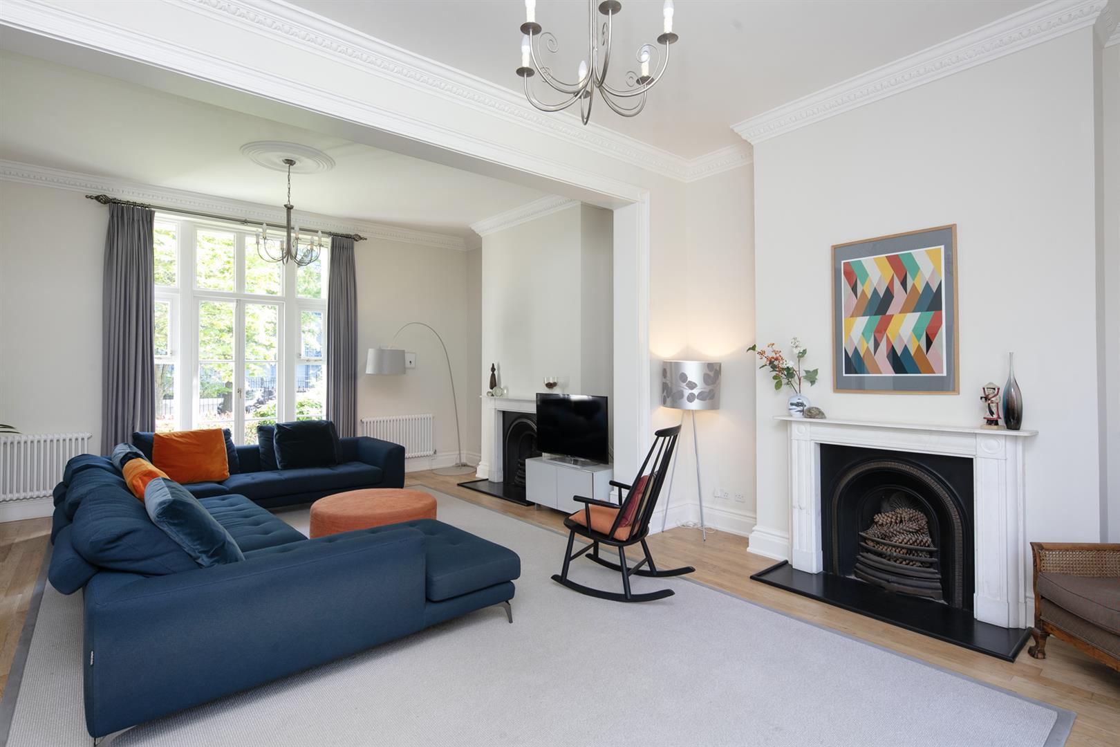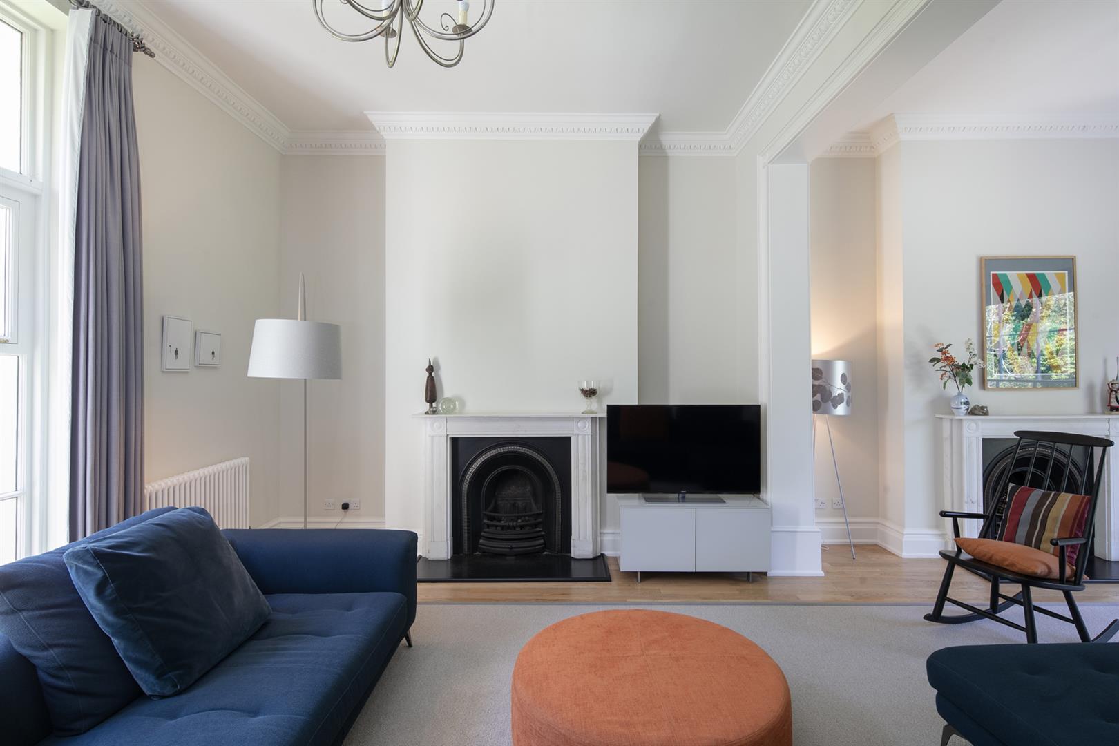 Set back well from the road past a good sized lawned area and behind some handsome iron railings, take the footpath up to reach the front door. The exterior is stucco-clad with Doric-type porches and dentil cornices supporting wonderful balustraded balconies. Inside you face an elegant curling hardwood handrail gracing a most impressive original staircase. There's a handy cloakroom which ensures your hallway is always presentable. The first door on your left leads to the glorious main reception with tasteful styling and polished floorboards. As the room has previously been opened up, two sets of fireplaces are on view. A magnificent rear facing full-height picture window frames an idyllic garden vista. Tall front-facing French doors supply a view of the handsome easterly terraces opposite. It's simply demands to host your glamorous soirees.
