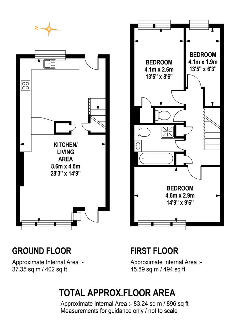 Back inside, head up to the first floor to find the master bedroom facing rear over the communal green space. It's a wide, bright room with tonnes of light. Two further bedrooms, a double and a single, each face over the Grove with a pleasant streetscape. The bathroom is accessed off the landing next to two separate recessed storage points. It enjoys both bath and walk-in shower and some modern tiling. The wc is separate to aid morning traffic.