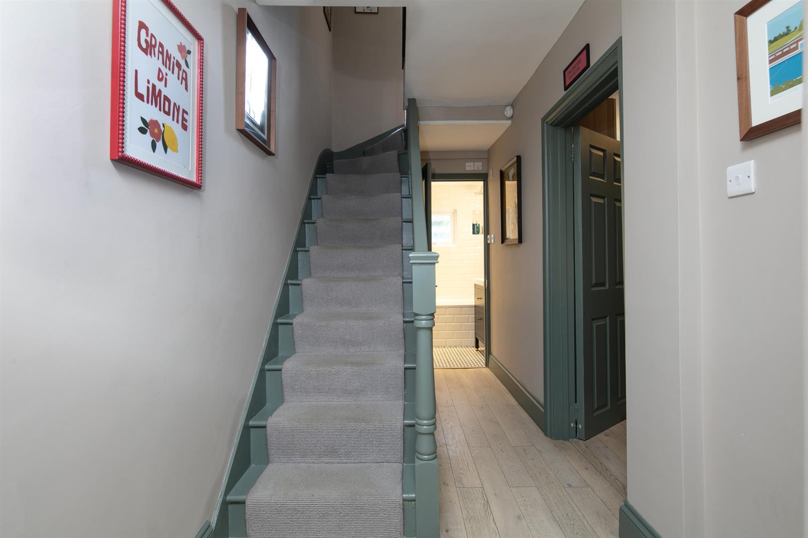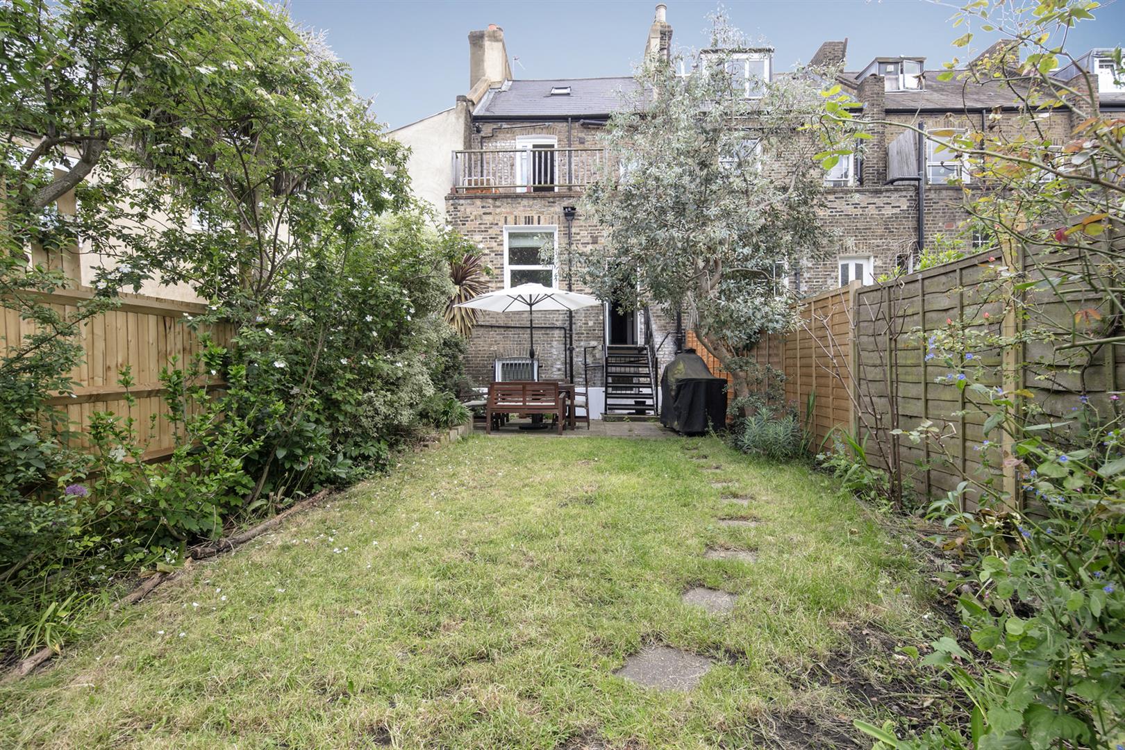 Heading downward to the spacious lower landing you find more dulcet styling. The first of your proper double bedrooms fronts the street. There's bespoke fitted storage and plenty of light. The second, even larger double enjoys a rear aspect. A second entrance point allows for maximum versatility and there's a niftily placed laundry area to the rear. Accessing the garden you find a wonderful patio leading to a sizeable lawn - the perfect spot for summer gatherings!