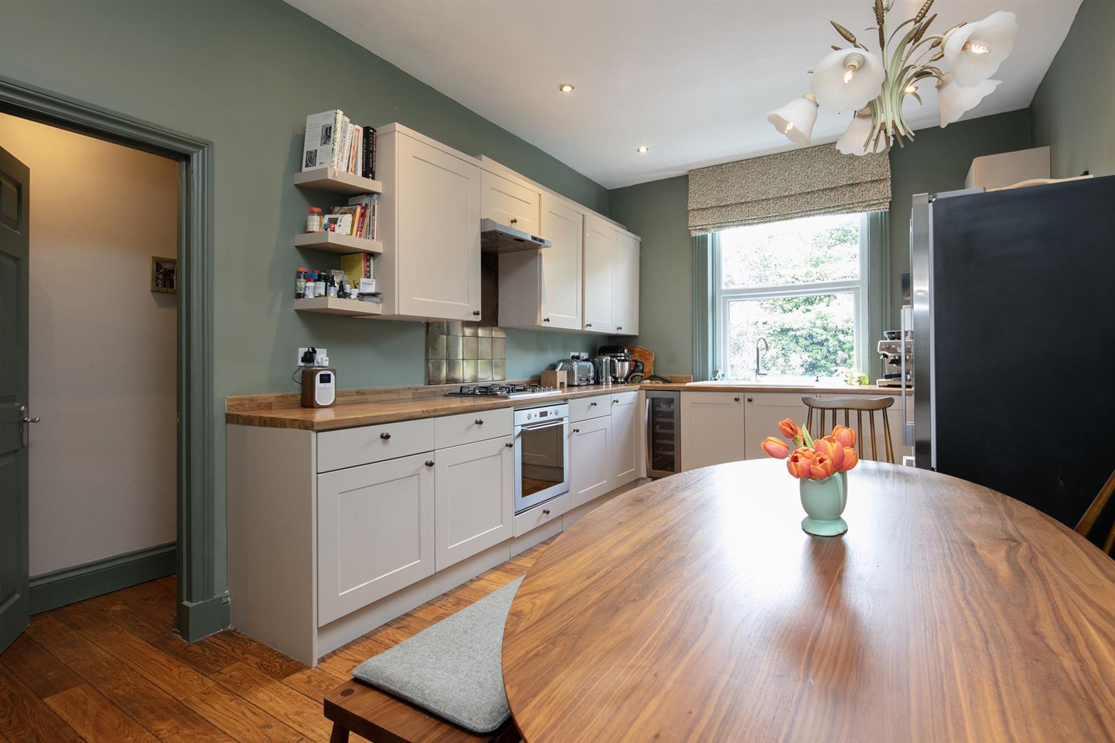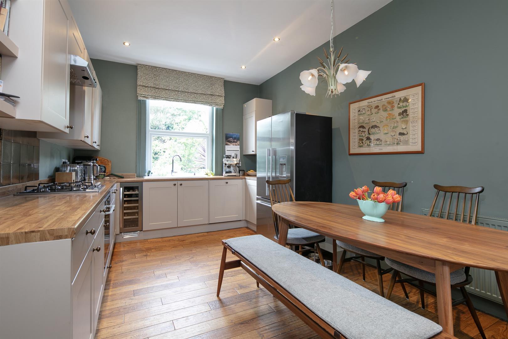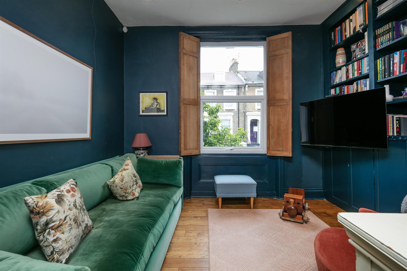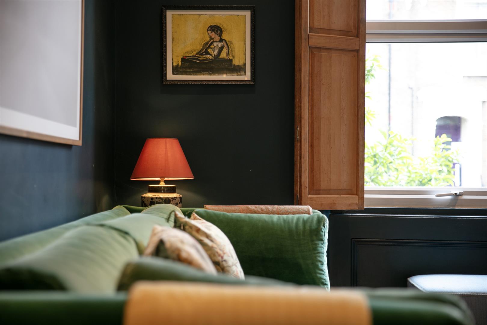 The building stands handsome and tall along the most peaceful end of Flaxman Road. It's a friendly, mature spot awash with similarly attractive period properties. Ascend a set of steps to the communal entrance. Your inner hall introduces fabulous Farrow and Ball tones - a theme in abundance throughout. The reception fronts the street, presented in 'Hague Blue'. Light gushes in through a large sash window with lovely wooden shutters. To the rear of this adjoins a large kitchen/diner with seating for the whole family. Country style cabinets are crowned with plenty of counter space and there's a full range of modern appliances. 'Green Smoke' on the architraves complements 'Cardroom Green' on the walls - it's all beautifully balanced.