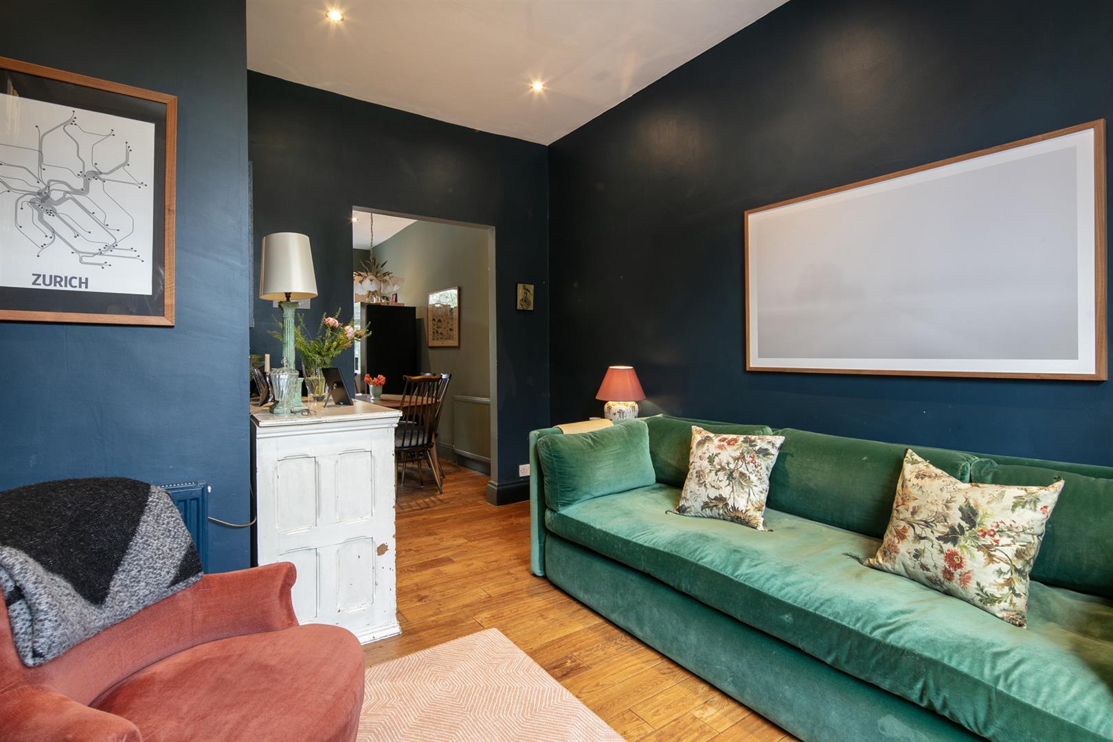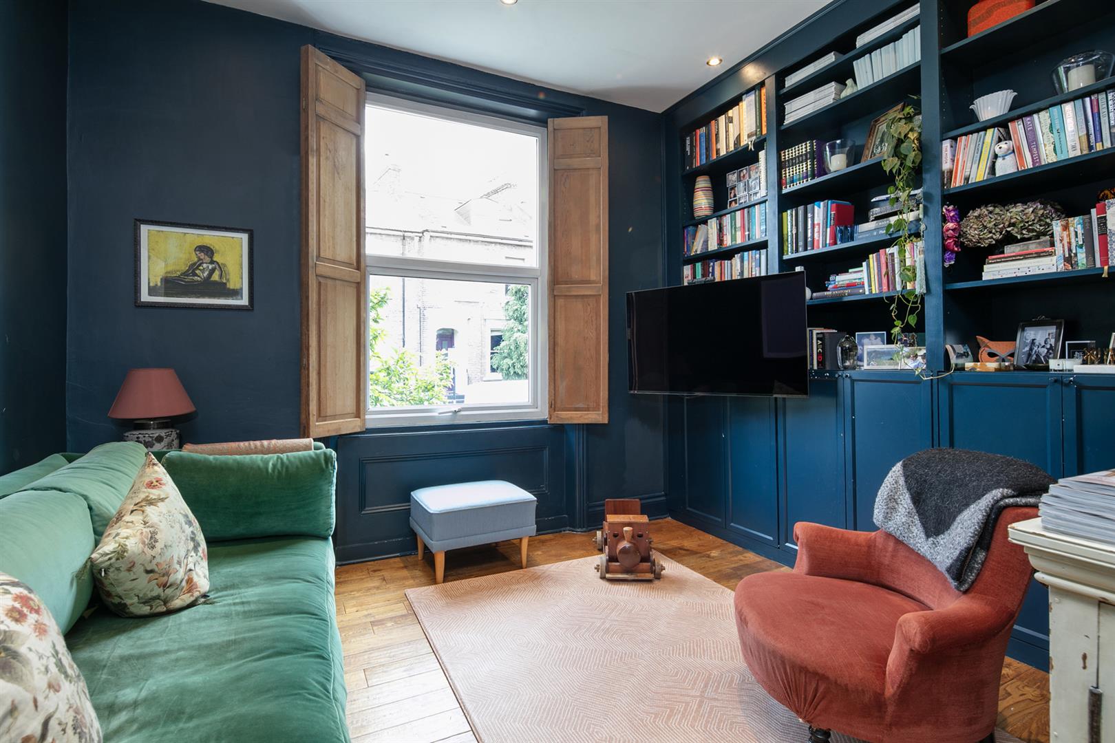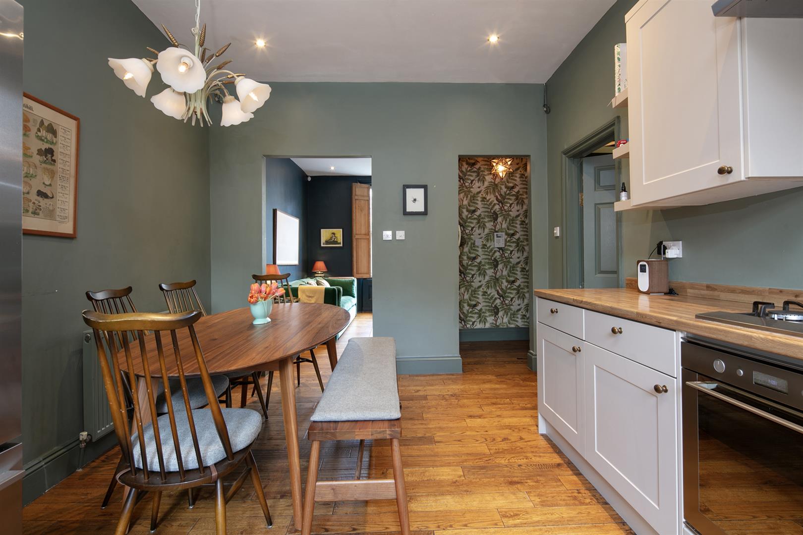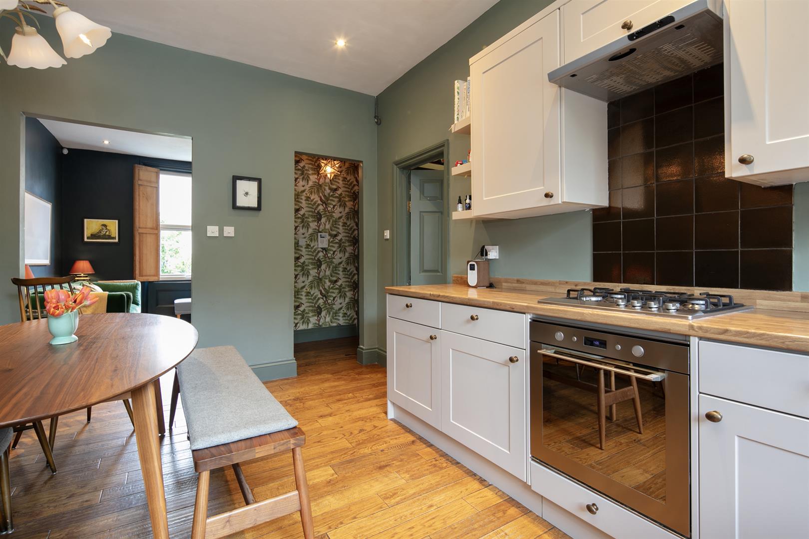 The building stands handsome and tall along the most peaceful end of Flaxman Road. It's a friendly, mature spot awash with similarly attractive period properties. Ascend a set of steps to the communal entrance. Your inner hall introduces fabulous Farrow and Ball tones - a theme in abundance throughout. The reception fronts the street, presented in 'Hague Blue'. Light gushes in through a large sash window with lovely wooden shutters. To the rear of this adjoins a large kitchen/diner with seating for the whole family. Country style cabinets are crowned with plenty of counter space and there's a full range of modern appliances. 'Green Smoke' on the architraves complements 'Cardroom Green' on the walls - it's all beautifully balanced.