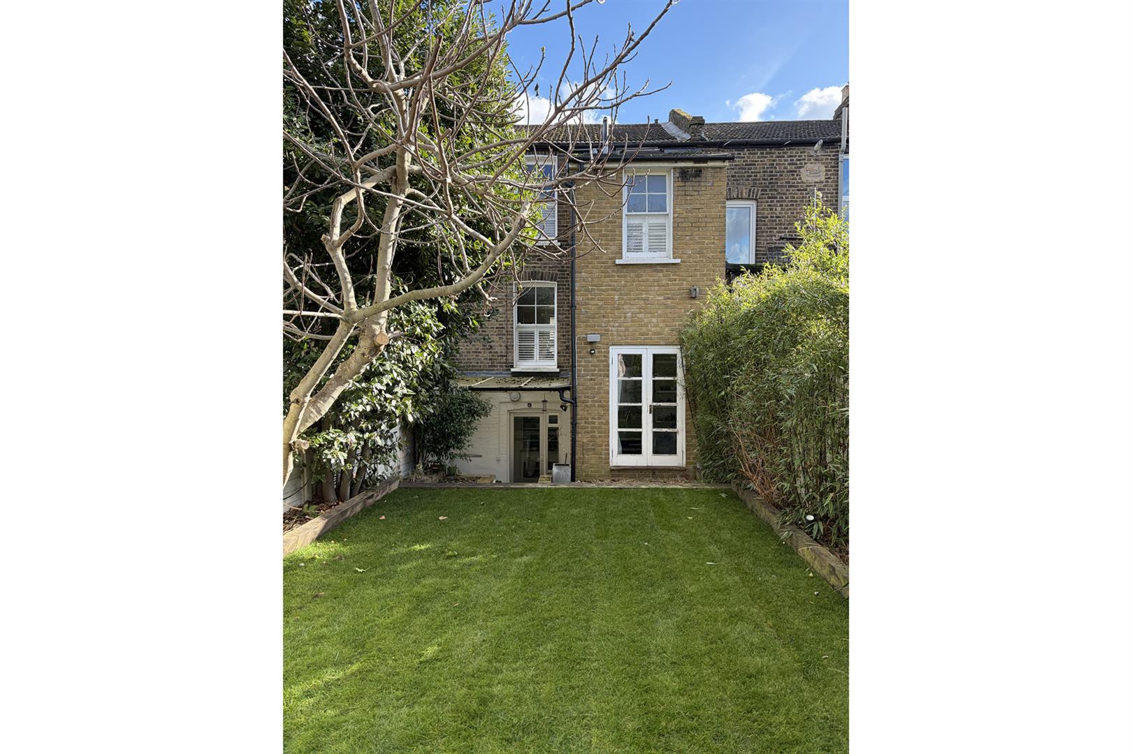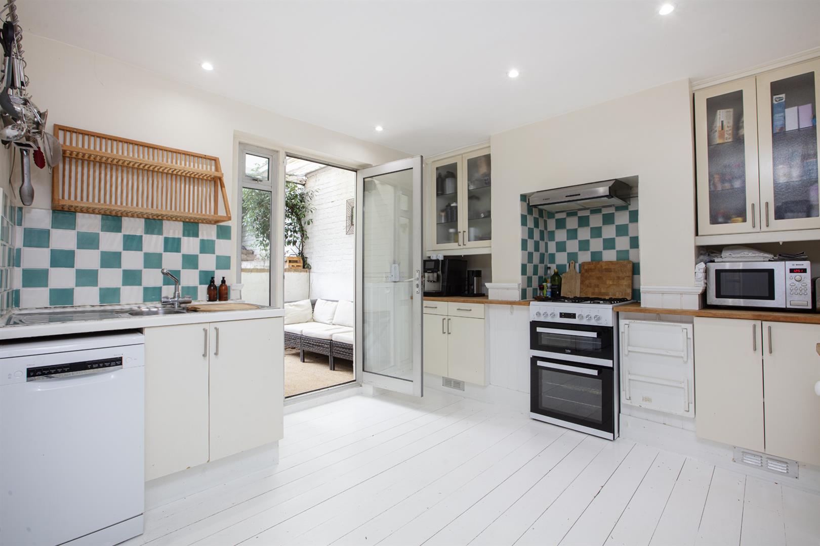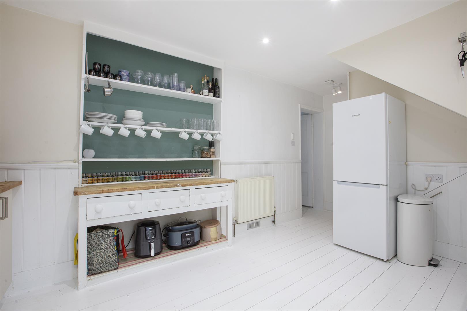 A half flight descent from the entrance hall reveals a lovely study (or guest single bedroom) where garden access is offered through French doors. Outside you enjoy a sizeable healthy lawn and rear patio. The lower ground floor hosts a large full width double bedroom with access to a long storage point (potential en suite perhaps?). This room can also be used as a formal dining room if required. Next to this is a semi-open plan kitchen/diner with white painted timber floors, country-style period dresser and access to a fab lower covered patio - the perfect spot for the morning cuppa no matter the weather!