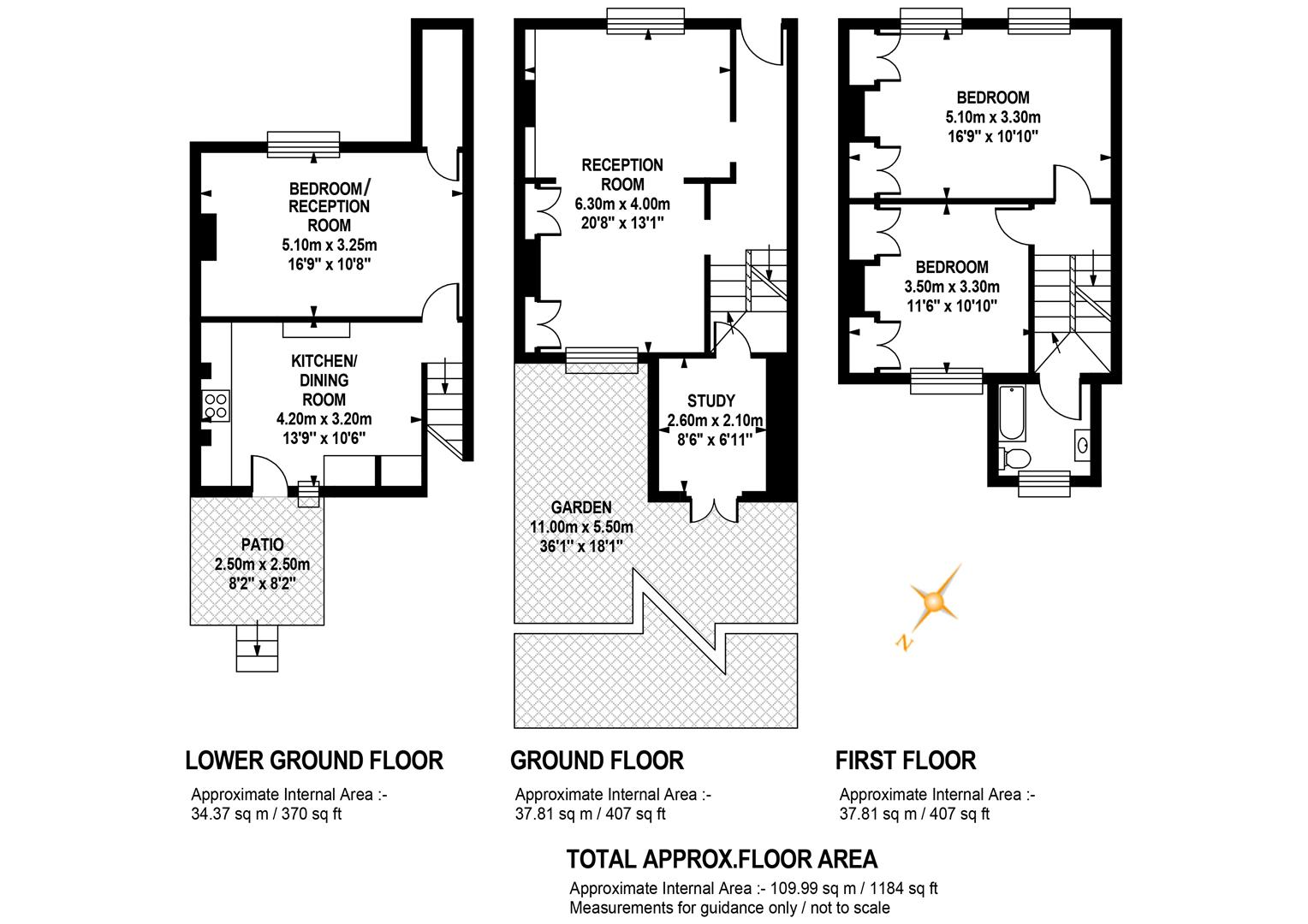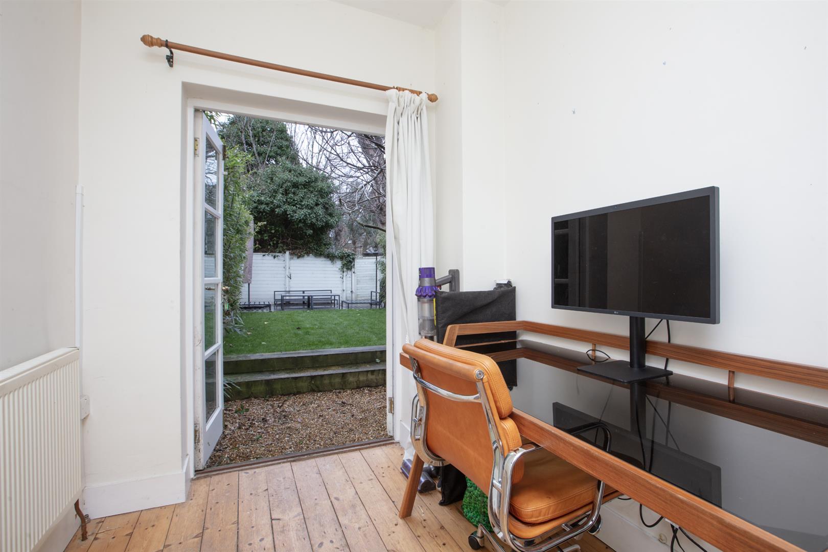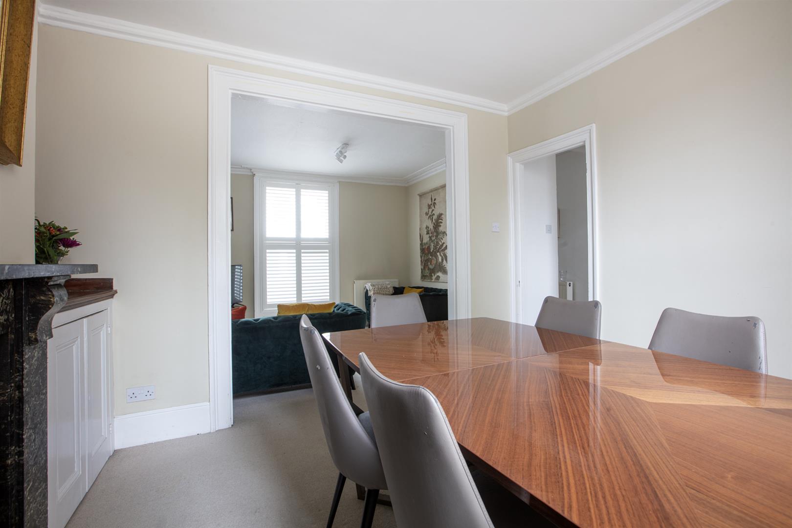 A half flight descent from the entrance hall reveals a lovely study (or guest single bedroom) where garden access is offered through French doors. Outside you enjoy a sizeable healthy lawn and rear patio. The lower ground floor hosts a large full width double bedroom with access to a long storage point (potential en suite perhaps?). This room can also be used as a formal dining room if required. Next to this is a semi-open plan kitchen/diner with white painted timber floors, country-style period dresser and access to a fab lower covered patio - the perfect spot for the morning cuppa no matter the weather!