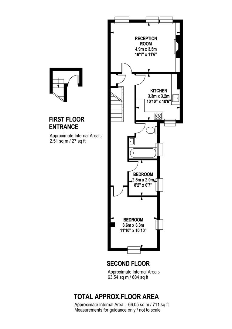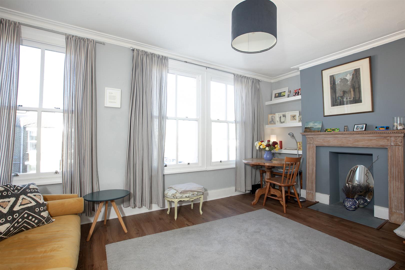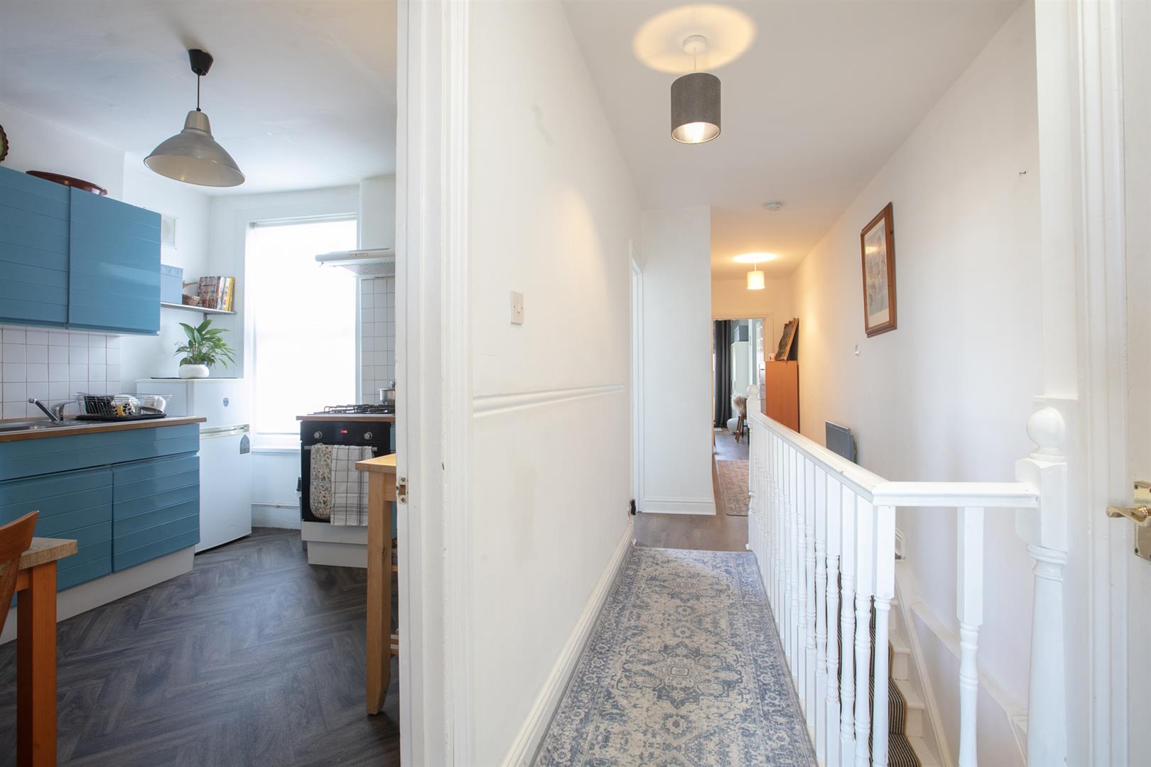 A shared hallway leads to the flat's first floor entrance. An inner carpeted stairwell with space for hanging coats leads upward to your lovely bright and spacious landing. The reception fronts the street into the full width of the building and enjoys three separate windows for light and airiness. There's plenty of lounging space and even room for formal dining. A handsome wooden feature mantel adds to the charm. The kitchen/diner comes next along the landing and boasts some lovely aqua blue cabinets and space for the dining table. A rear-facing bedroom keeps things bright and bold. The bathroom has a wood panelled bath, white suite and side aspect frosted window. The master bedroom is accessed to the rear of the landing and has a dual aspect and tonnes of space for the double bed. The single bedroom completes the tour.