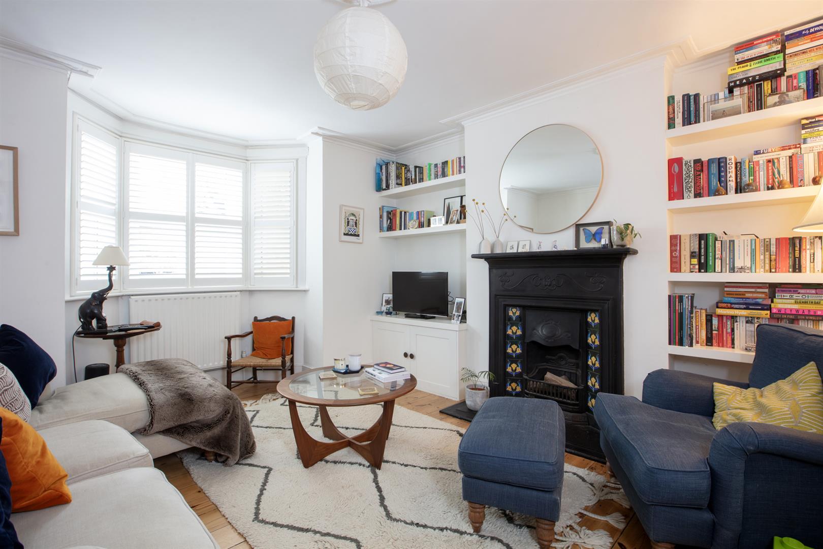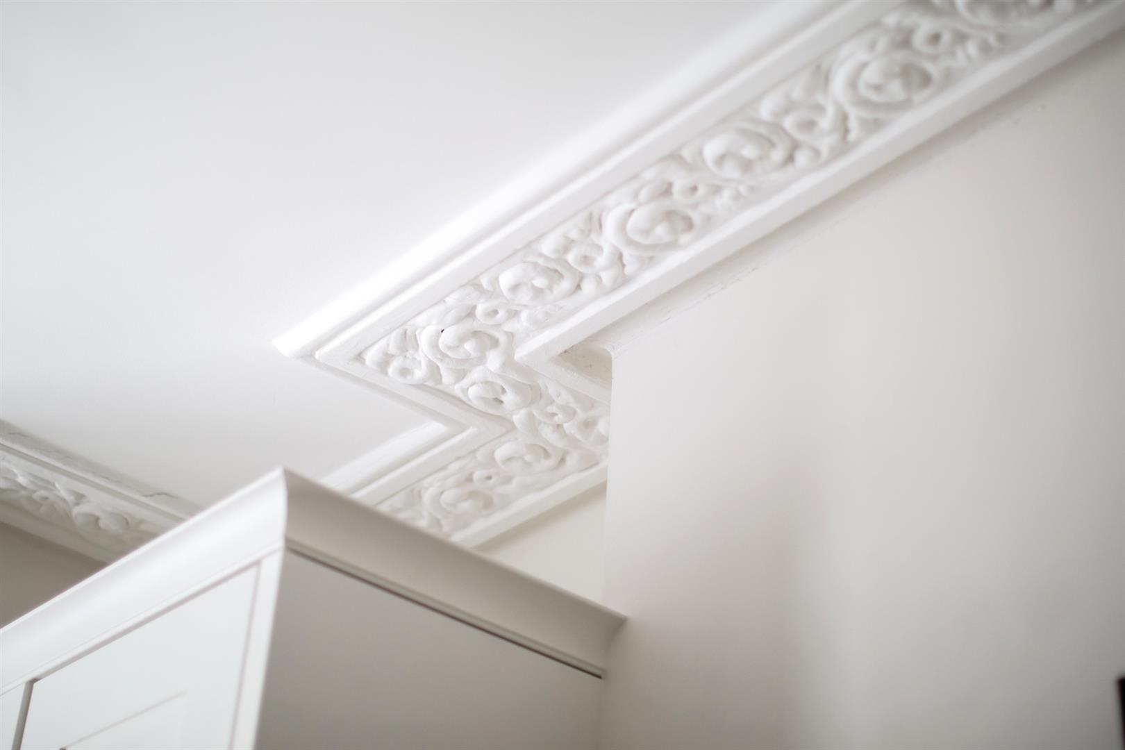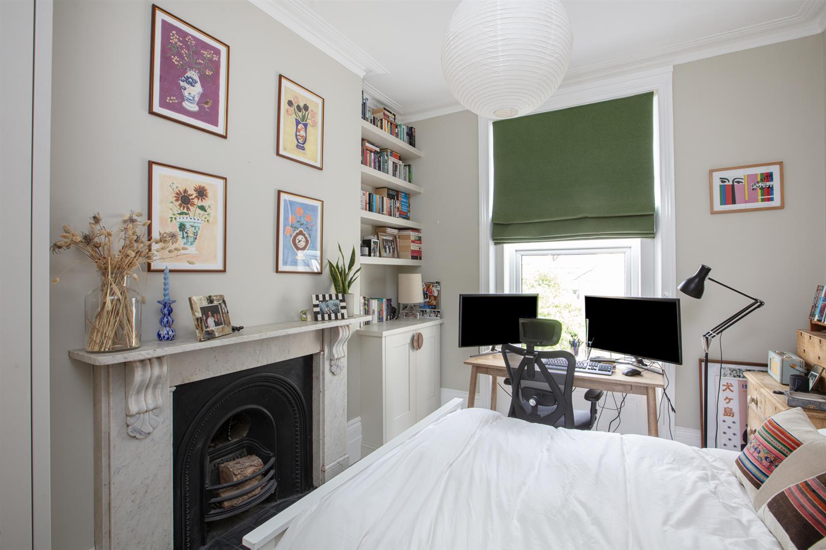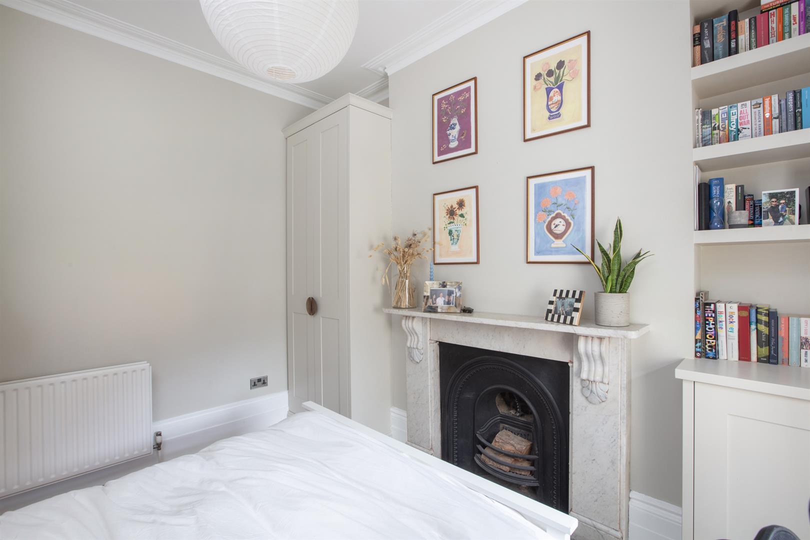 To the rear of the hall you find a handy laundry cupboard tucked under the stairs. There's a tiled recessed area beyond this - ripe for further storage and it sits opposite further garden access. The bathroom completes this level. Upward bound you find the first of your bedrooms - a sweet room with pretty garden views. Painted floorboards and neutral décor make the most of the space. Bedroom two is a nicely sized double with more garden views and bespoke storage either side of a wide feature fireplace with ornate mantel. Last but certainly not least comes a wonderful front-facing master bedroom with high ceilings, wide bay windows and some glorious original cornicing.