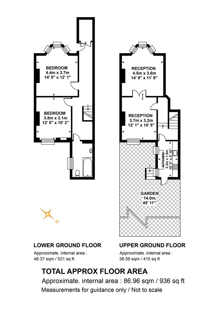 The flat is accessed through a private patio area, with space for understairs storage. Steps lead downward to your private door and into a long inner hallway. On entry there is a generous recessed storage area immediately to your left'. You find the first double bedroom on your right side with a front aspect bay window and plenty of slumber and storage space. The second bedroom is similarly generous and faces rear over the lower patio area. Upward to the first floor you find your kitchen which offers garden access. This is a generous and private space of over 14 metres. It holds so much potential! Back inside you complete the tour with a lovely double reception which boasts twin feature fireplaces, ornate original cornicing and a lovely ceiling rose.