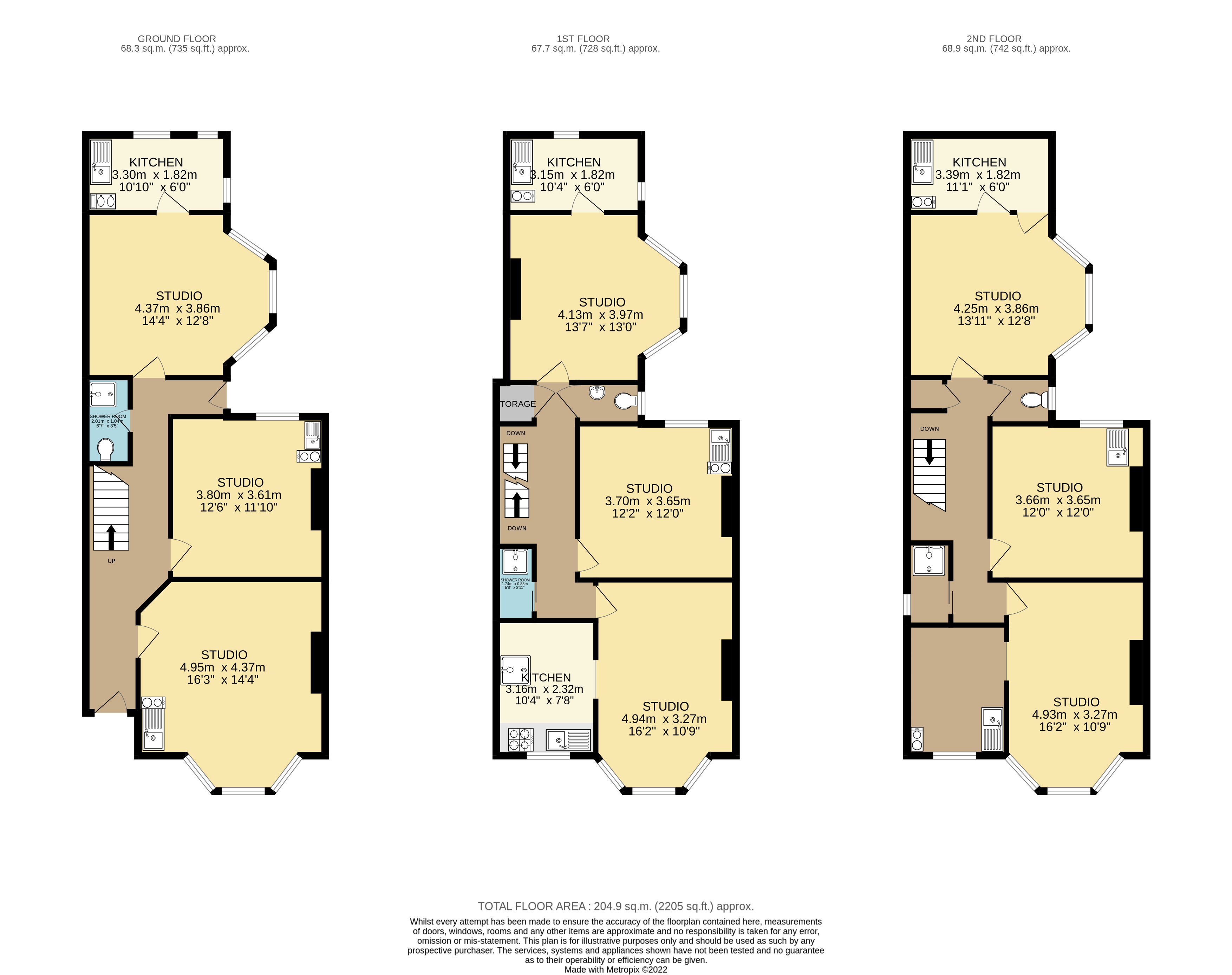 The property is accessed on the ground floor and is spaciously arranged over three stories, with each floor comprising of three self-contained studio flats. Five of the studio flats feature separate independent kitchens, whilst the remaining four contain kitchenettes. A WC / shower room concludes the ground floor, the property contains two additional shower rooms on the two further floors. This house offers the perfect opportunity to update and customise throughout with a versatile layout.