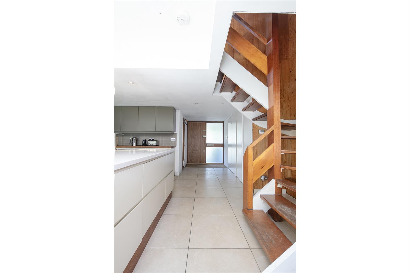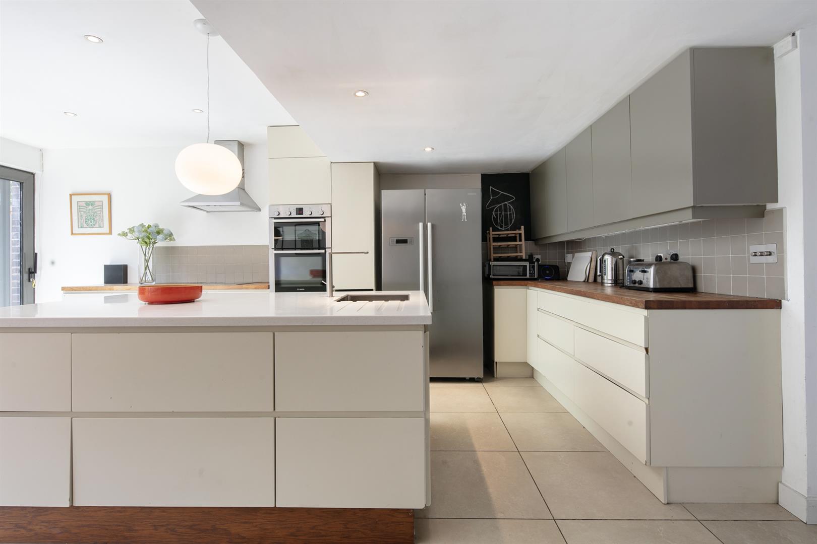 The communal grounds are pleasant and inviting. Guest parking is offered and a central green space with seating and mature flora invites a convivial vibe. The house is spaciously arranged over three floors with a private garden to both front and rear. A handy adjoining garage supplies abundant storage or indeed offers the potential for further living space should you wish. A nicely appointed hallway greets you with an adjoining loo on your left hand side. Two big storage cupboards will house all your coats and brollies. A stunning kitchen/breakfast room sits ahead of you - stretching over 17 feet wide and with a wall of sliding doors connecting to the garden. A seamless, sleek fitted kitchen has integrated units, a big central island and large floor tiles.