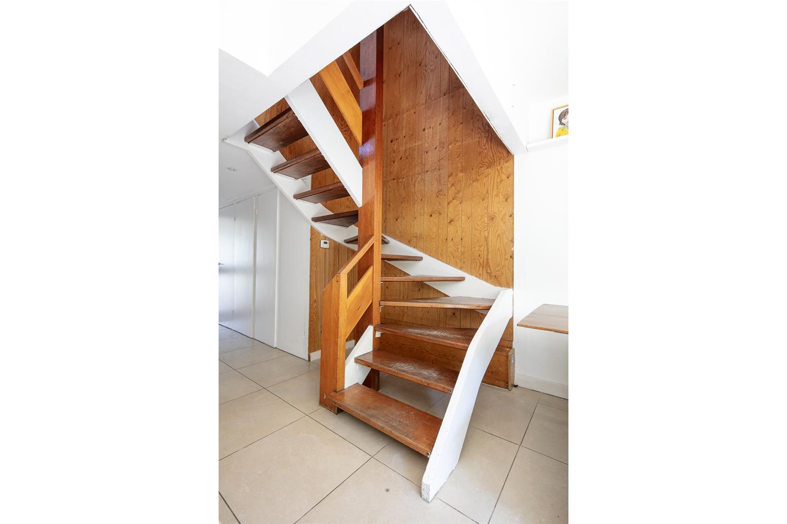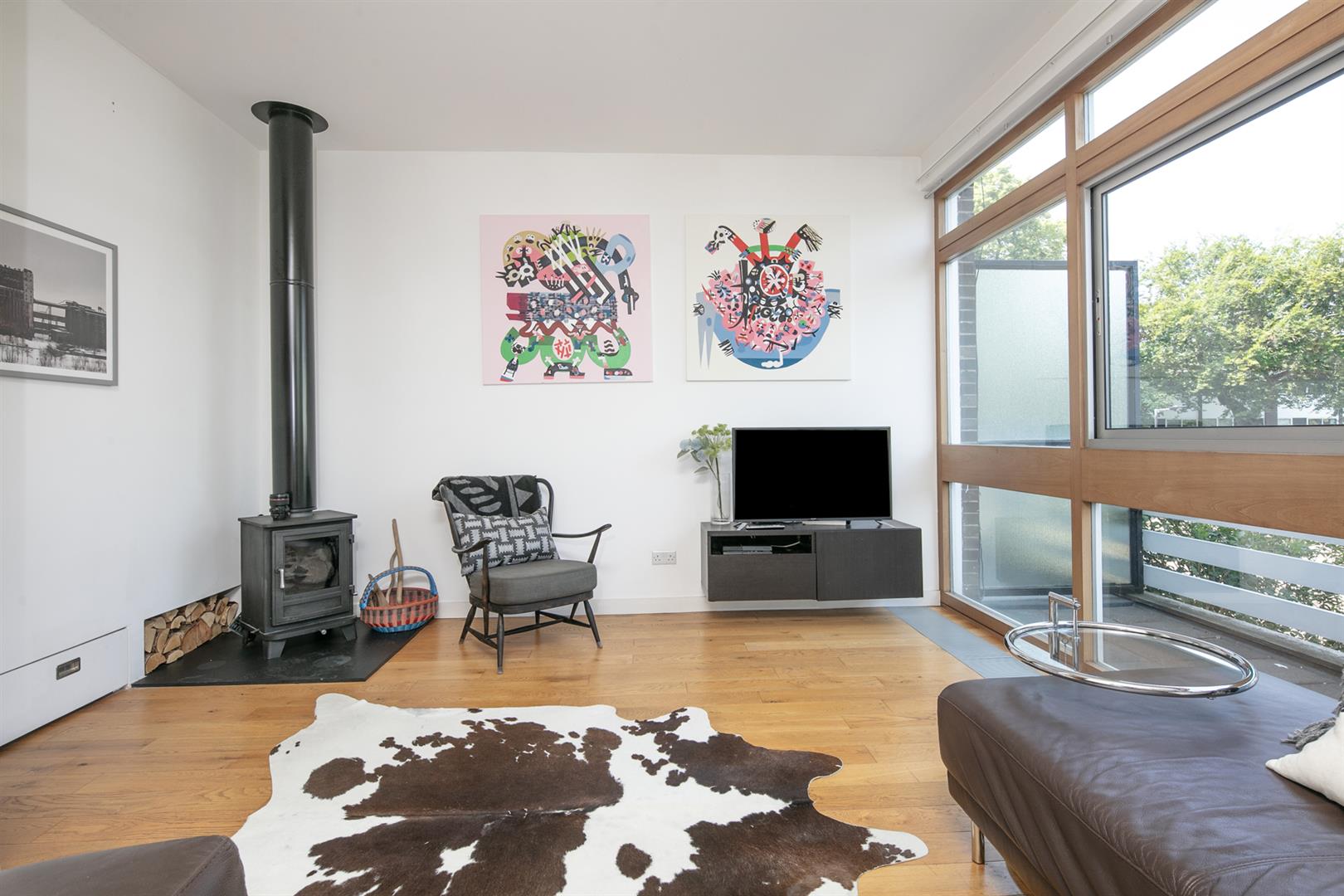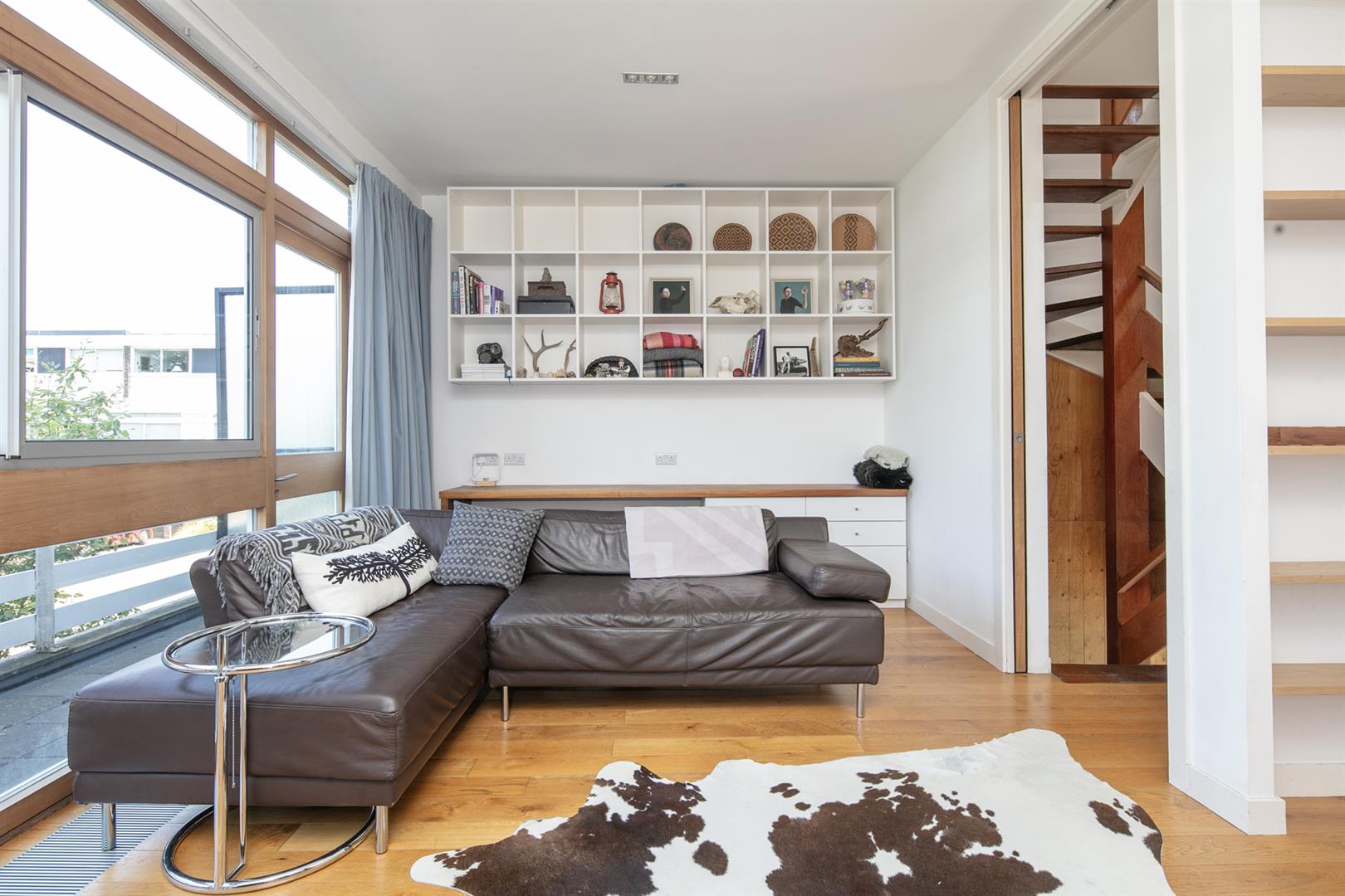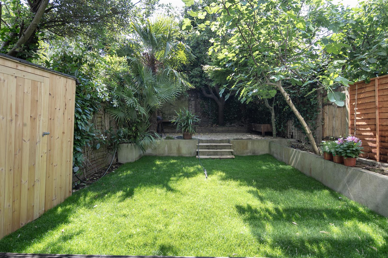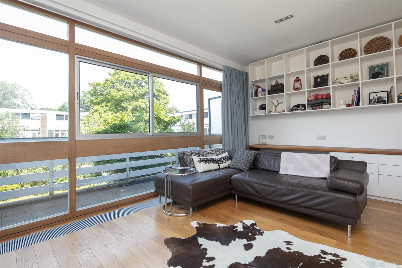 Take the original solid wooden staircase (with open risers) up to the first floor to find a reception room with front facing balcony overlooking the central, communal green. At the rear is a master bedroom with stylish en suite bathroom and huge full width windows. The second floor comprises three further bedrooms (two doubles, one single). Both doubles have fitted, recessed storage cupboards and there's an additional one on the landing. A second, family bathroom sits towards the rear with serene garden views.