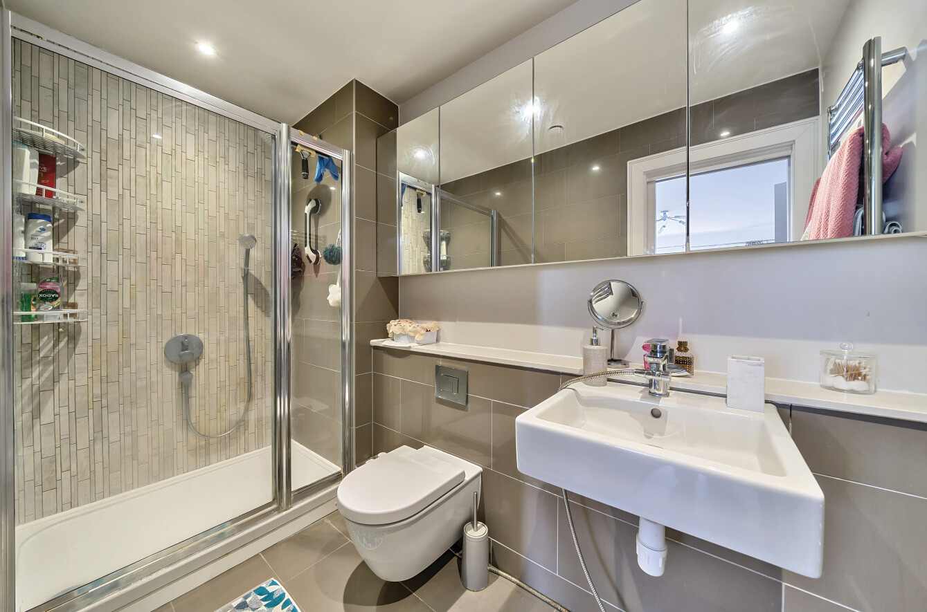 This superb third floor apartment offers an open plan living/dining room with a modern kitchen, has two double bedrooms both with built in storage cupboards and with the principle bedroom having the benefit of an en-suite shower room. A separate modern family bathroom and a large storage cupboard complete the apartment.
