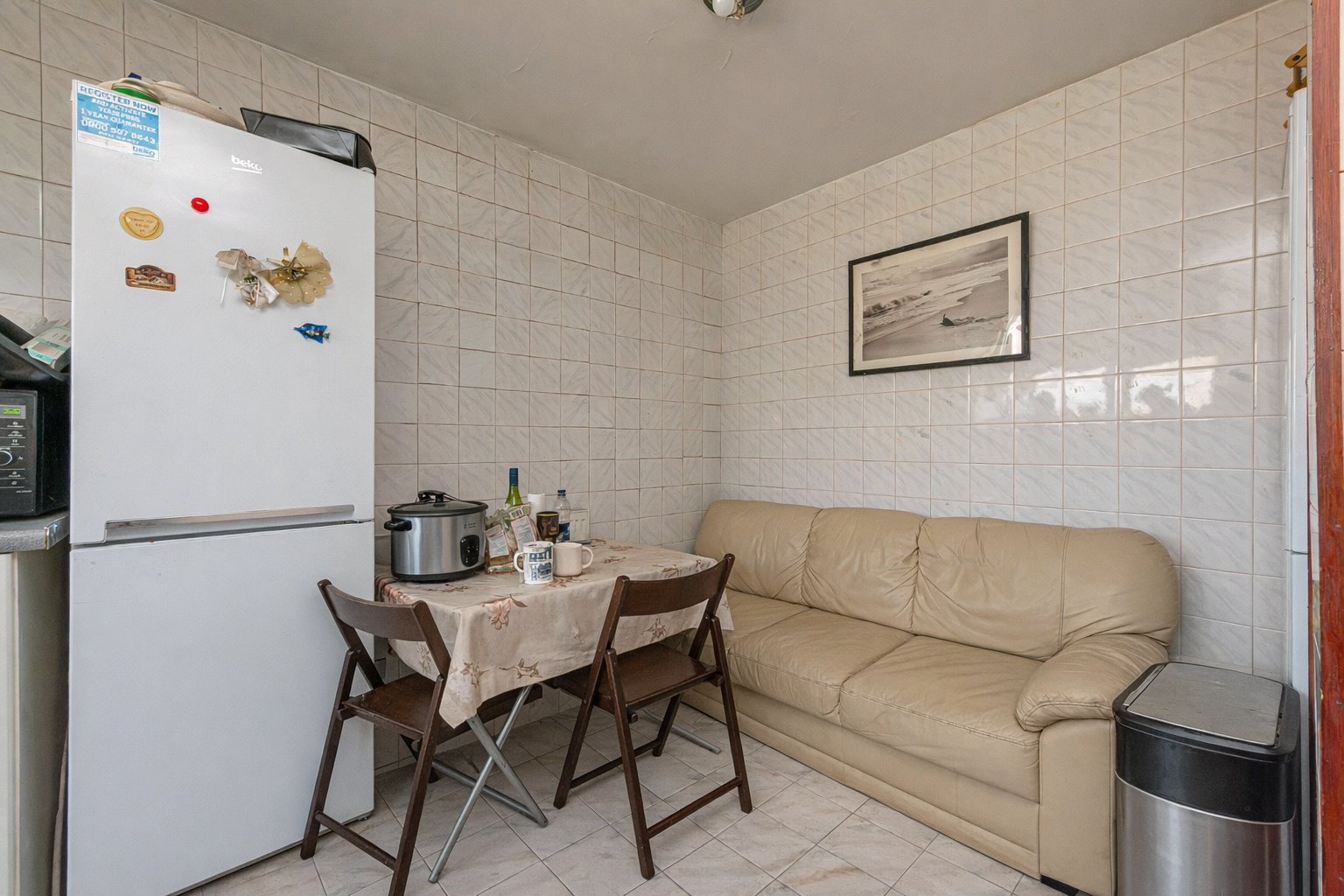 The property features a generous reception room filled with natural light, opening directly onto a private balcony with pleasant outlooks; an ideal spot for morning coffee or evening relaxation. A separate kitchen provides ample storage and workspace, while the layout offers a practical flow for everyday living.