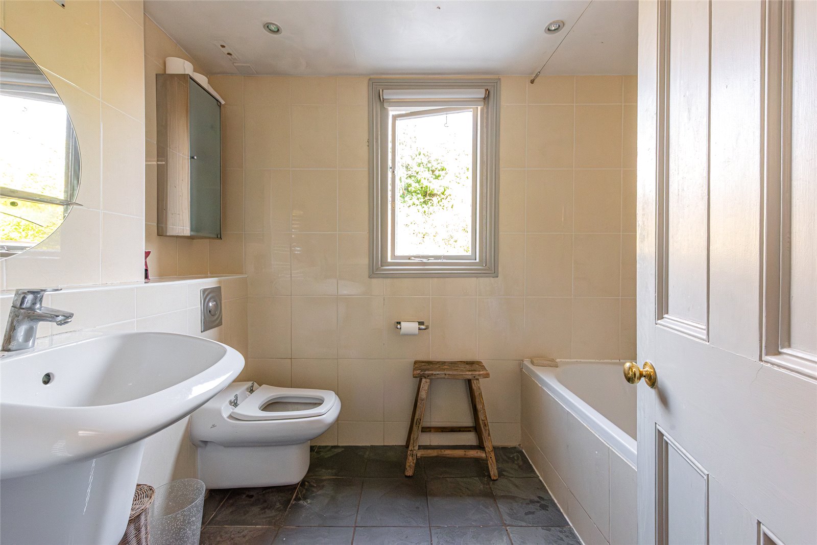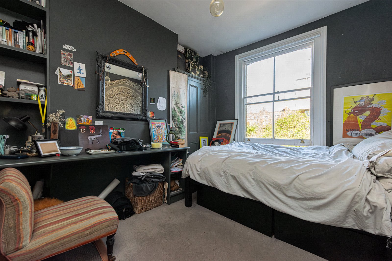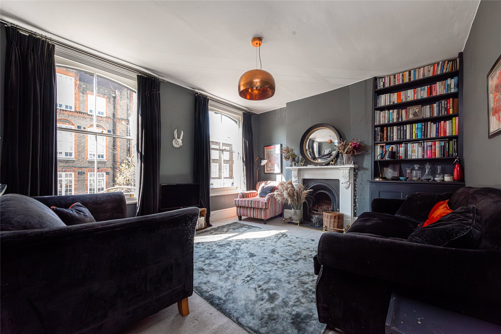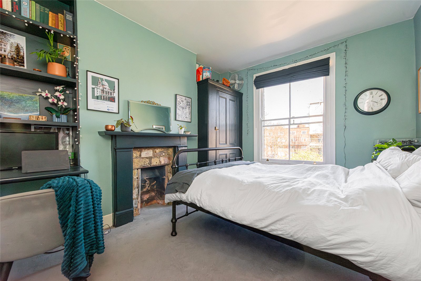 The bathroom is positioned on the half landing, while the upper floors provide well balanced and flexible accommodation. On the first floor, a superb reception room sits to the front, defined by its generous proportions and two large sash windows that flood the space with natural light. Centred around a feature fireplace with bespoke shelving, this is an exceptional room and works perfectly as a principal living space or family room.