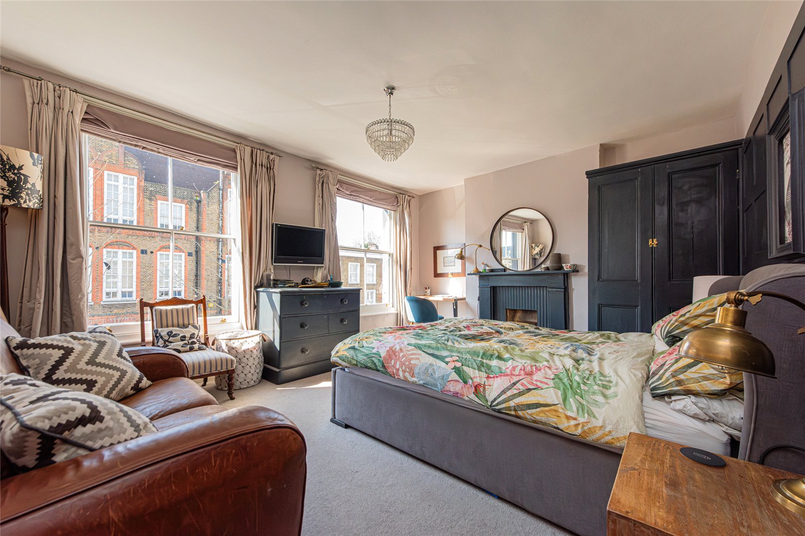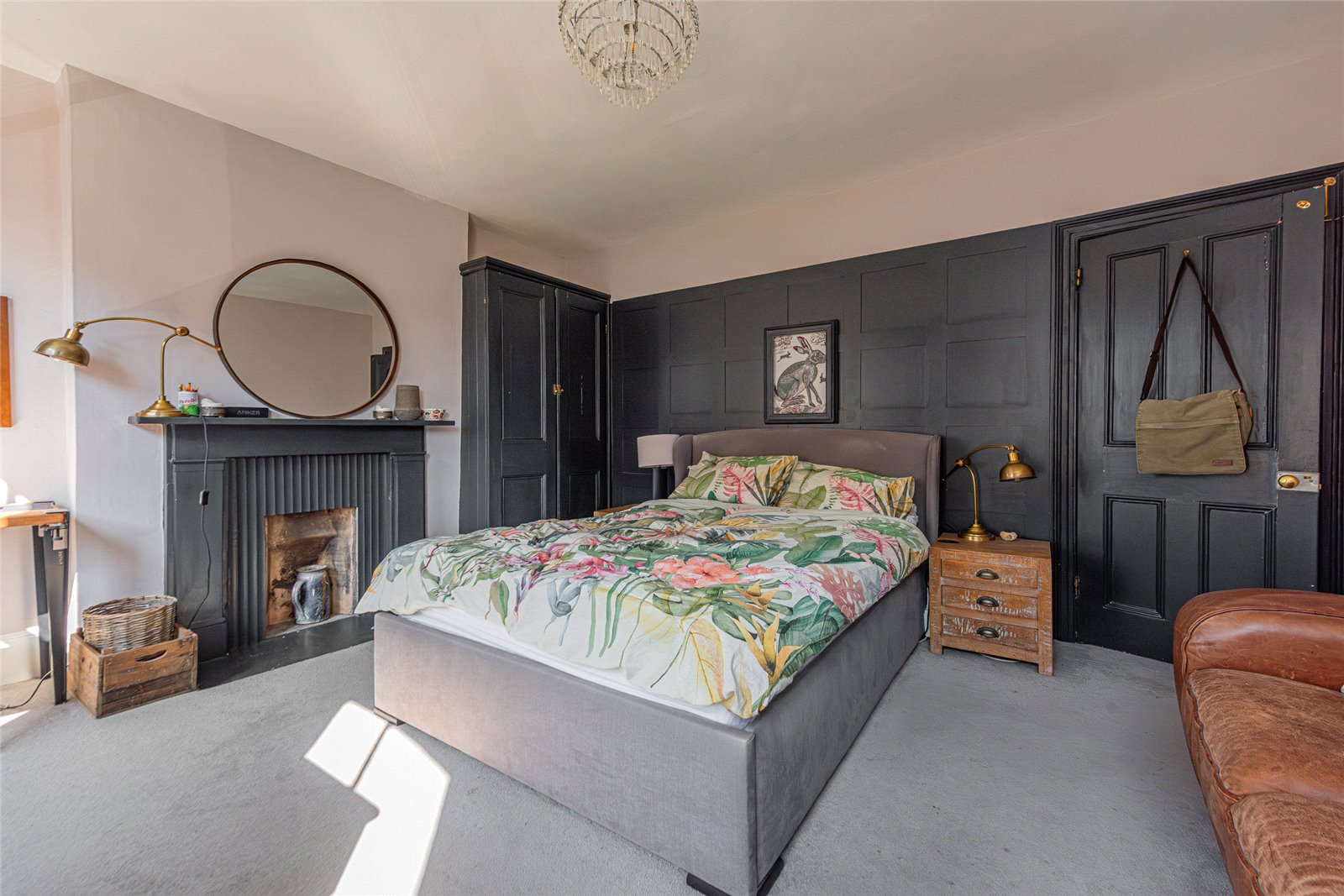 To the rear of this floor is a well-proportioned double bedroom. The second floor comprises the principal bedroom to the front, a particularly impressive room enhanced by wall panelling and a striking fireplace, along with a further bedroom to the rear.