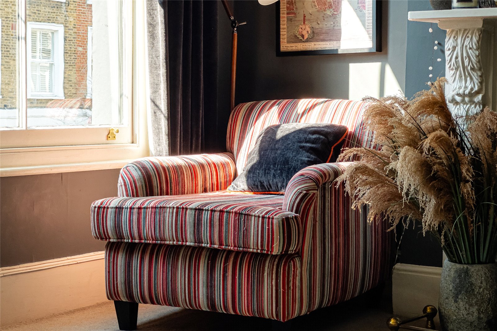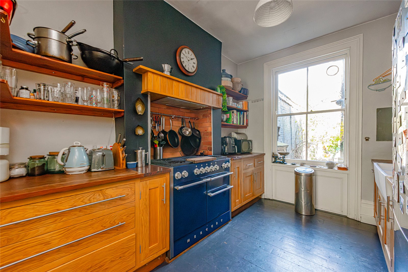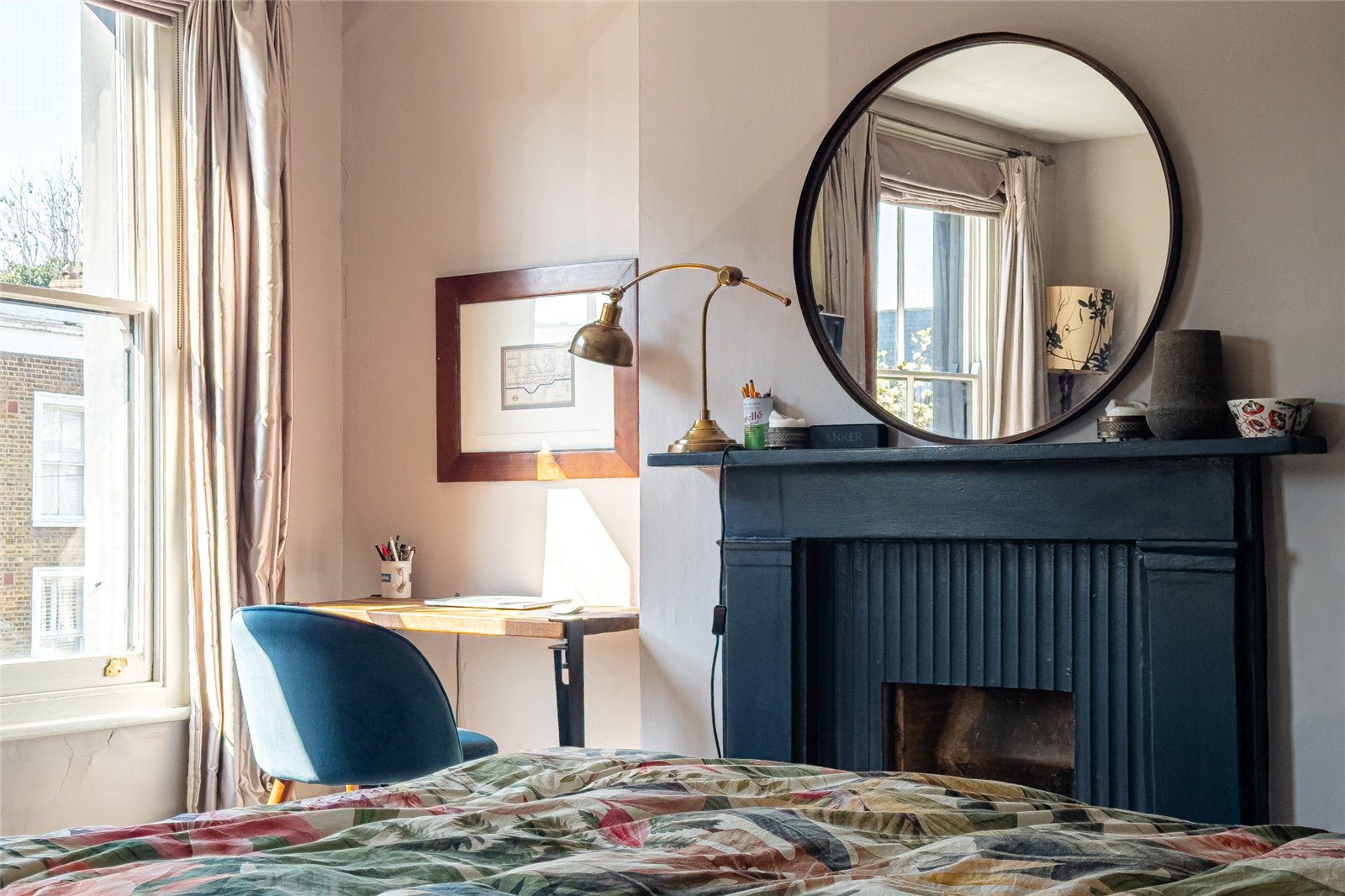 Extending to approximately 1,360 sq ft, the house retains a wealth of original features, including high ceilings, large sash windows with original shutters, exposed floorboards across the ground floor, classic column radiators and a number of striking decorative fireplaces. These are complemented by thoughtful additions such as wall panelling, creating a warm, characterful and visually rich interior throughout.