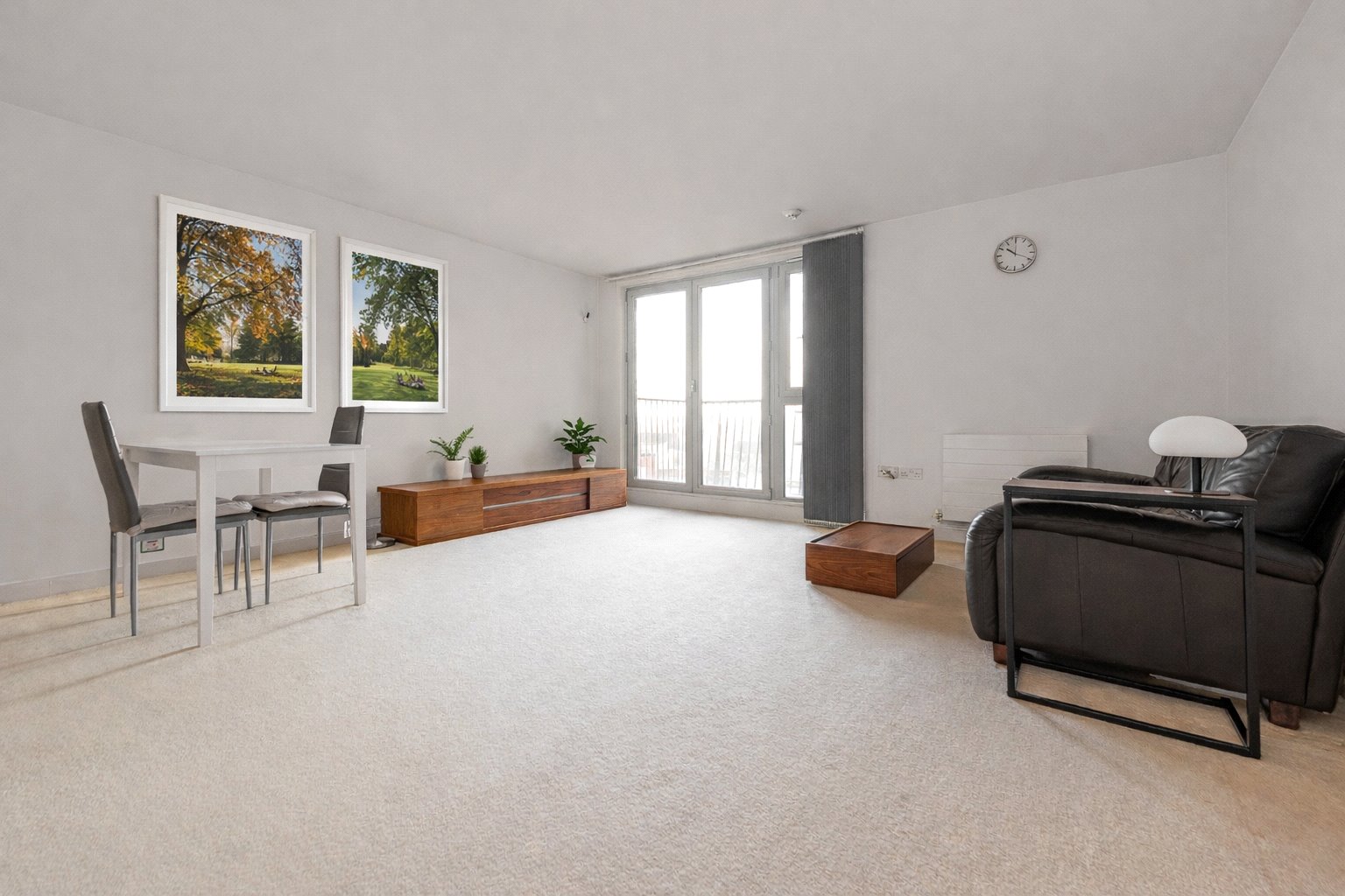 Flooded with natural light, the spacious reception room opens onto a private balcony with stunning views across London’s skyline, including Canary Wharf. The separate kitchen is well-proportioned, while both bedrooms are generous doubles, with the principal bedroom benefiting from an en-suite. A further modern bathroom completes the accommodation.