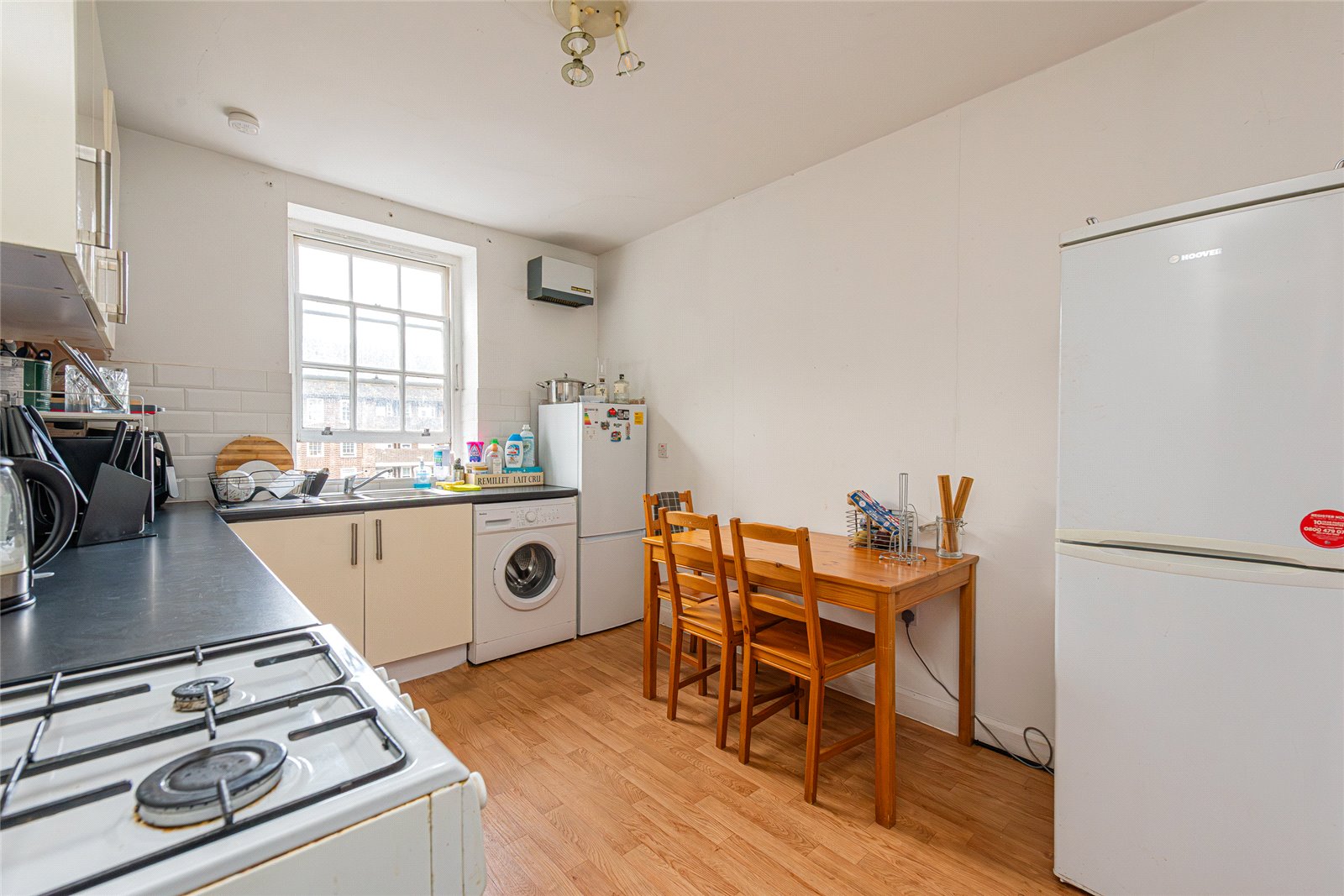 The apartment features a well-proportioned reception room, perfect for relaxing or entertaining, alongside a separate kitchen with ample storage and workspace. Three bedrooms provide flexible accommodation, suitable for families, sharers, or those seeking additional home office space. A family bathroom completes the layout.