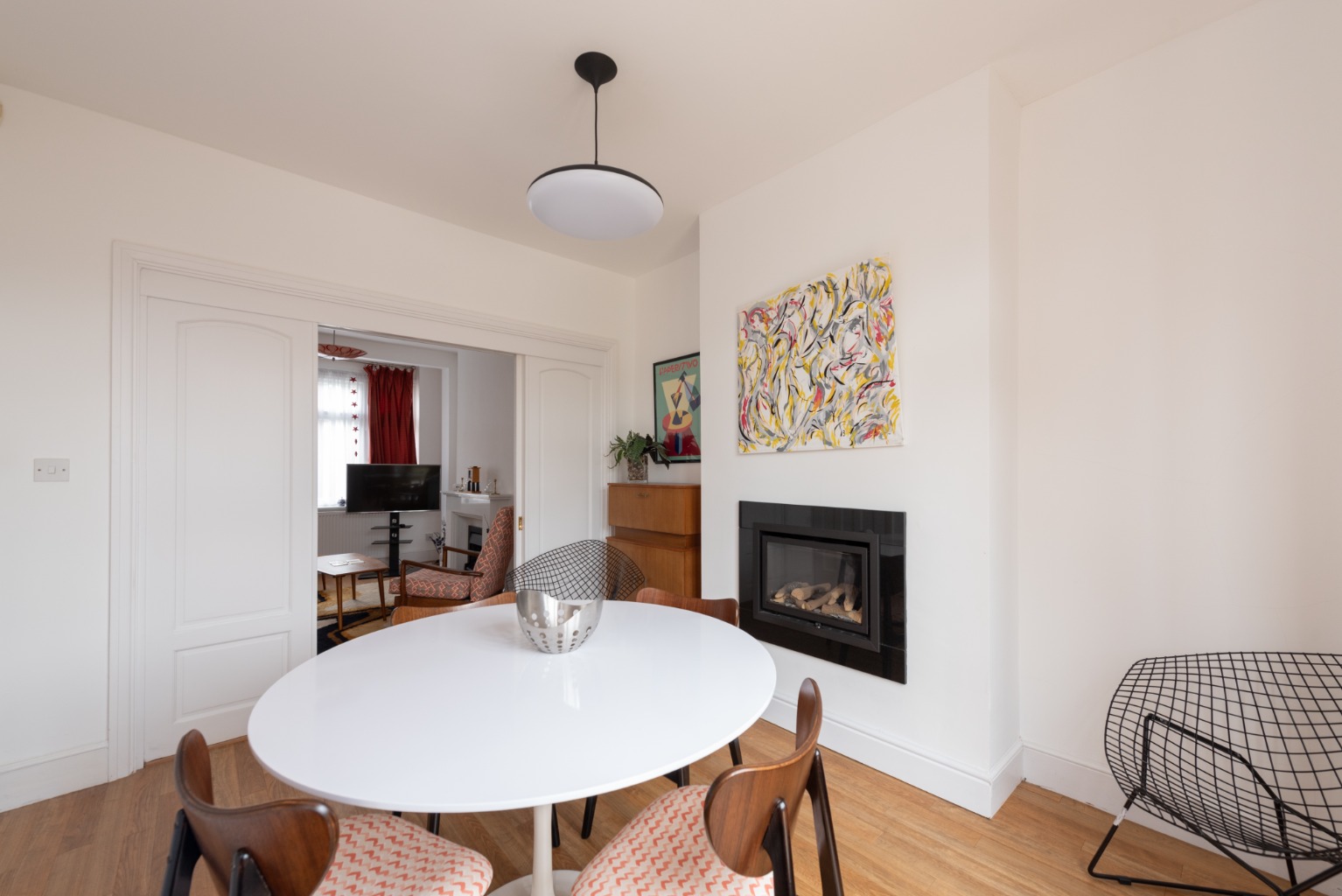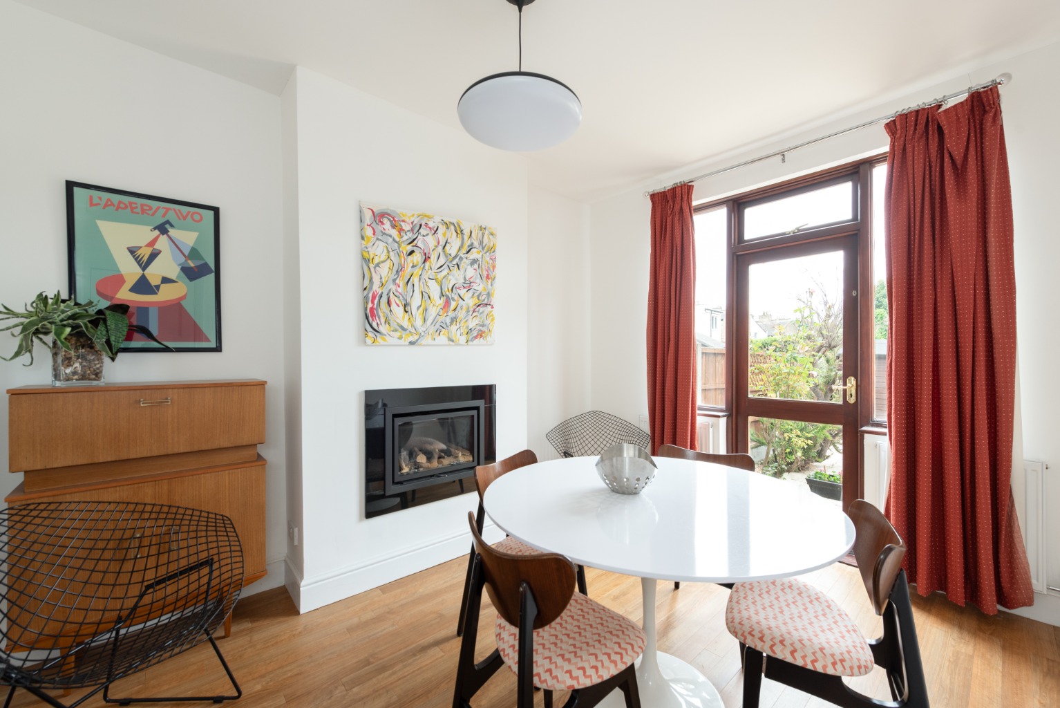 Double sliding doors lead to the second reception, allowing the flexibility to have two separate spaces or to open up both rooms to create a fabulous entertaining space. There´s a modern inset fireplace and a glazed door leading to the rear garden.