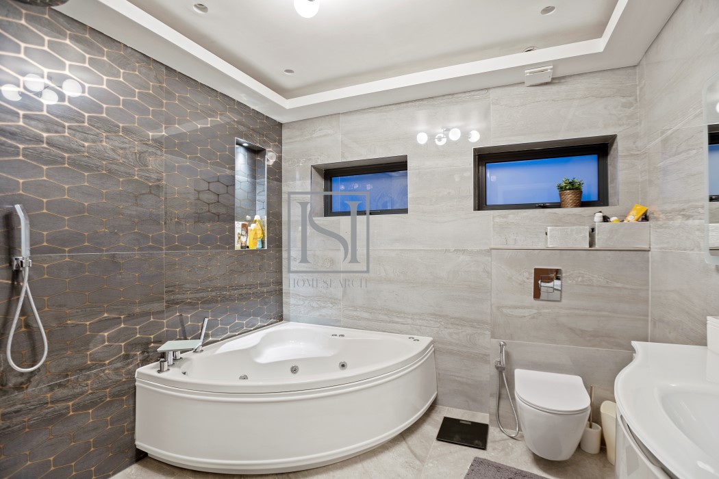 Ascending onto the oak staircase with strip lighting, you are greeted with 5 double bedrooms, all with built in wardorbes and ensuite bathrooms. The rear-facing main bedroom offers garden views and features a fully-tiled ensuite bathroom with a Jacuzzi bath and wet shower, providing a luxurious retreat within the home.