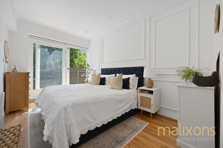 Nestled in the sought-after Furzedown area, this immaculate ground floor flat offers a perfect blend of contemporary living and convenience. The property features a generously sized living room, two double bedrooms, two bathrooms, and a modern kitchen. Both bedrooms have patio doors that lead directly onto the private garden, providing easy access to outdoor space.
