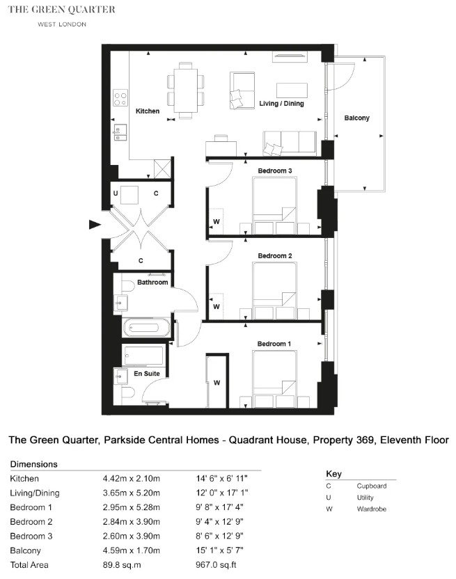 3 Bedroom Luxury Apartment The Green Quarter Quadrant House