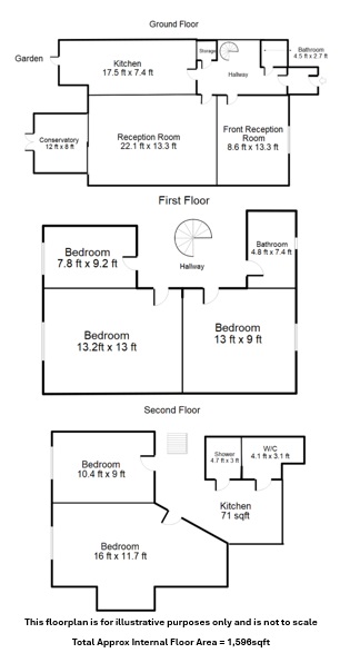 The ground floor boasts two reception rooms, with the rear reception extending to an impressive 21ft by 13ft, leading seamlessly into a bright conservatory that overlooks the garden. A fully fitted kitchen provides direct access to a private rear garden complete with a shed and side access. This floor also benefits from a modern bathroom, adding extra convenience.