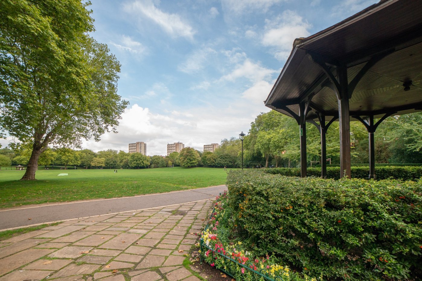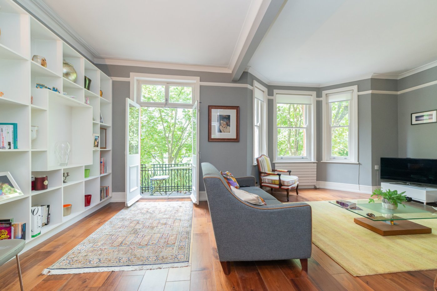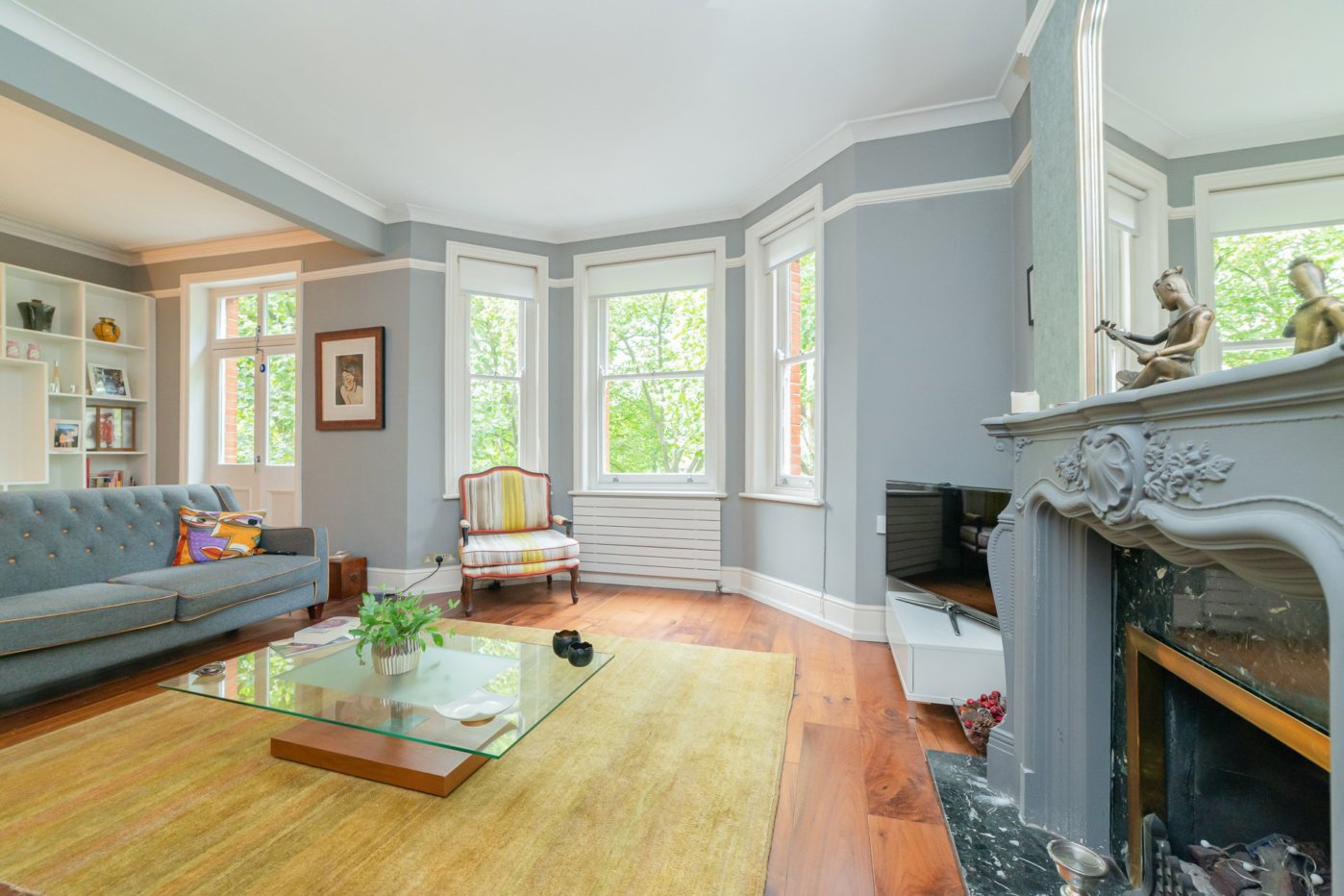 A stunning two bedroomed apartment on the second floor of this desirable mansion block with delightful views onto Paddington Recreation Ground.