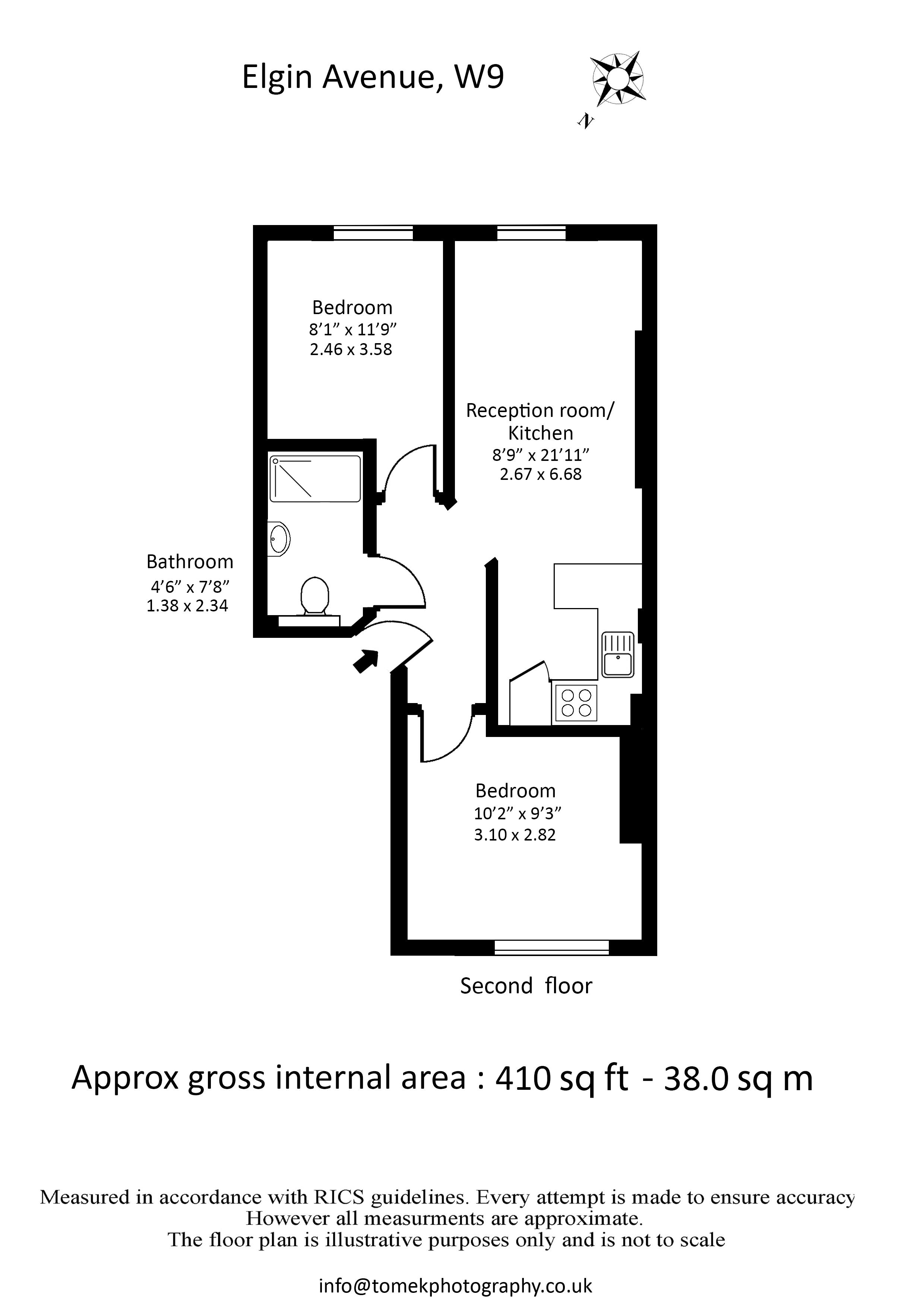 A bright and well-arranged two-bedroom second-floor flat, approximately 465 sq ft, ideally positioned close to local ame...