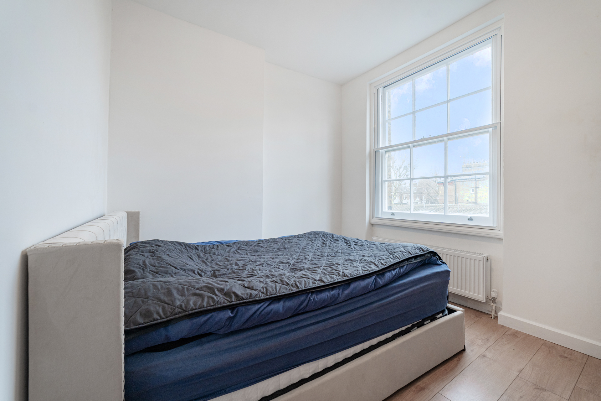 The accommodation comprises two well-proportioned double bedrooms, a brand-new contemporary kitchen complete with fully integrated appliances, and a stylish modern bathroom featuring a walk-in shower. The flat further benefits from enhanced thermal and acoustic insulation due to new secondary glazing and energy-efficient boiler. Excellent natural light flow into the flat creating a bright and welcoming living environment.