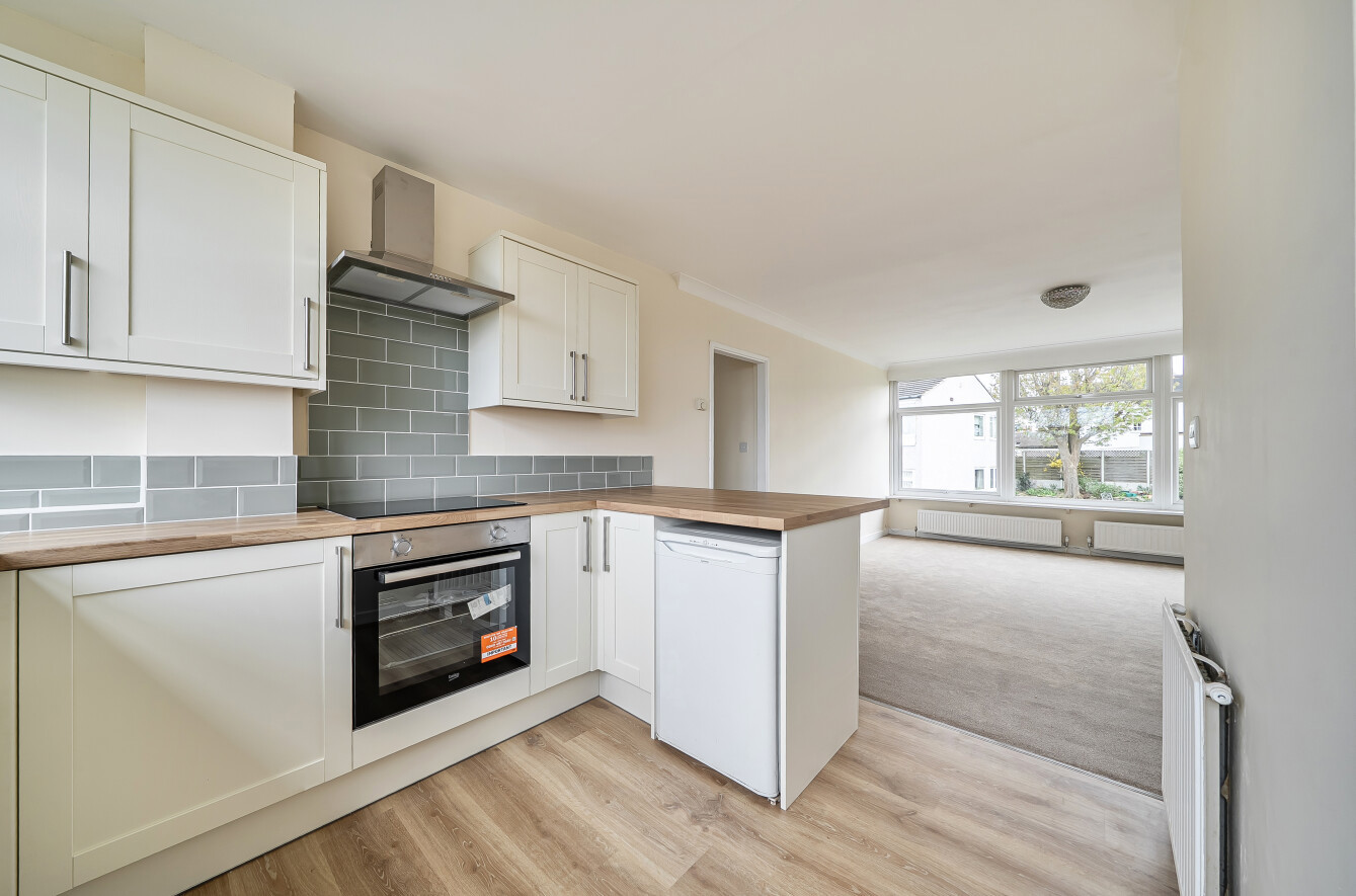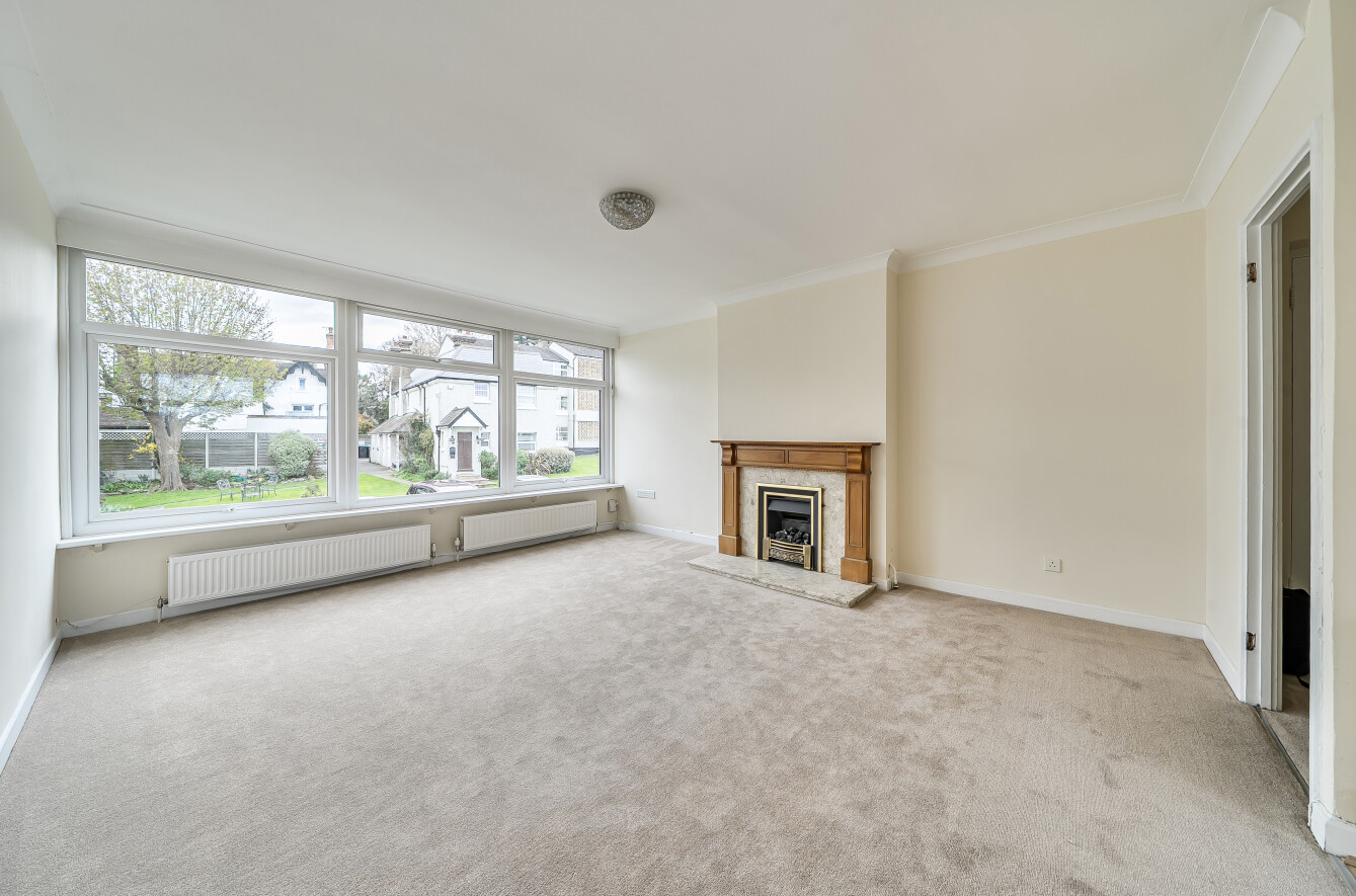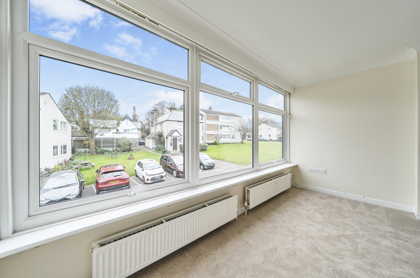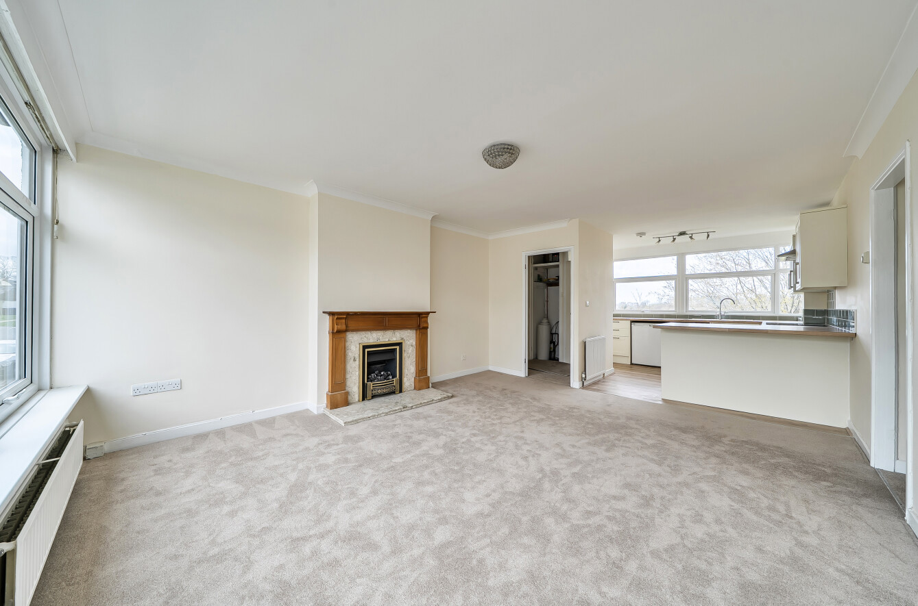 Living/Dining Room: A spacious (212 sq ft), light and bright room to the front of the property with large picture window overlooking the communal grounds. There is a gas fire as a focal point and space here for comfy seating as well as a dining table and chairs.