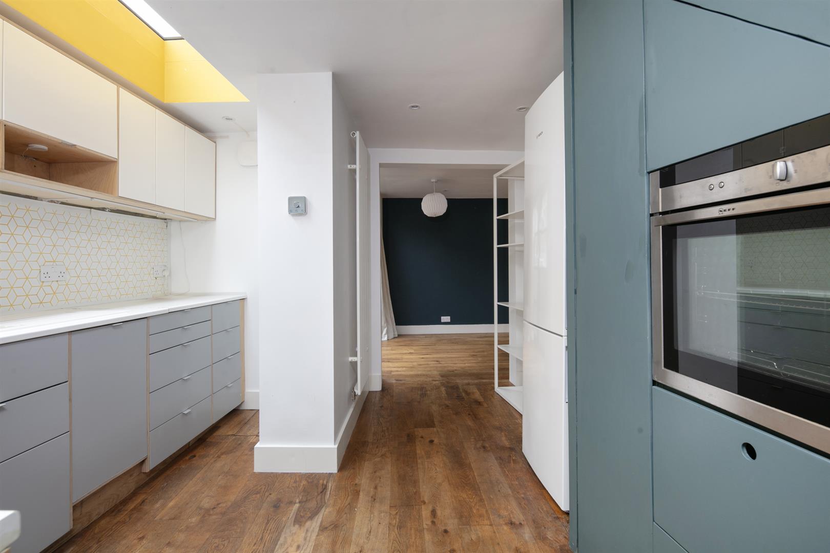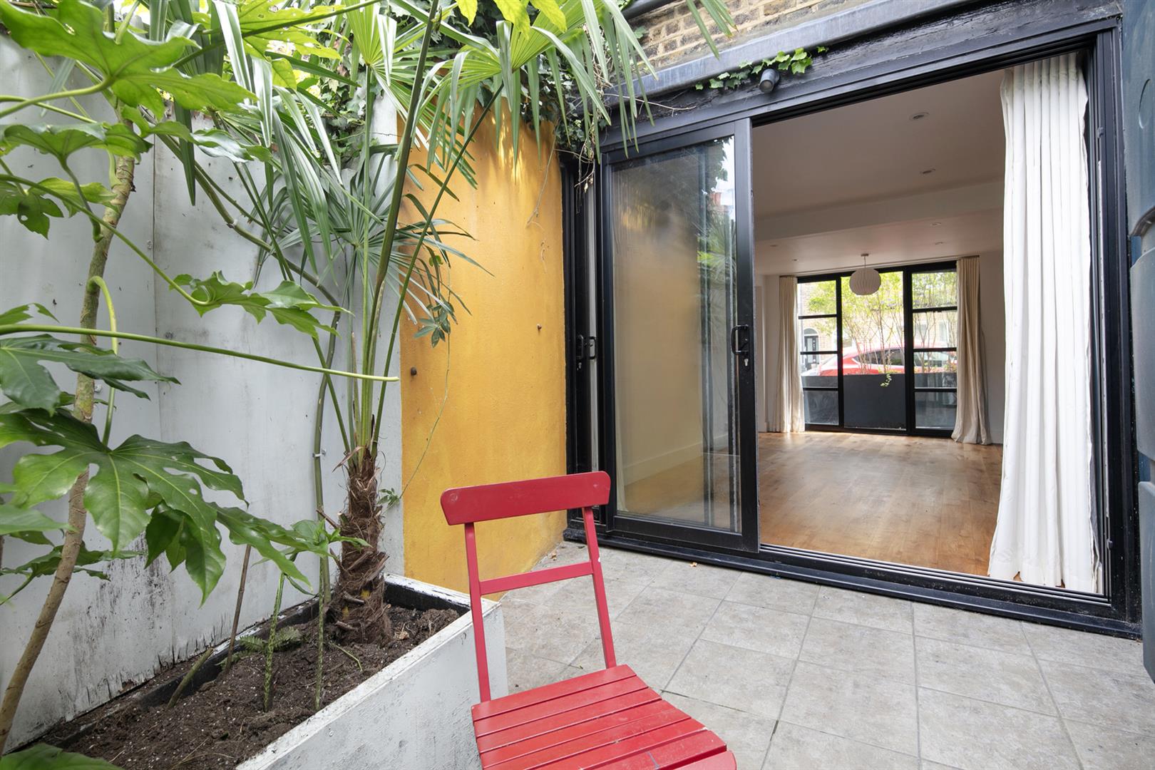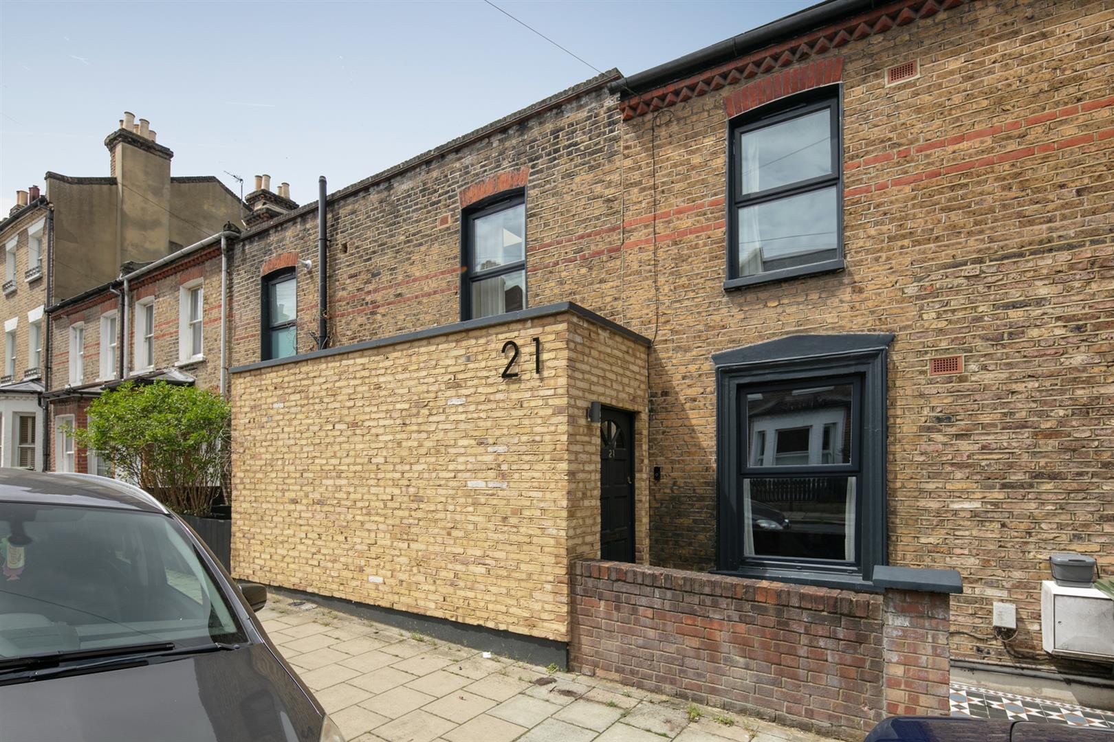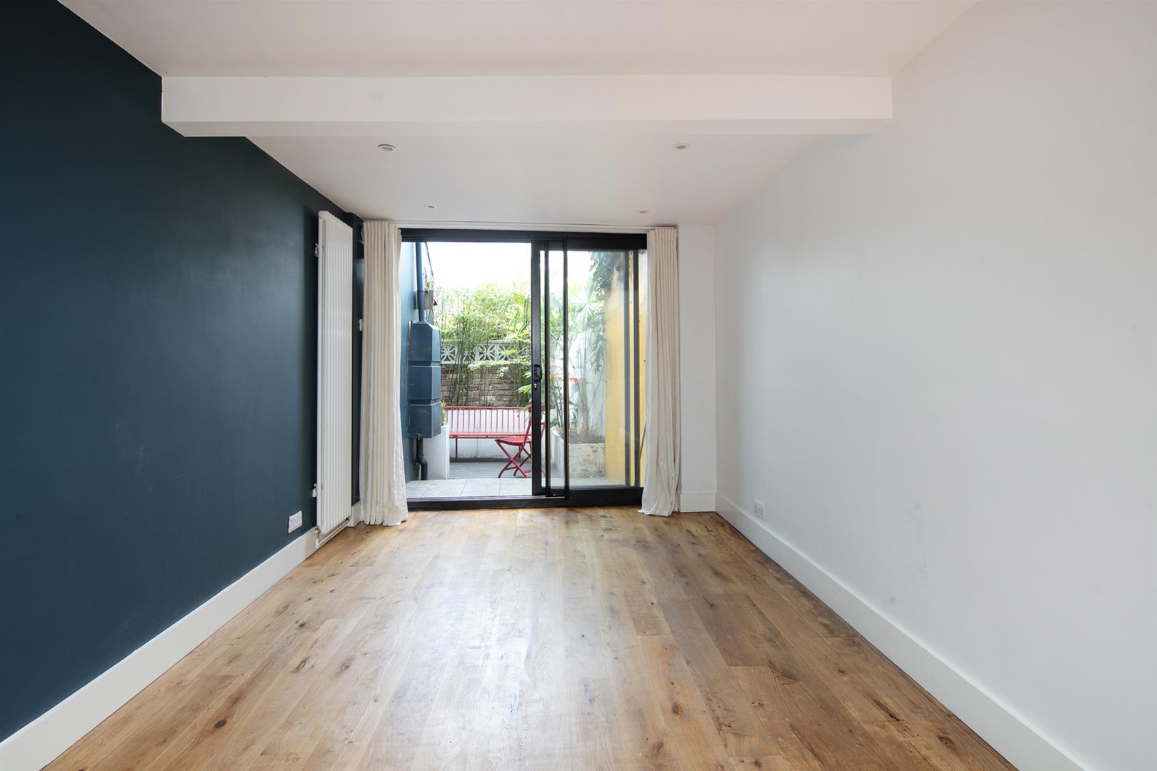 A handsome exterior with London stock brickwork greets you. An inner porch with modern oblong wooden panneling leads inward to your open plan kitchen. This enjoys a flood of light from a large skylight. The cabinets and tiling are tasteful and modern. A large dual aspect reception room adjoins to the right with access to two separate patios. Completing the ground floor is a double bedroom which sits the far side of the entrance hall. Upward bound you find a bright, spacious landing with front aspect sash window and shelving. Two futher double bedrooms sit off the landing, as does a super slick bathroom with funky matt black fixtures, half bath and dishy tiling. The wc has been kept separate to aid morning traffic.