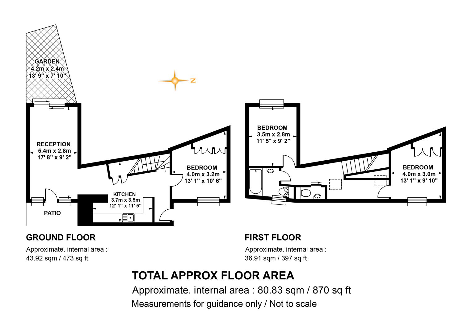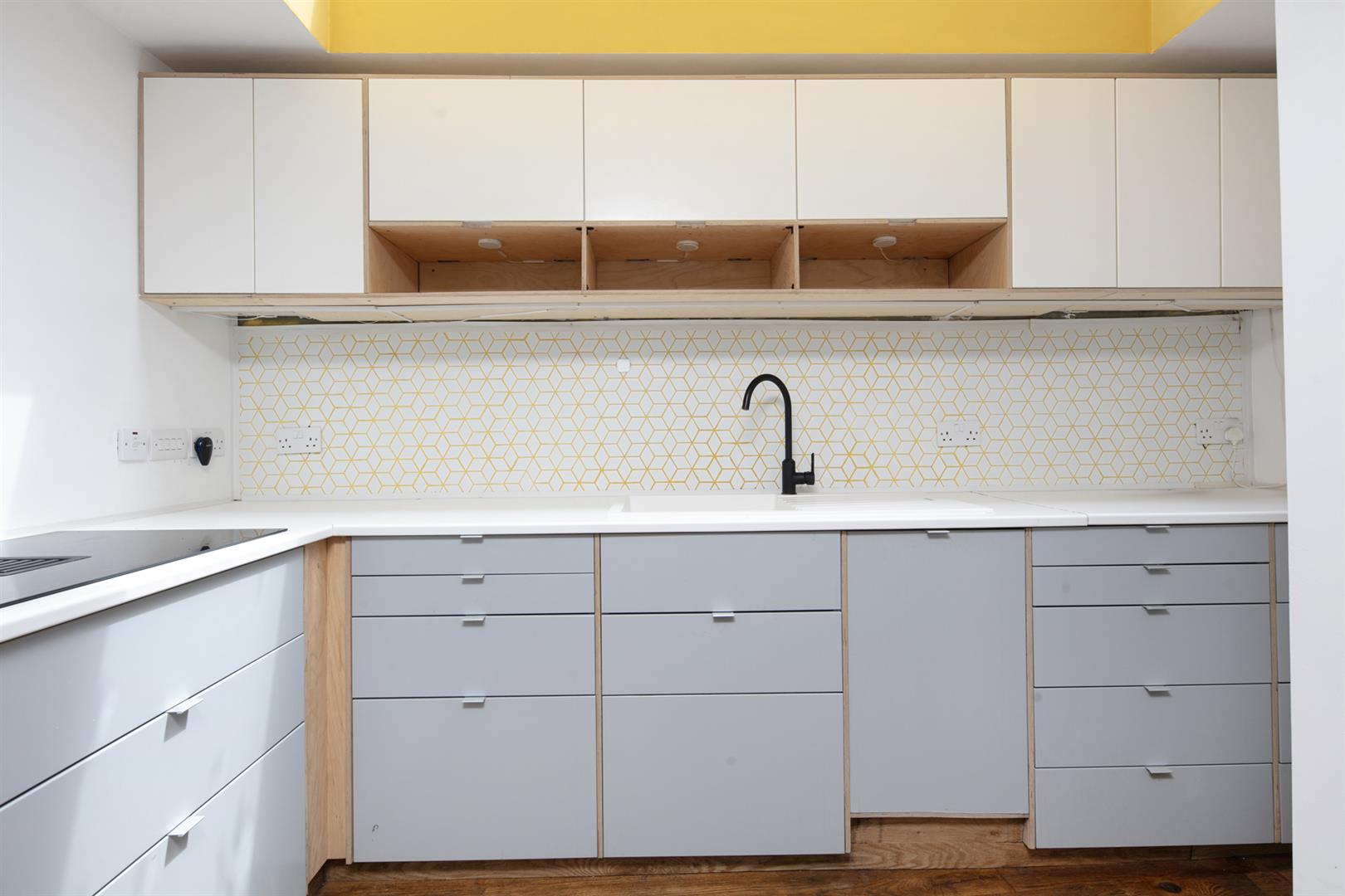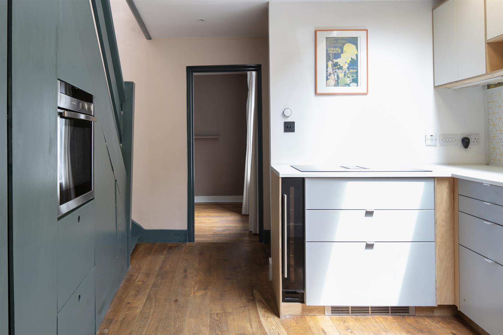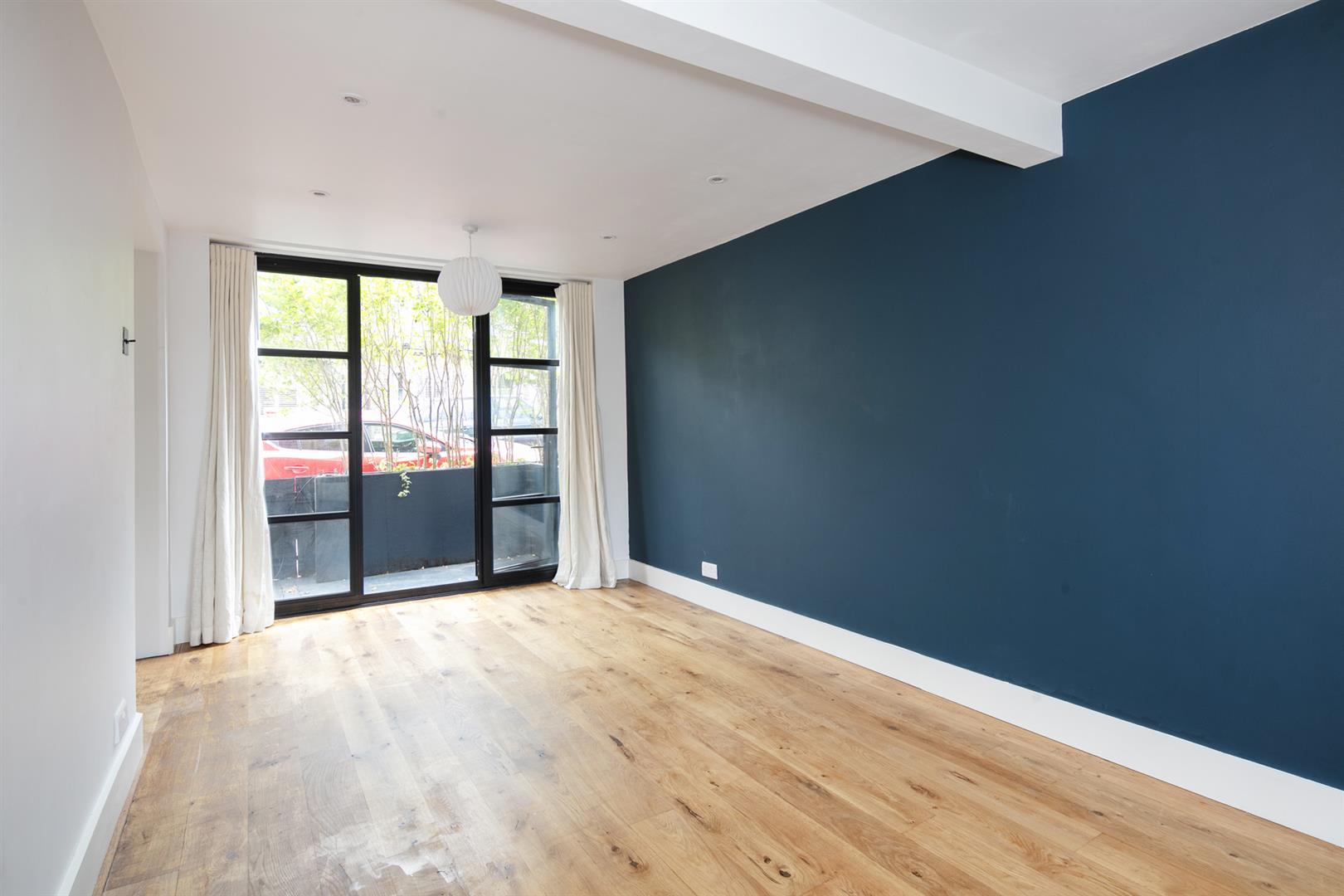 A handsome exterior with London stock brickwork greets you. An inner porch with modern oblong wooden panneling leads inward to your open plan kitchen. This enjoys a flood of light from a large skylight. The cabinets and tiling are tasteful and modern. A large dual aspect reception room adjoins to the right with access to two separate patios. Completing the ground floor is a double bedroom which sits the far side of the entrance hall. Upward bound you find a bright, spacious landing with front aspect sash window and shelving. Two futher double bedrooms sit off the landing, as does a super slick bathroom with funky matt black fixtures, half bath and dishy tiling. The wc has been kept separate to aid morning traffic.