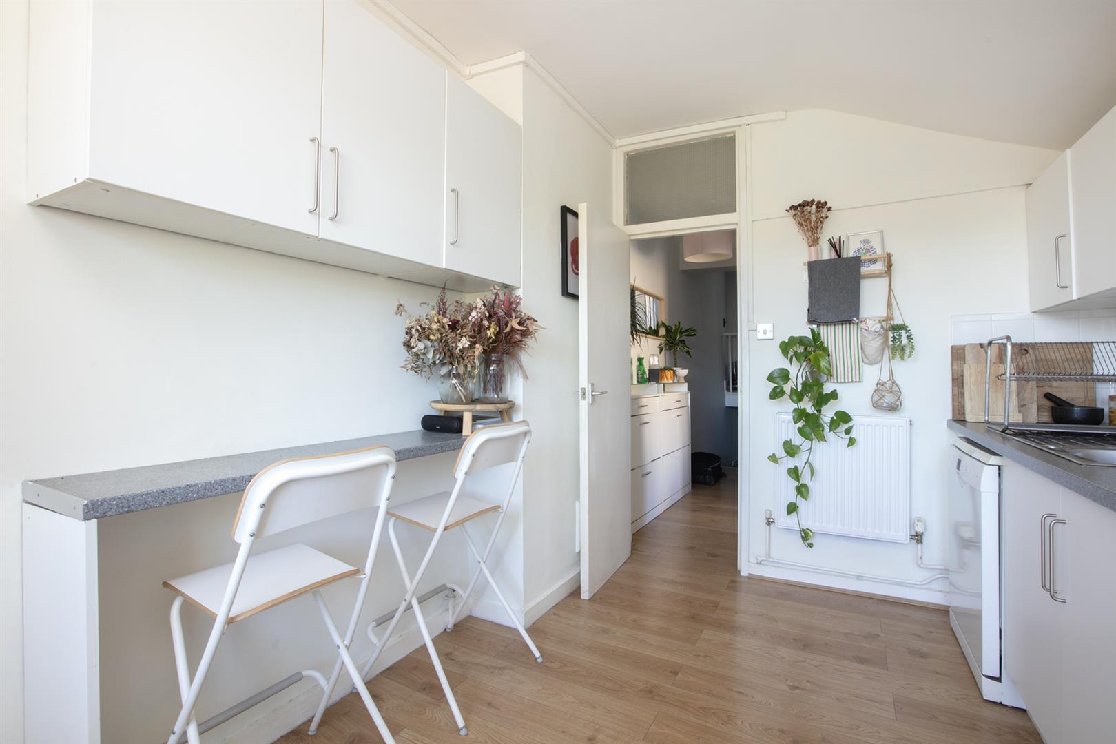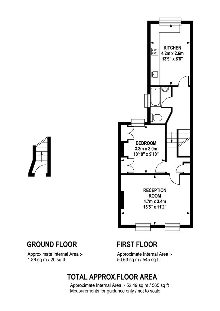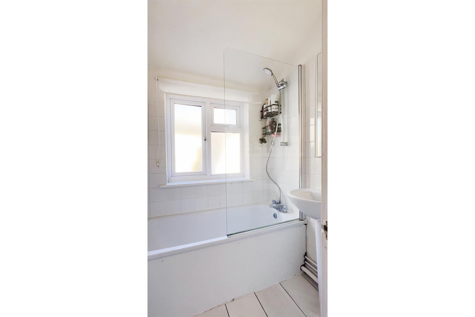 A shared front garden with handsome black railings leads inward through a communal entrance. The flat is accessed on the ground floor where you're invited up a private staircase to the landing. The kitchen/diner sits to the rear and supplies plenty of cabinet and counter space, a four ring hob, cooker and breakfast bar. A neat bathroom sits next to this with a side aspect frosted casement window and white suite. The double bedroom faces rear with a peaceful aspect and precedes your front-facing reception. This is a bright, pleasant space with lounging and dining room and two sash windows.