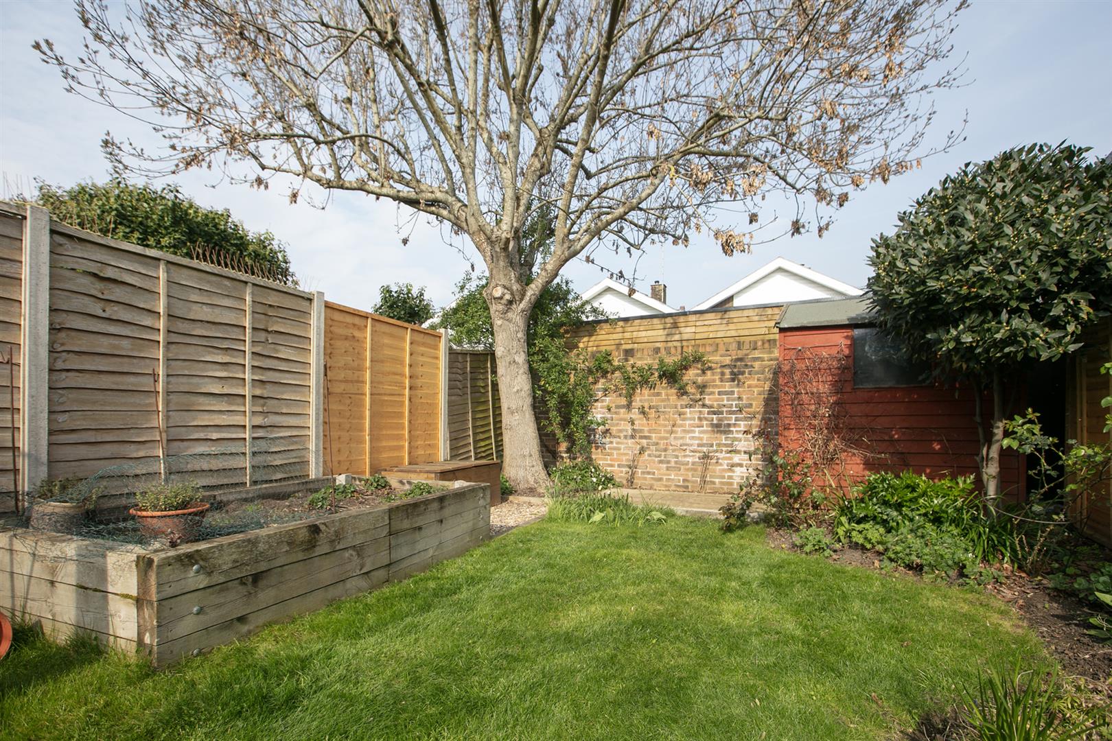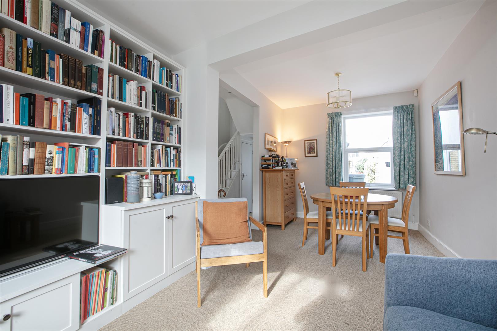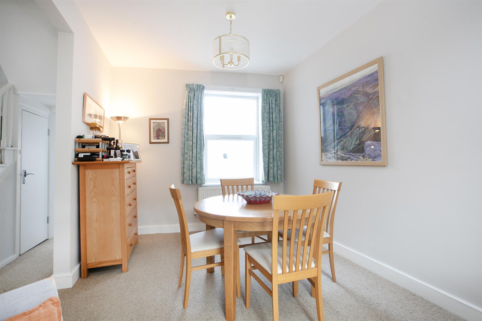 The handsome exterior enjoys the dappled shade of a mature tree and is crowned in the original motif 'Daniel's Cottages' from 1863. A carpeted hall leads to your semi-open plan living area which runs double length to afford comfortable lounging, dining and entertaining space. A leafy private front aspect and further rear-facing window ensures a light and airy vibe and there is plentiful bespoke cabinetry. A handy understairs storage point precedes your generous kitchen/diner which sits down a single step and offers a dual aspect. Generous cabinet and counter-space on either side stretches confidently and there's a a four ring gas hob, oven and space for all the white goods. A family dining area precedes French doors which open out to a York stone patio from whence you can enjoy your noticeably lush lawn. It's bordered with fragrant mature shrubs and posies and there's a greenhouse raised planters, shed and further neat rear patio. Upward bound you find the master bedroom fronting the street through two large casement windows. Bespoke blue wardrobes complement perfectly the lovely pale blue walls. A modern mostly tiled bathroom comes next with trough-style wash hand basin, tiled bath, modern loo and heated towel rail. Bedroom two faces rear and will comfortably house a double bed. The third and final bedroom, currently arranged as a wonderful study/music room, is bathed in light from two Velux and a further rear-facing window.