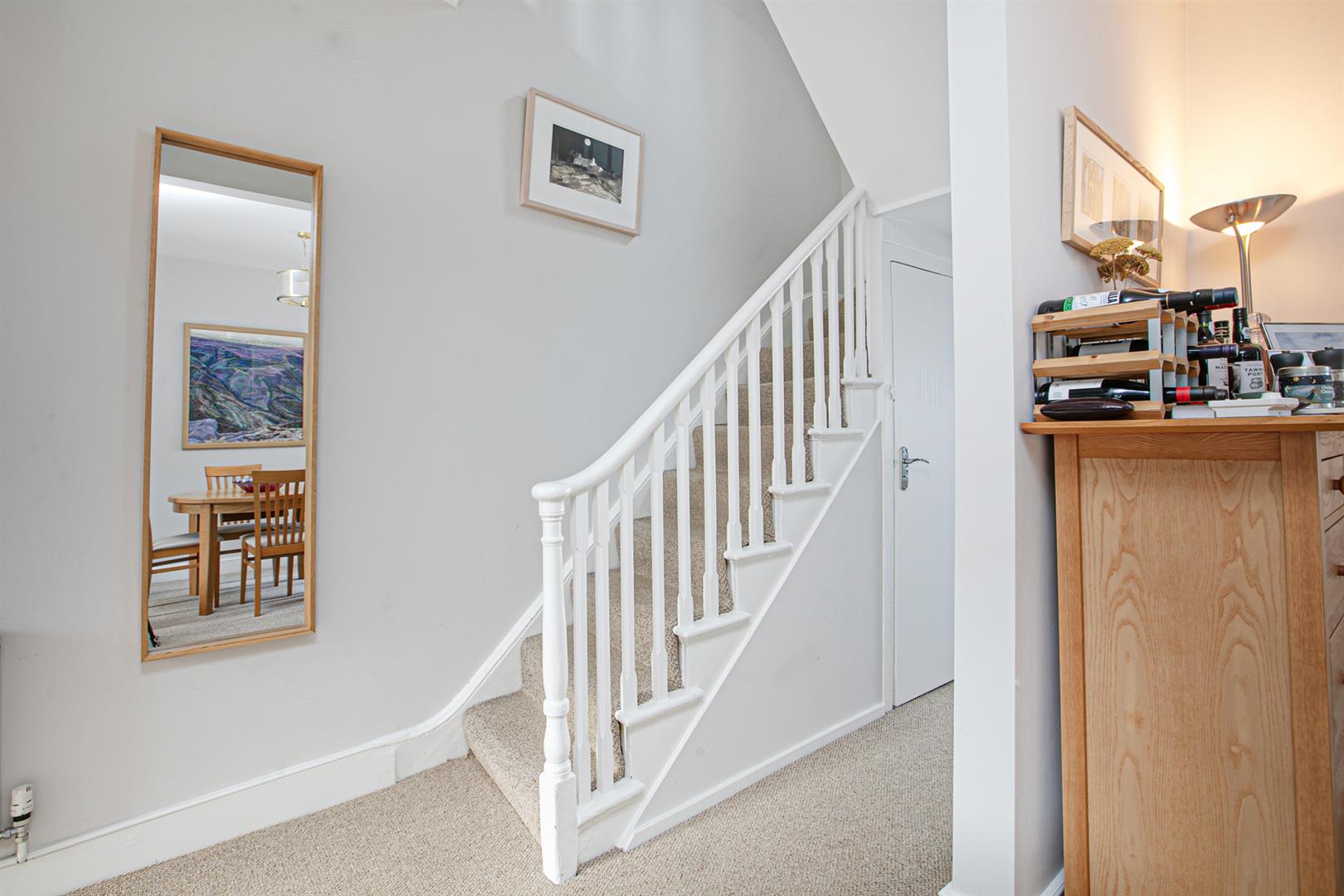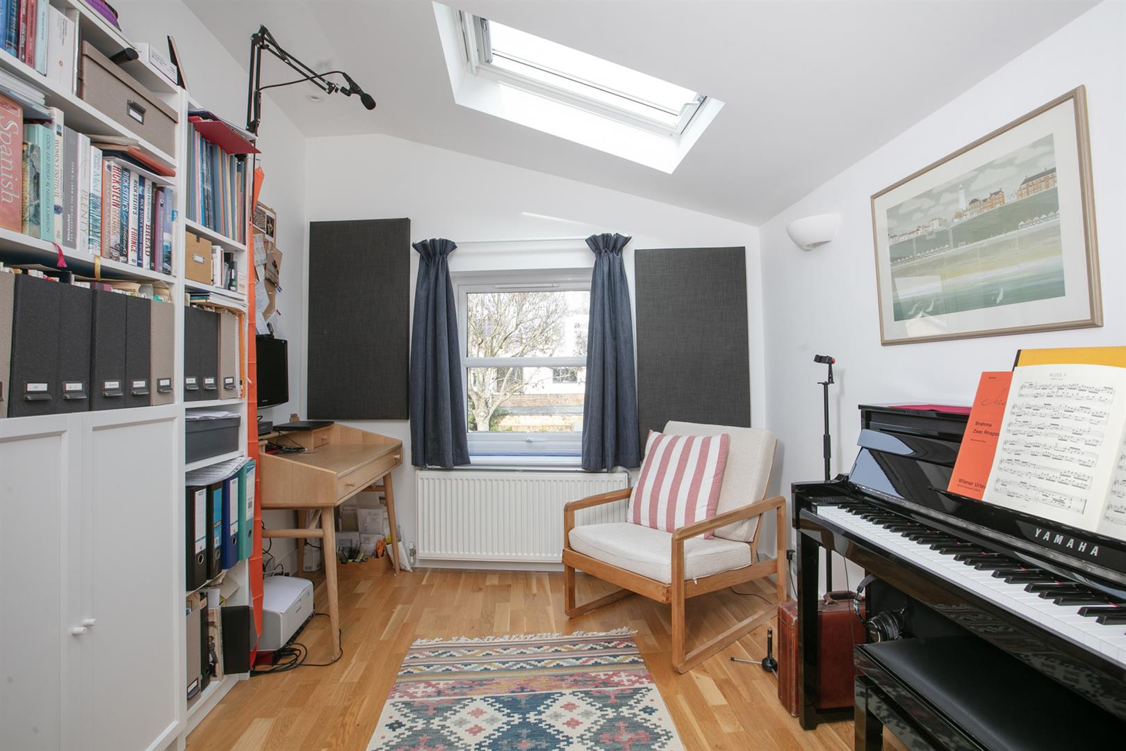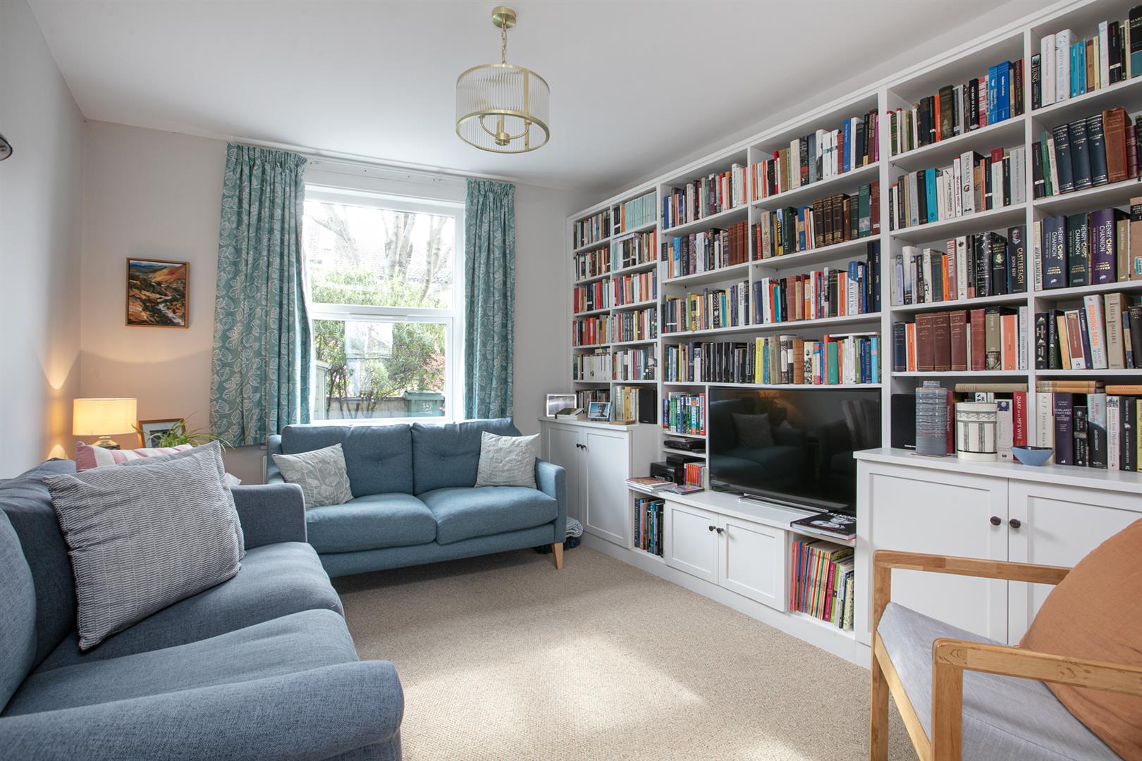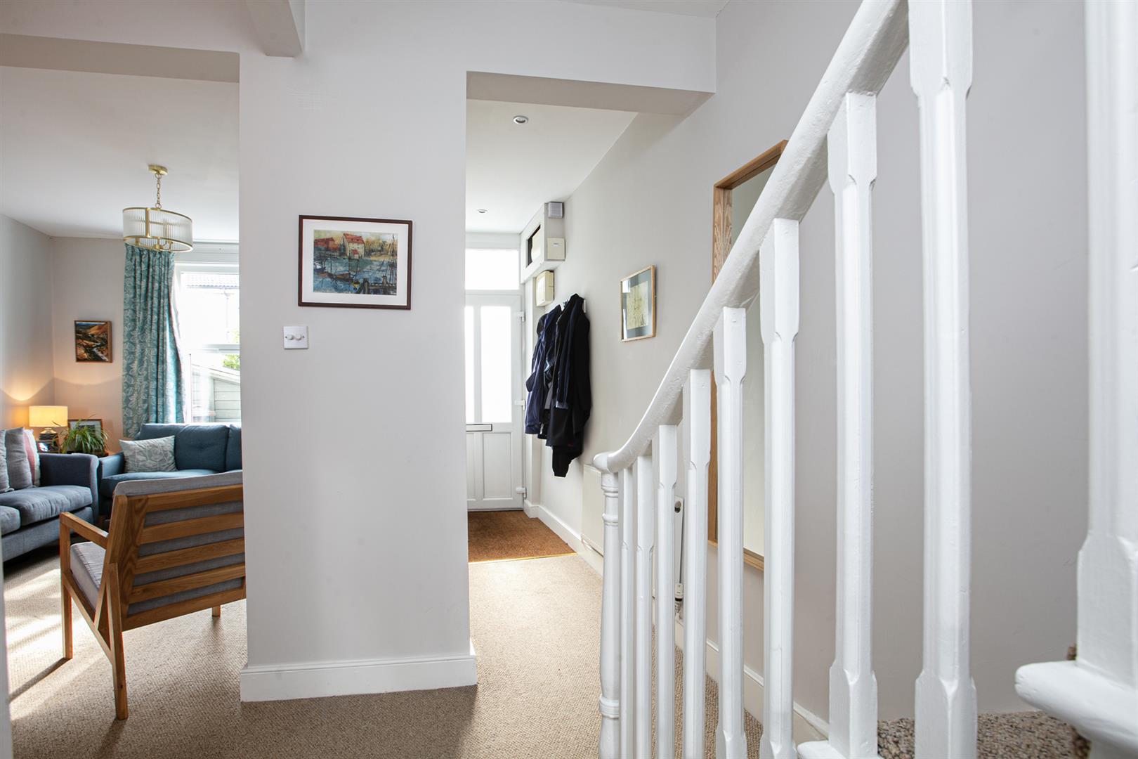 The handsome exterior enjoys the dappled shade of a mature tree and is crowned in the original motif 'Daniel's Cottages' from 1863. A carpeted hall leads to your semi-open plan living area which runs double length to afford comfortable lounging, dining and entertaining space. A leafy private front aspect and further rear-facing window ensures a light and airy vibe and there is plentiful bespoke cabinetry. A handy understairs storage point precedes your generous kitchen/diner which sits down a single step and offers a dual aspect. Generous cabinet and counter-space on either side stretches confidently and there's a a four ring gas hob, oven and space for all the white goods. A family dining area precedes French doors which open out to a York stone patio from whence you can enjoy your noticeably lush lawn. It's bordered with fragrant mature shrubs and posies and there's a greenhouse raised planters, shed and further neat rear patio. Upward bound you find the master bedroom fronting the street through two large casement windows. Bespoke blue wardrobes complement perfectly the lovely pale blue walls. A modern mostly tiled bathroom comes next with trough-style wash hand basin, tiled bath, modern loo and heated towel rail. Bedroom two faces rear and will comfortably house a double bed. The third and final bedroom, currently arranged as a wonderful study/music room, is bathed in light from two Velux and a further rear-facing window.