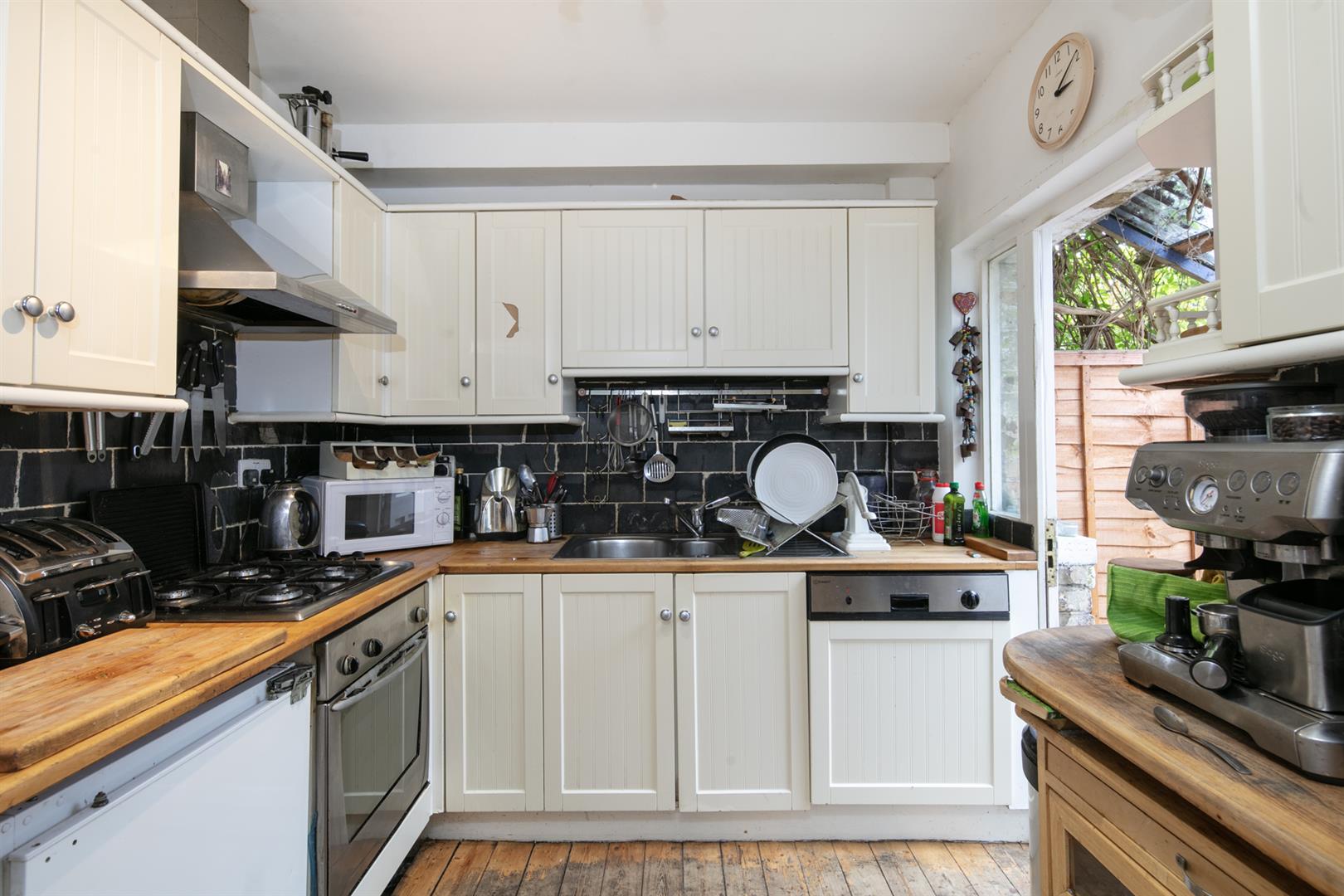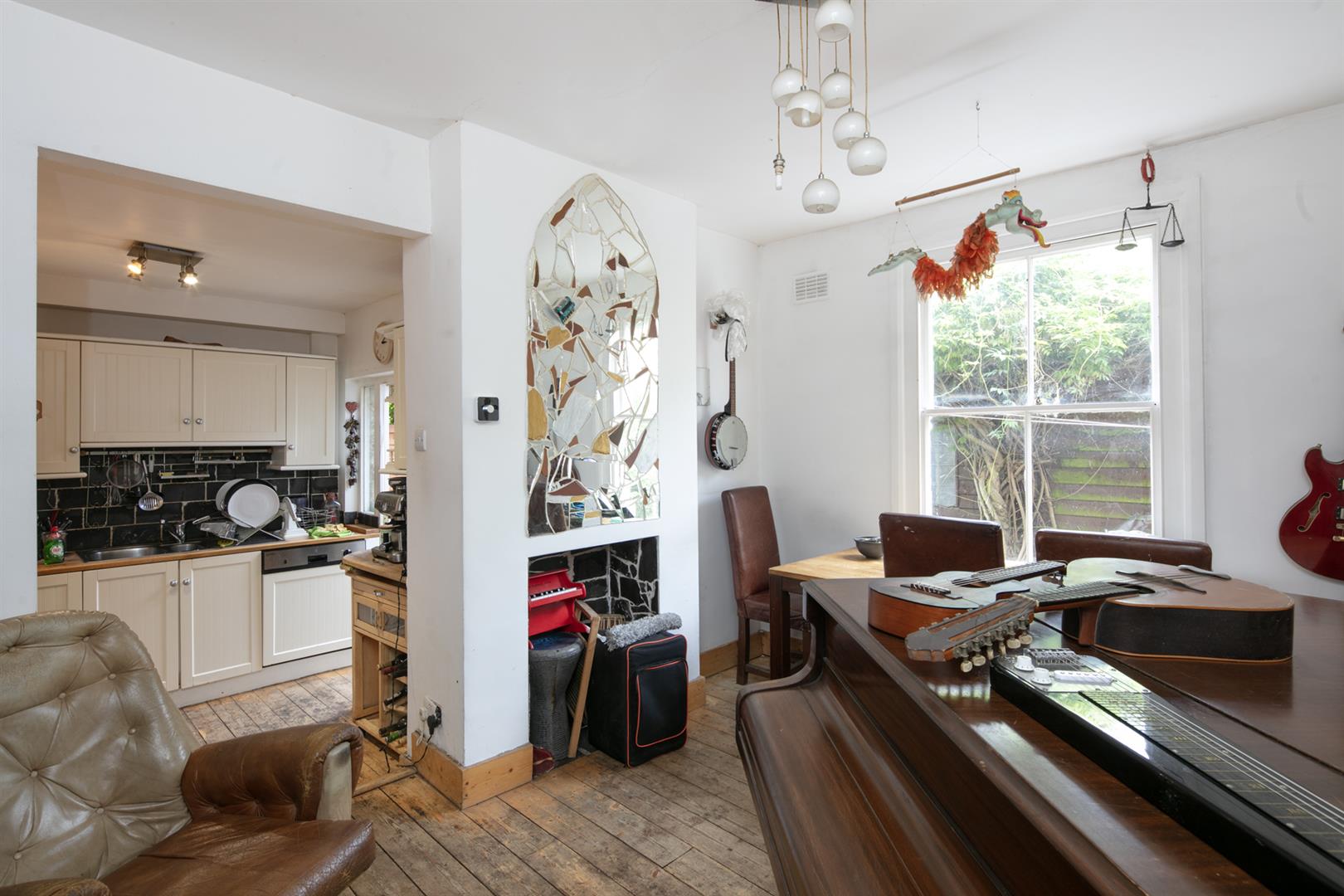 A long, leafy pedestrian avenue, lined with mature shrubs and flowers leads off Nunhead Grove. Enter to the end of the terrace through a recessed portico shared with next door. The reception greets you with lovely aged original boards a peaceful private aspect and plenty of space for lounging. The kitchen/diner sits to the rear and will house further merriment. A nicely arranged kitchen adjoins to the rear with wooden cabinets and counters as well as garden access. Outside you find a generous garden with plenty of scope for sun-baking, veg-growing and posies. A large separate garden room, currently used as a studio, will host any number of endeavours.