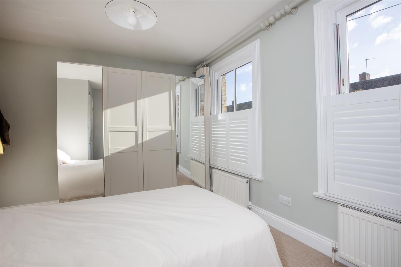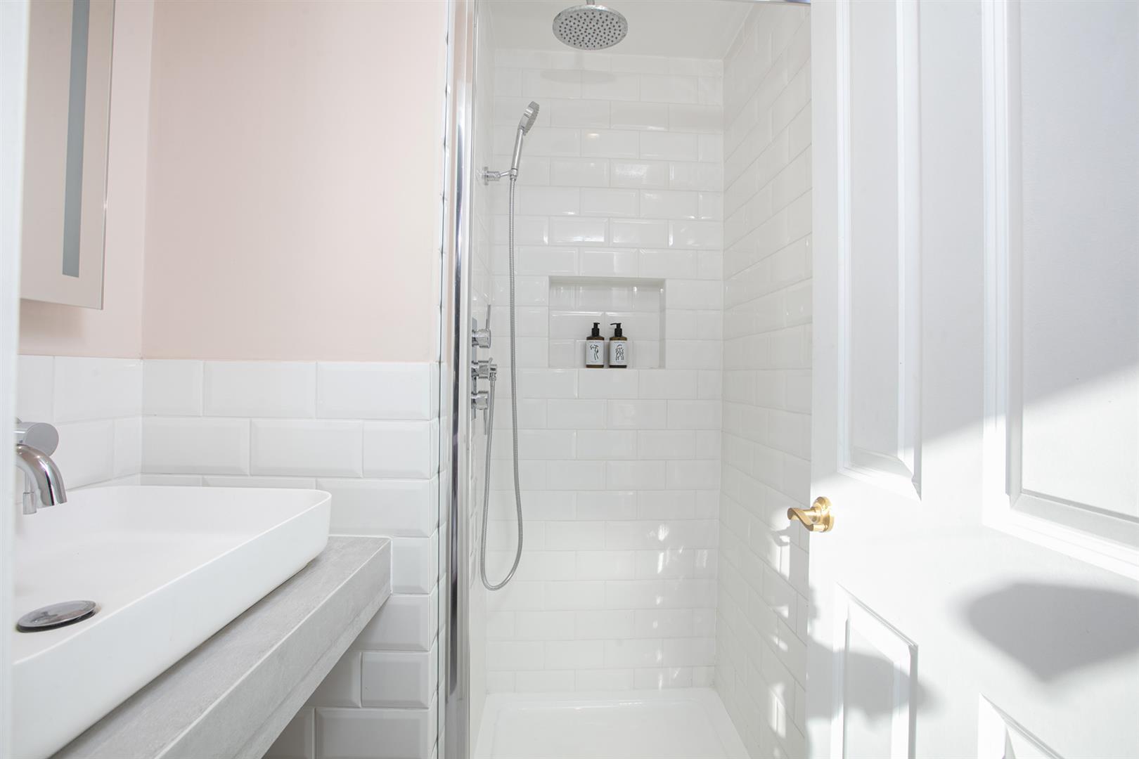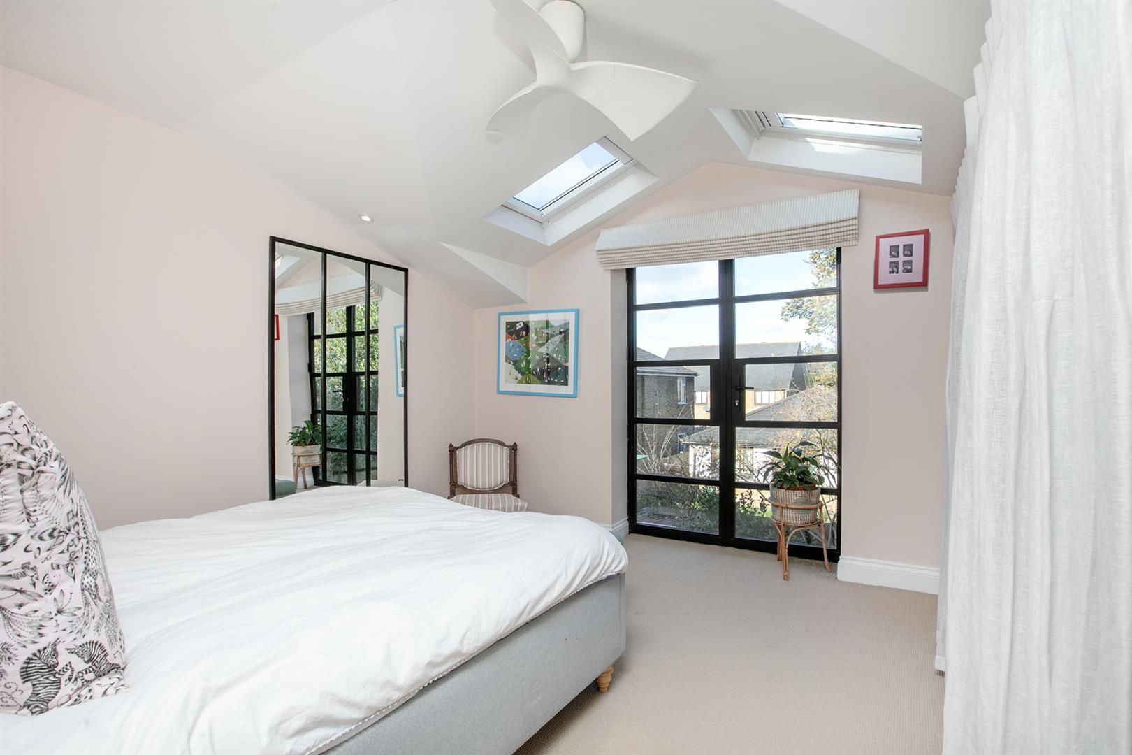 Heading upward you find your front aspect double bedroom soaks in tonnes of light. It's carpeted and has fitted storage and an adjoining shower room. Last but not least comes a lavish master bedroom which stretches to full width and enjoys a uniquely tasteful vaulted ceiling with twin electric Velux. A double Crittal Juliette balcony acts as a yummy focal point. The handsome ensuite adjoins with bath, wet room, contemporary wash hand basin and period style loo.
