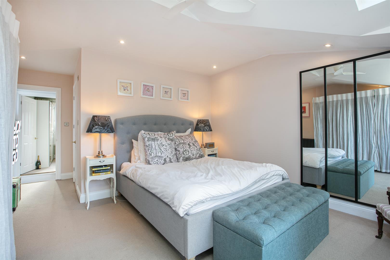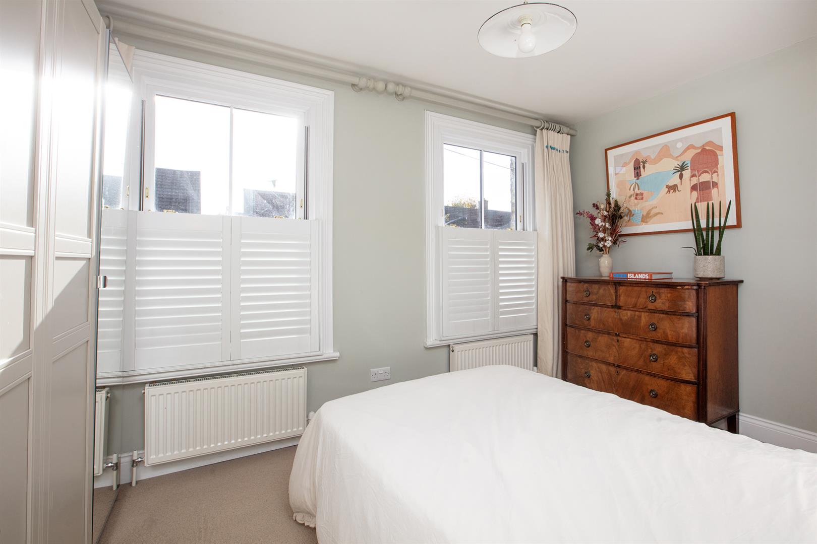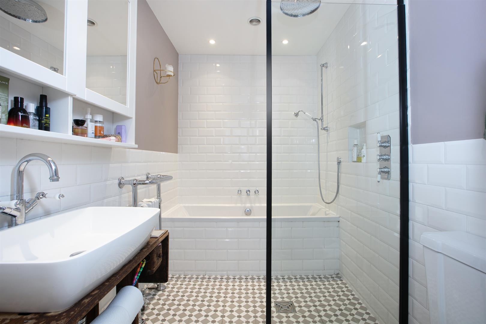 Heading upward you find your front aspect double bedroom soaks in tonnes of light. It's carpeted and has fitted storage and an adjoining shower room. Last but not least comes a lavish master bedroom which stretches to full width and enjoys a uniquely tasteful vaulted ceiling with twin electric Velux. A double Crittal Juliette balcony acts as a yummy focal point. The handsome ensuite adjoins with bath, wet room, contemporary wash hand basin and period style loo.