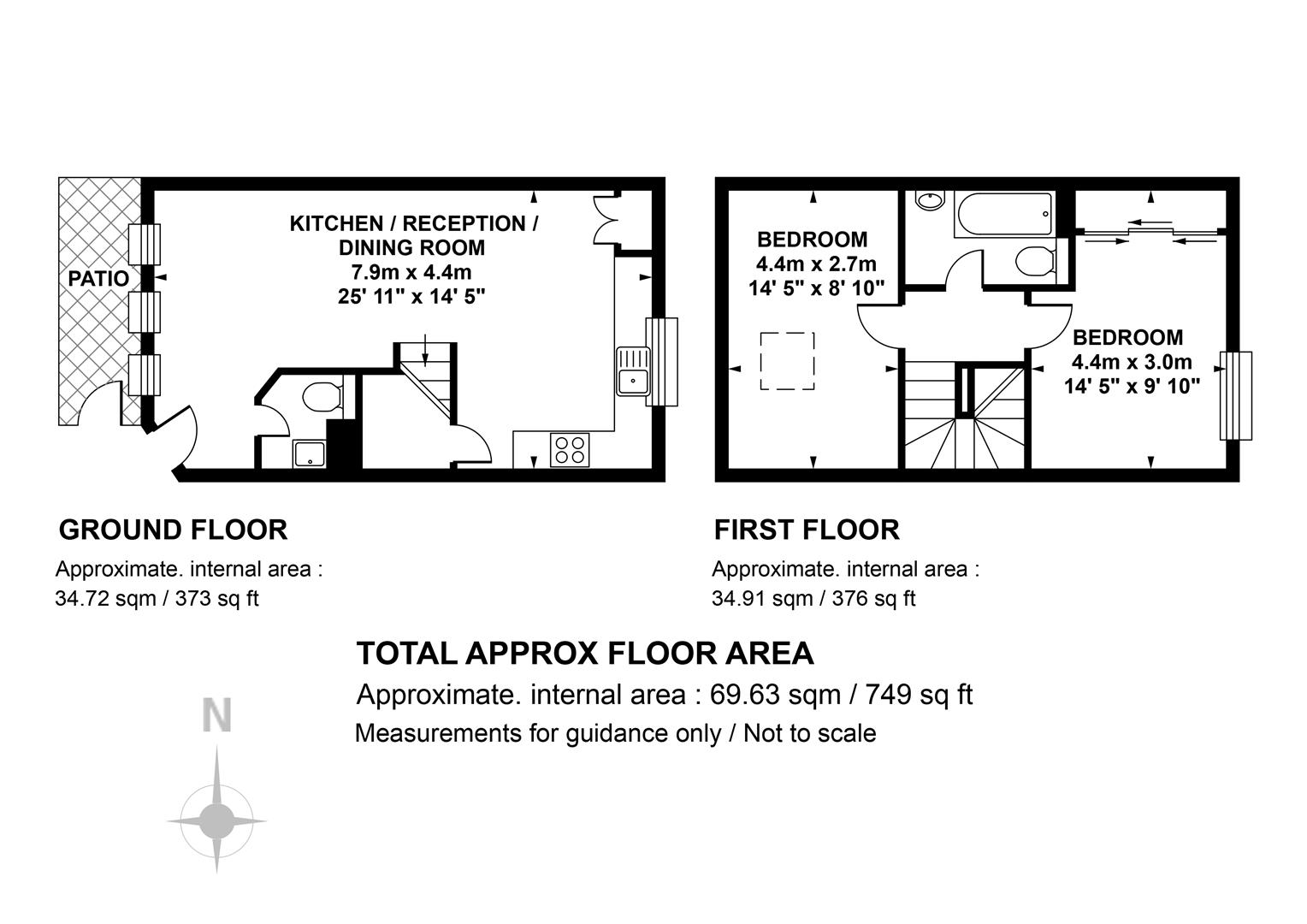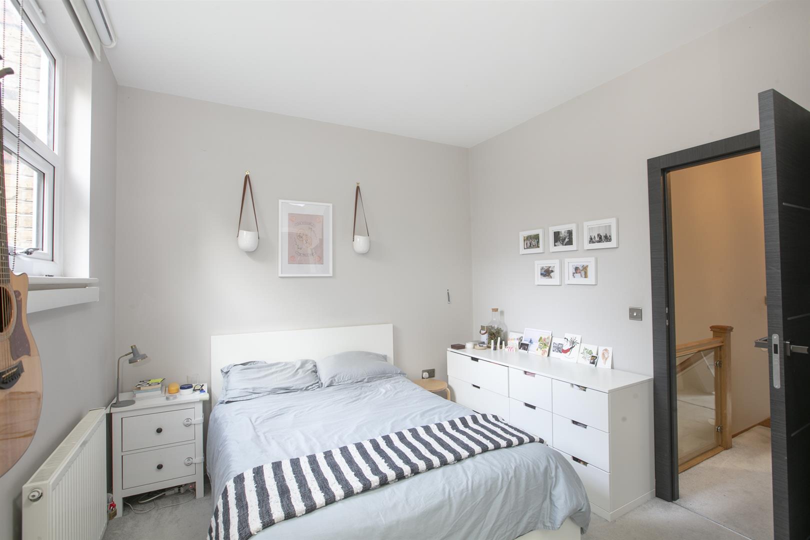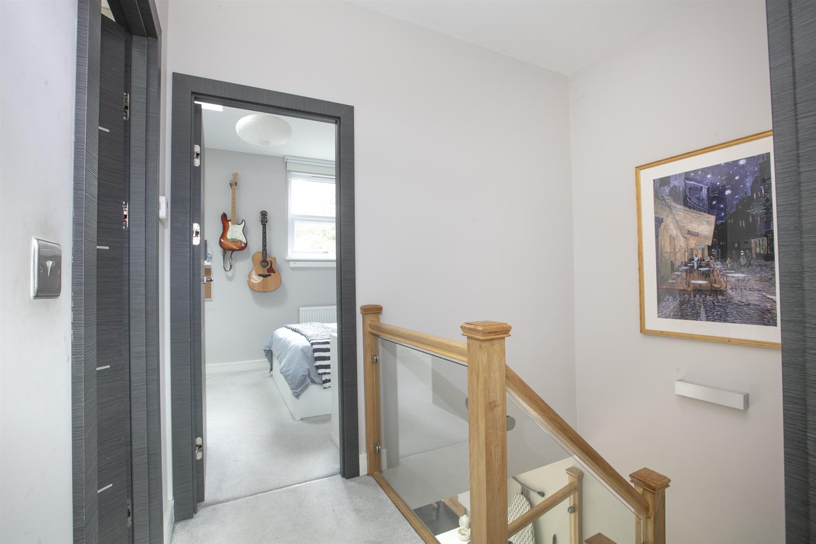 Heading upward via wide carpeted stairs with glass screens you meet the upper landing. A nicely sized master bedroom sits to the rear with a peaceful aspect surrounding neighbouring gardens. A wall of recessed mirrored wardrobes supplies ample storage. The second double bedroom sits the far side of the landing with a large Velux window. A modern bathroom completes the tour.